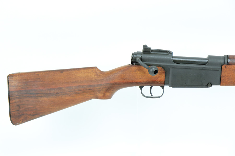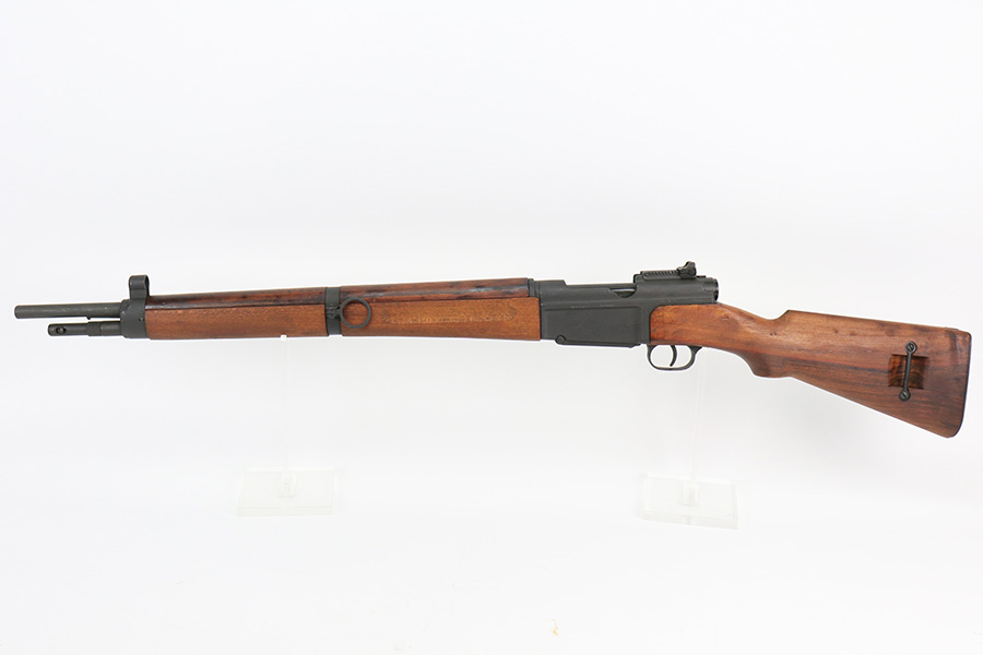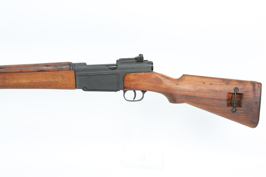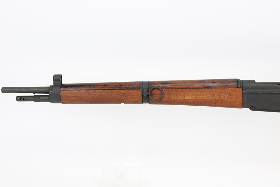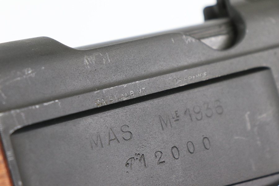 5/11/22 – This is a minty example of a MAS Model 1936 rifle. First adopted in 1936 by France and intended to replace the Berthier and Lebel series of service rifles, it saw service long past the World War II period. It was manufactured from late 1937 onward by Manufacture d’Armes de Saint-Étienne (MAS), one of several government-owned arms factories in France. Only 250,000 MAS-36 rifles were available to equip the French infantry during the Battle of France in 1940. Mass production finally caught up after World War II and MAS-36 rifles became widely used in service during the First Indochina War, the Algerian War and the Suez Crisis. The parkerized finish is excellent throughout on this rifle (just some very light surface scuffs here and there), and it has a mint bore. Terrific stock with no chips or cracks. Matching receiver and bolt. Period sling. Import mark on left side of receiver.