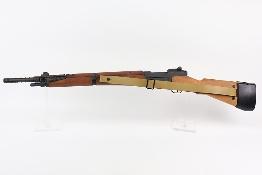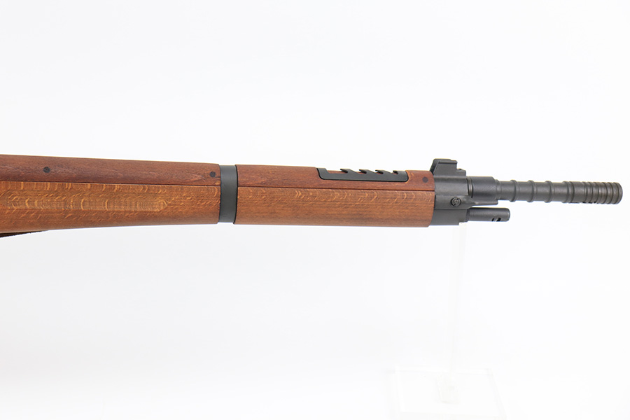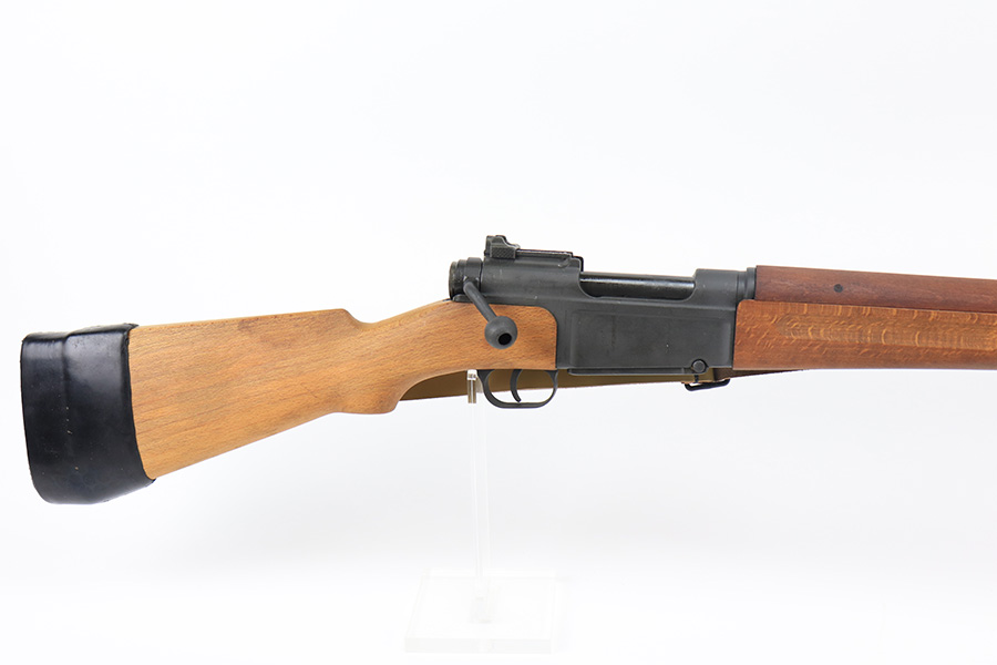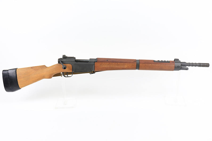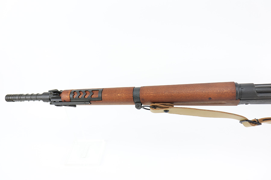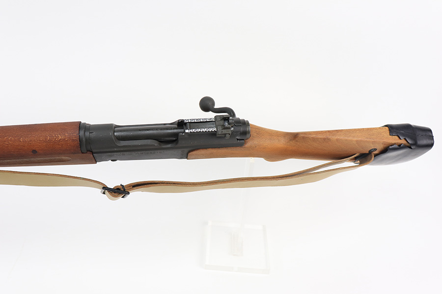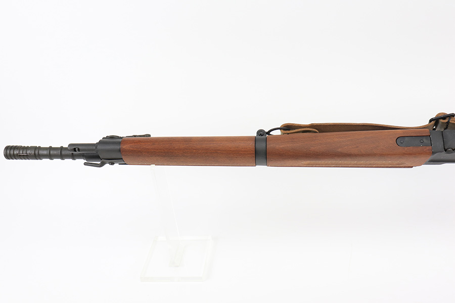 4/29/22 – This is a minty example of a French MAS Model 1936-51 Rifle. The M36-51, successor of the M36, saw service in the First Indochina War, Algerian War and extended into part of the Cold War. Perhaps its most unique feature is its adjustable grenade launcher front sight and assembly around the muzzle. The gun is matching except for the floor plate, and there is a small import mark on the left side of the receiver. The gun comes with a tan leather sling and an original rubber butt pad (tear on the top edge). The gun has retained virtually all of its parkerized finish with some very light surface scuffs on the receiver. The stock is in mint condition. The bore is factory-new.