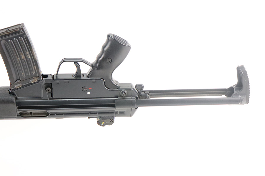 7/14/21 – This is a minty Heckler & Koch Hk 93 that was made in 1981. Only a minor hint of wear on the receiver but looks nearly new otherwise. Collapsible stock with checkered buttplate. Strong, shiny bore with very minor signs of use. Original steel magazine which has the same date code as the gun ‘IB’. FFL required.