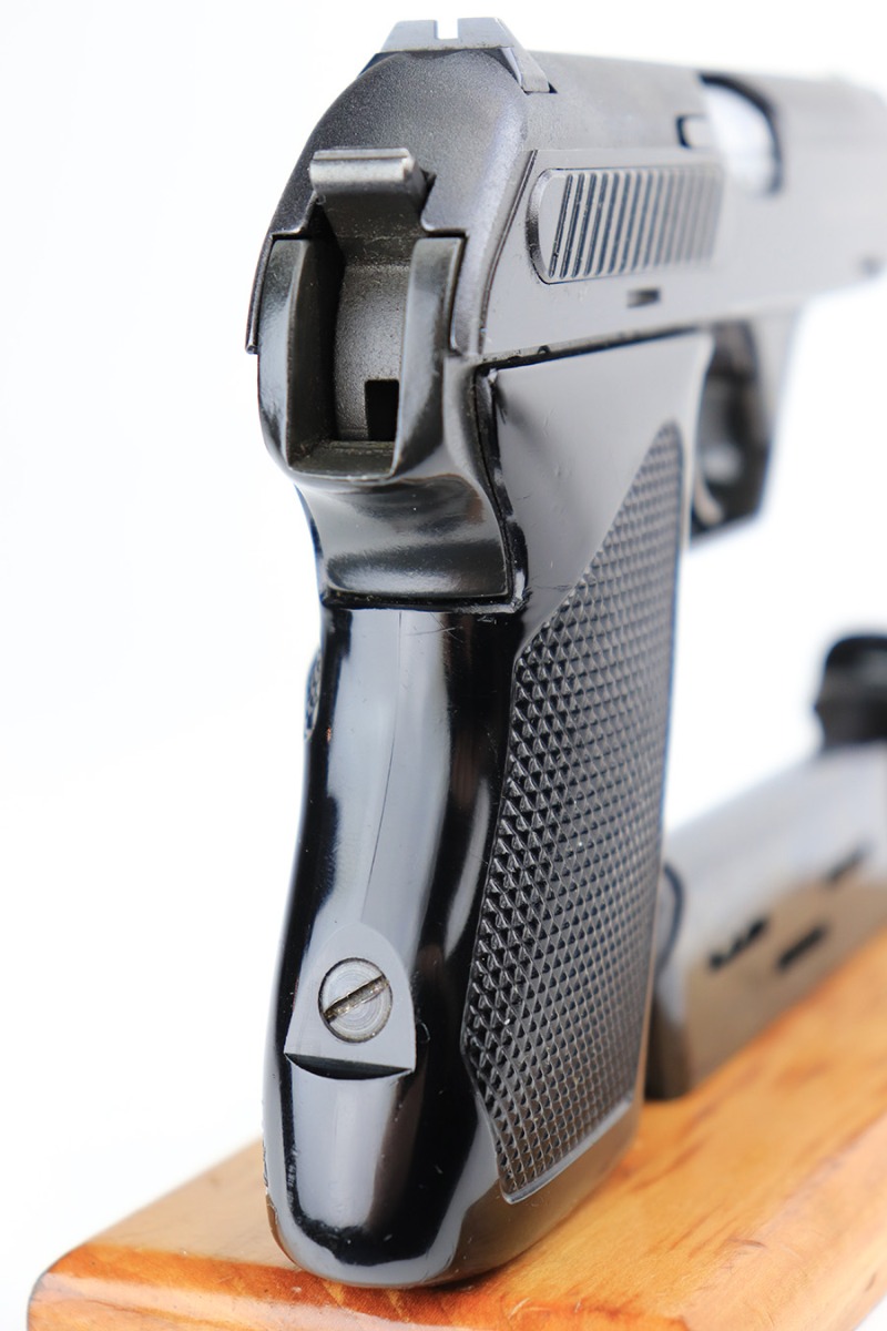 3/24/22 – This is a minty example of a Heckler & Koch Model HK4 manufactured in November of 1974 and chambered in 7.65mm. The gun is all matching and has the proper West German proofs. Import mark on the right side of the slide. It has retained about 99% of its original finish. There is just some extremely light scuffing on the right side of the slide and a few tiny handling marks on the front strap. Comes with a set of very nice black plastic grips (a few small handling marks on the left side) and one proper finger extension magazine. Mint bore.