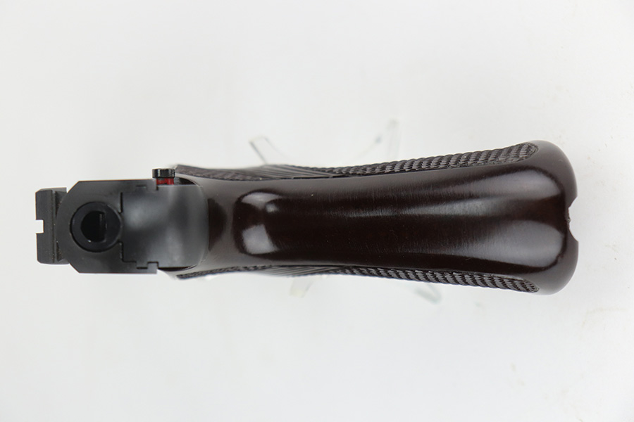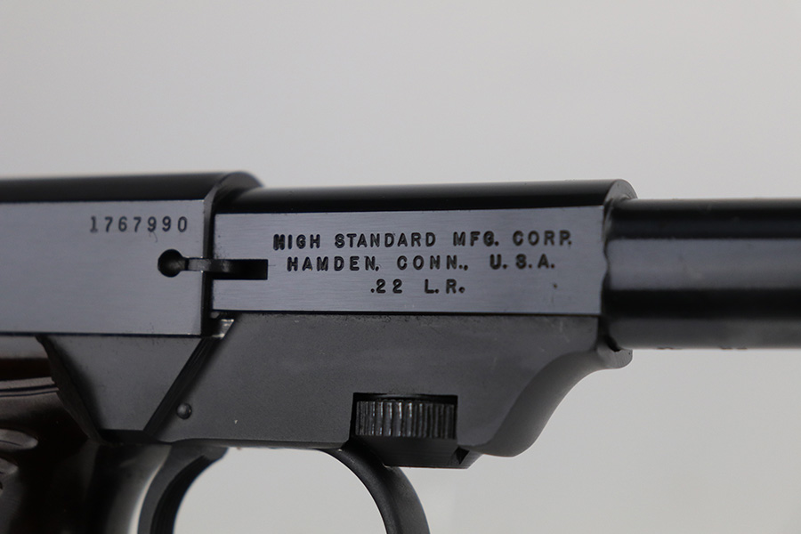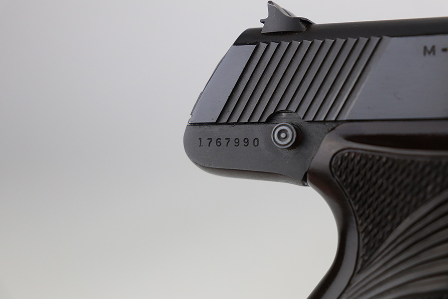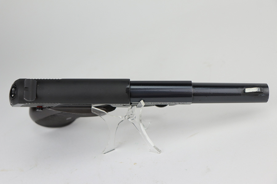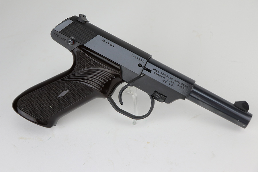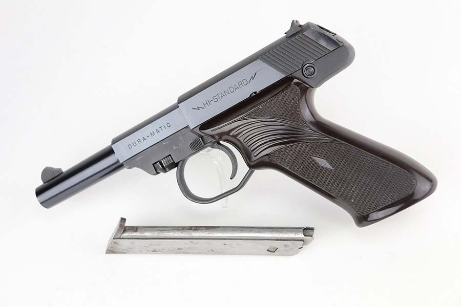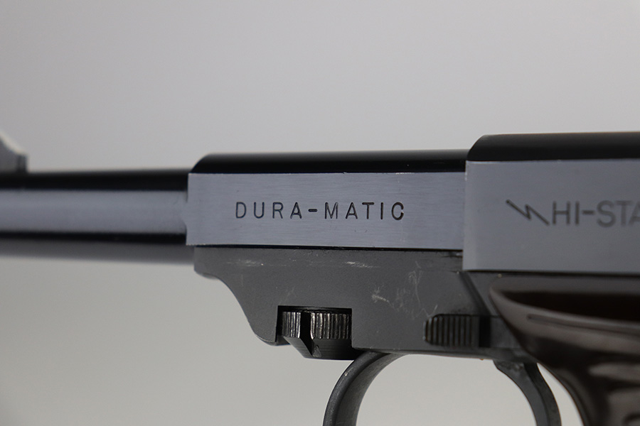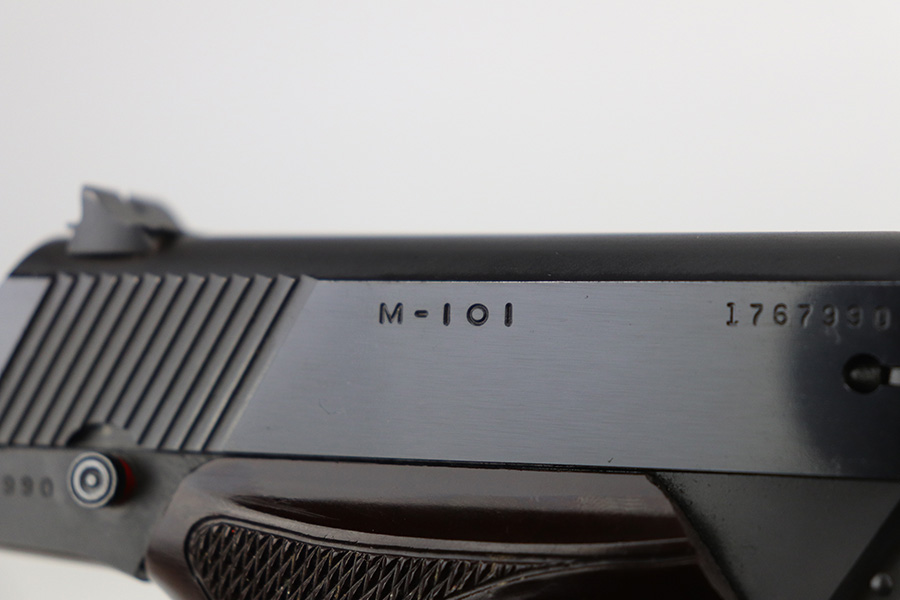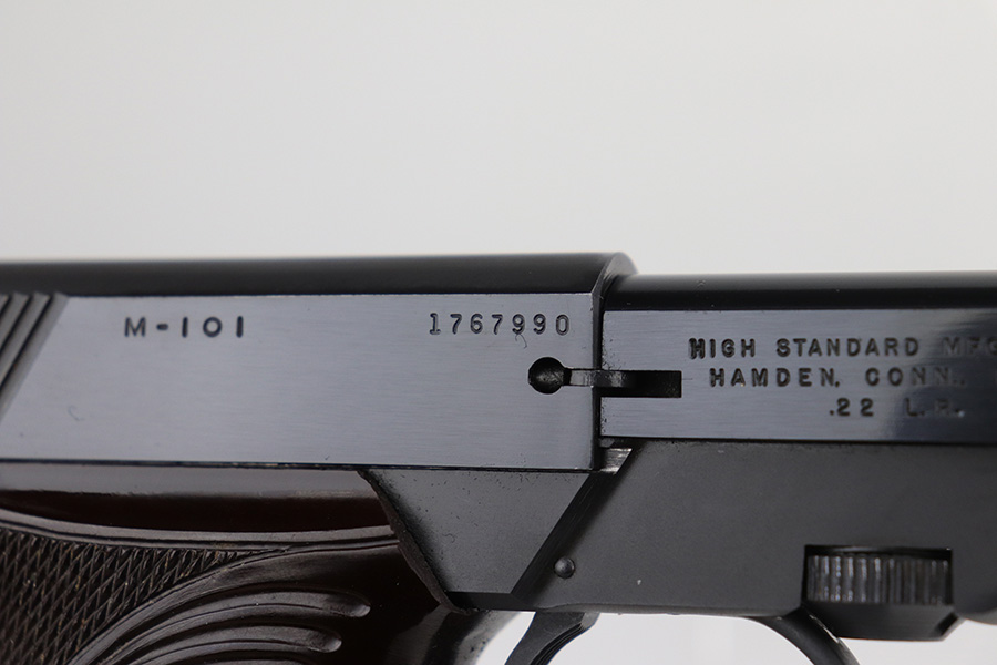 8/26/21 – This is a minty Hi-Standard Model 101 Dura-Matic pistol from June of 1967. It has 98+% of the original blue remaining, with just a few surface scuffs here or there. Mint bore. Original magazine. Excellent brown plastic grip with no chips or cracks. C&R eligible.
