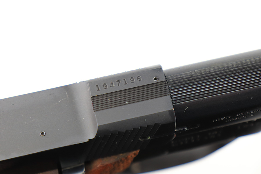 3/31/22 – This is a minty High Standard Model 107 Military Supermatic Citation. Just a hint of muzzle wear, but otherwise appears nearly unused. Mint bore and grips. Serial dates this one to July of 1968, so C&R eligible. 5.5in barrel.