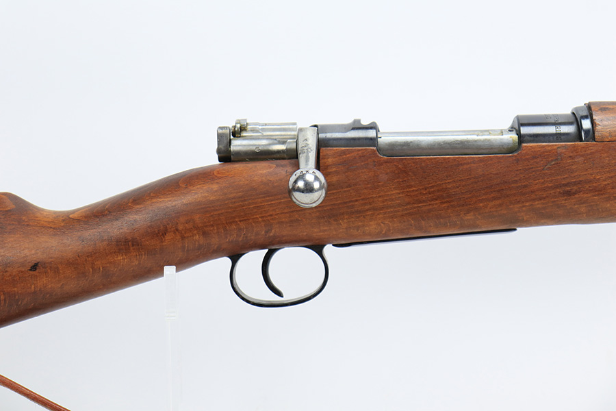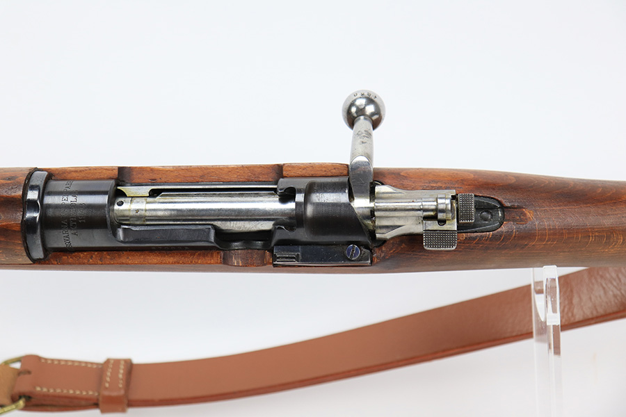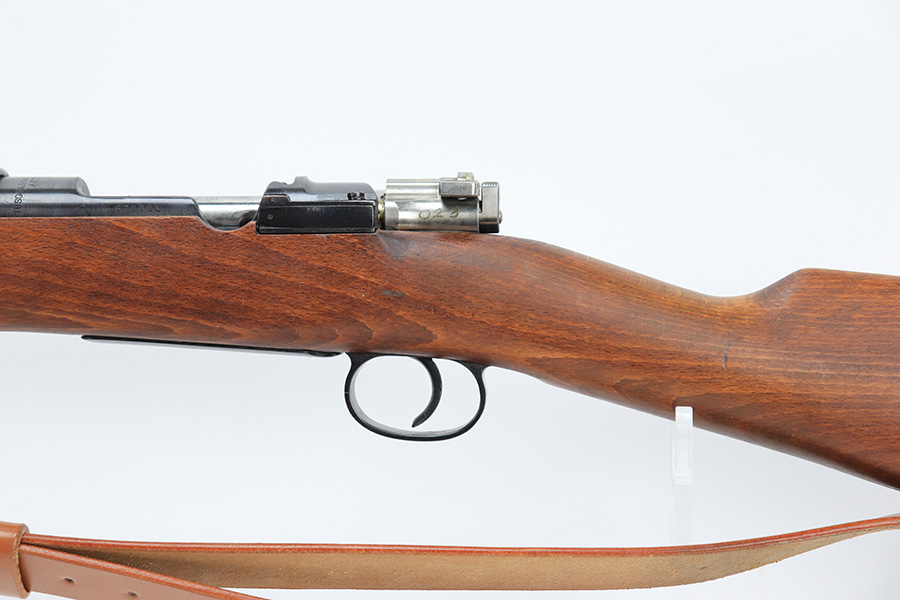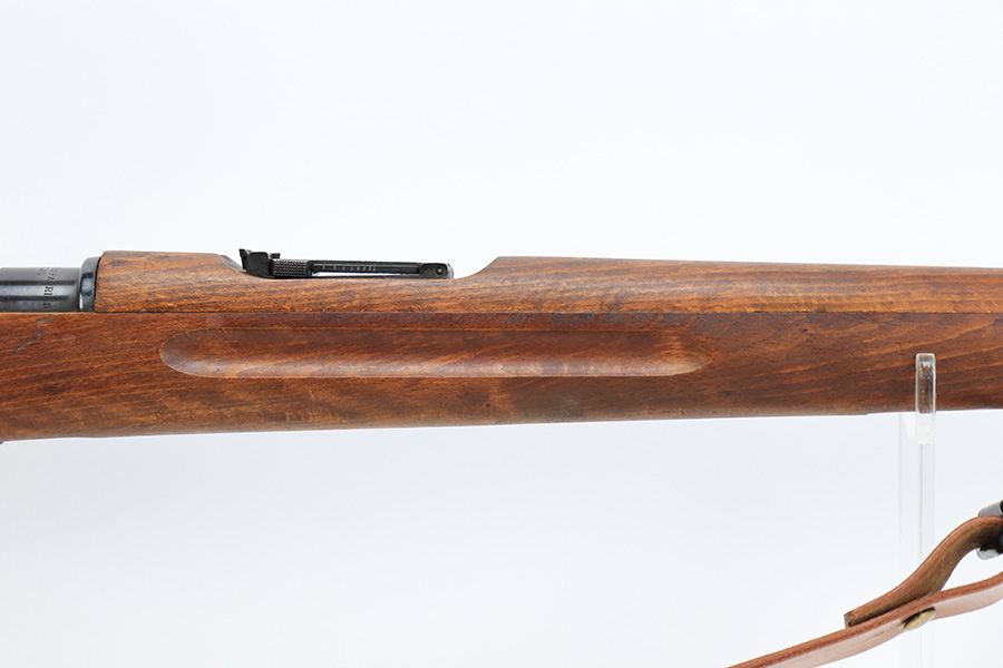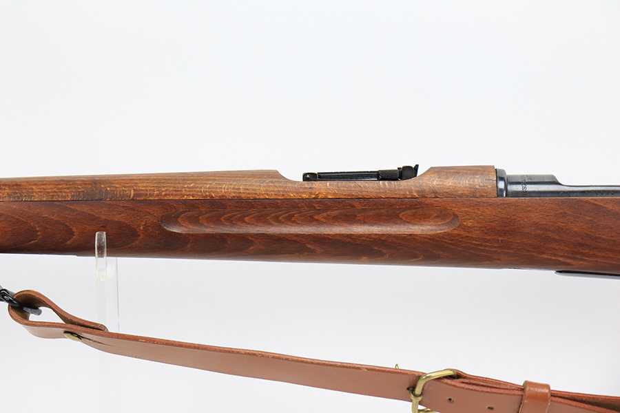 5/10/23 – This is an excellent Swedish Mauser Husqvarna M38 rifle in 6.5x55mm. The rifle is in excellent condition and very clean overall. We rate around 96-98% as there is some mild edge wear / finish loss on the metal parts. The stock has the Swedish crown stamps and the disc is intact. No notable cracks or chips in the wood. Minty bore. The underside of the barrel bears an import stamp. Mechanically sound. Comes with leather sling.