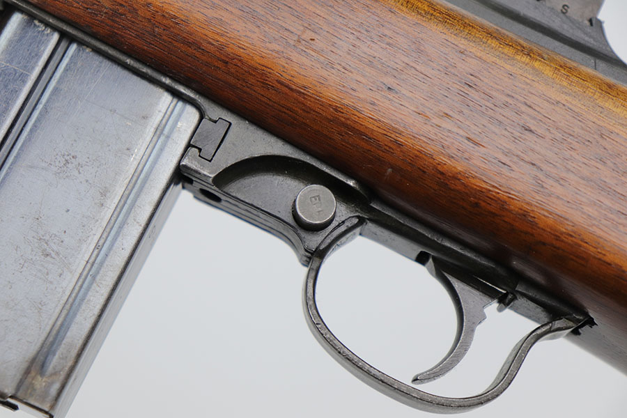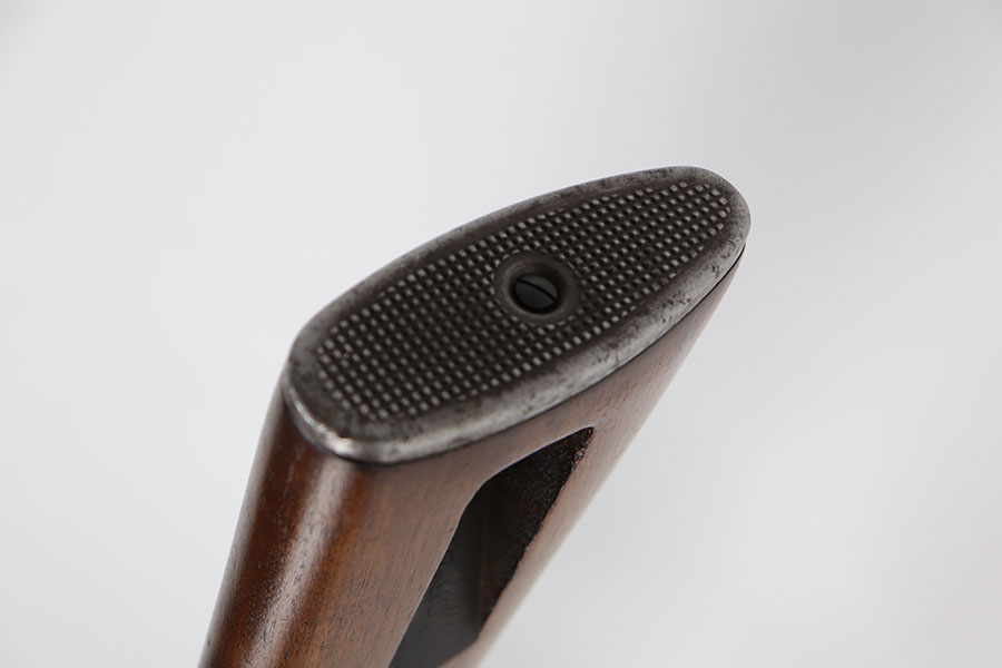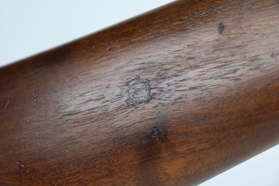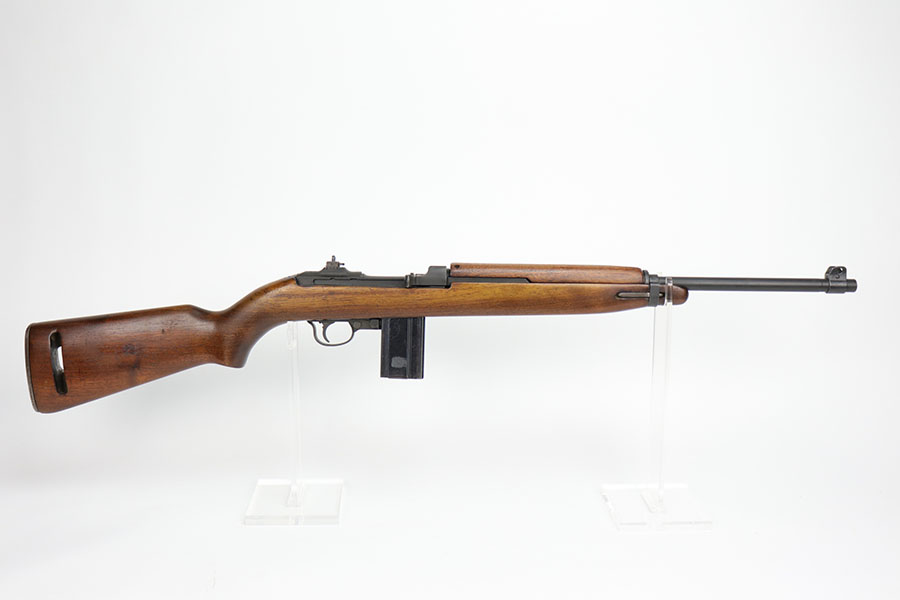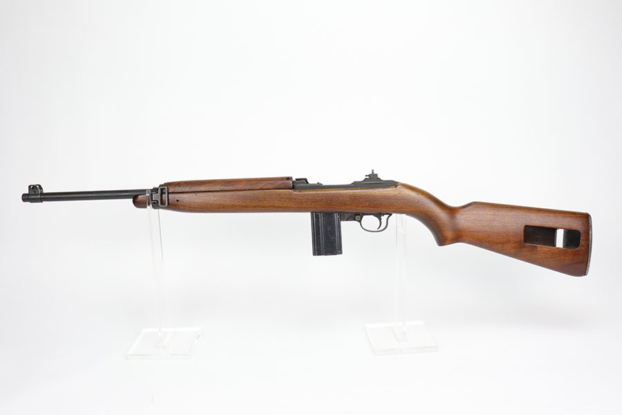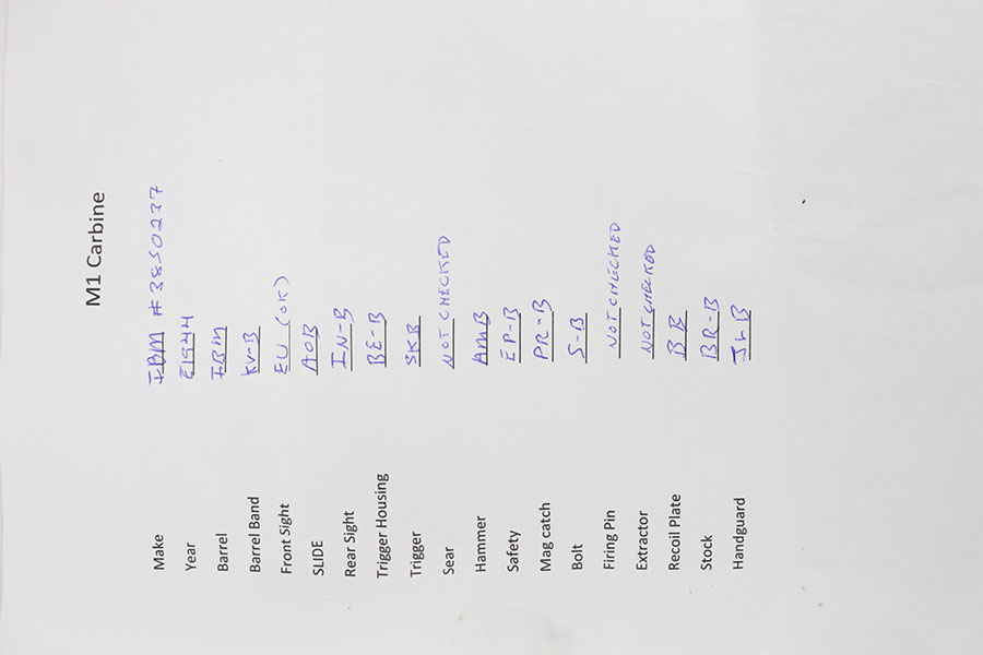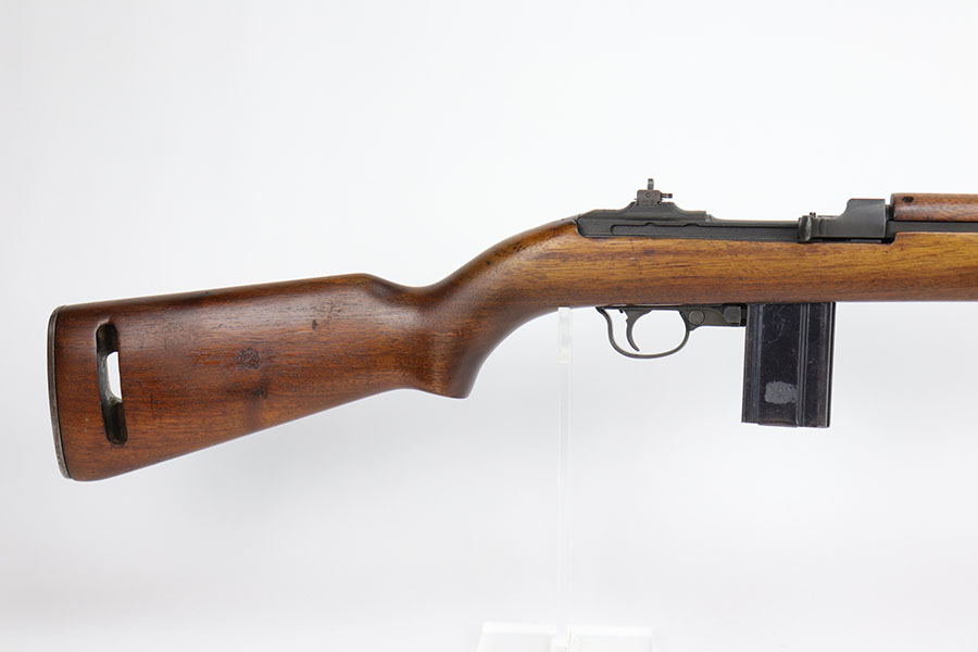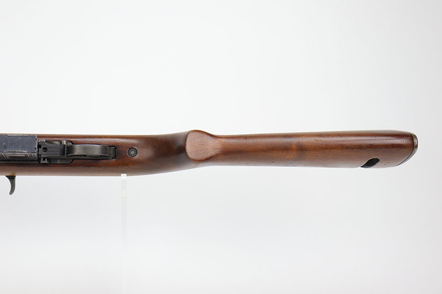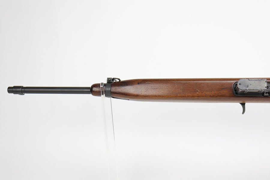 10/14/20 – This is a near-mint and hard to find IBM M1 Carbine from either late 1943 or early 1944. Less than 6% of total M1 Carbine production was done by IBM. A full parts guide is included with the photos for this listing, but correct and IBM parts throughout. IBM barrel and receiver with BR-B marked stock that has crossed cannon cartouche on the right side. Bore is shiny with strong rifling but there is a ring of pitting at one point, though the barrel is not bulged. Stock condition is excellent and without defect.