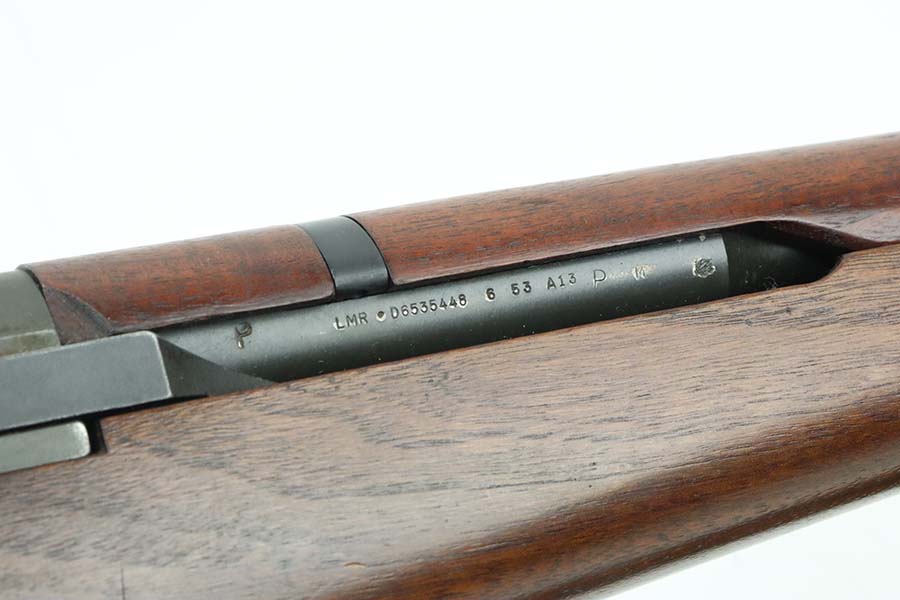 4/8/24 – This is a near-mint example of an International Harvester M1 Garand. The serial number on the receiver dates to 1953, LMR-marked barrel dated 1953. There is a small military cross-canon proof on the barrel. No markings on the stock. The metal parts have retained virtually all of their finish. Excellent wood stock with only minor scratches and handling marks. Muzzle reading: 1. Throat reading: 1.
