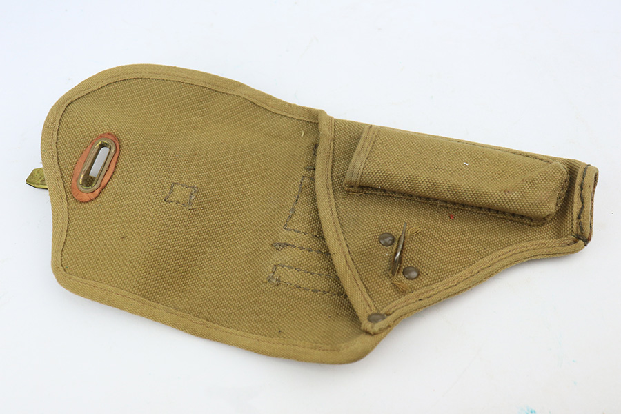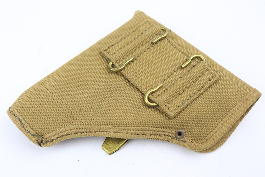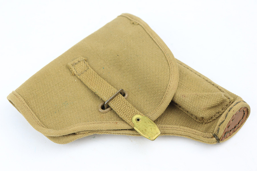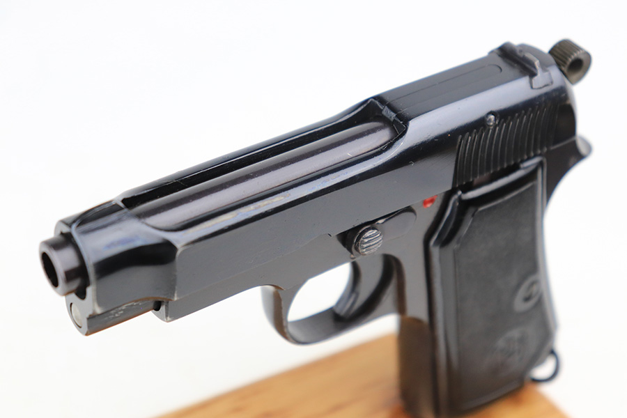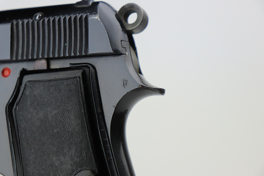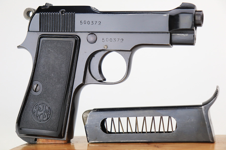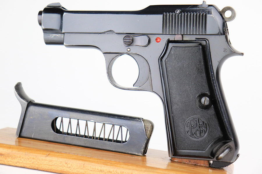 5/8/23 – This is a near-mint example of an Italian Beretta Model 1935 manufactured in 1943. The gun is all matching and has a “GF” Italian proof mark on the left side of the tang. The gun comes as a rig with a mint post-war canvas holster, post-war lanyard, and two proper magazines. The gun has retained nearly all of its original high polish finish with very minor muzzle wear and a light streak of wear on the right side of the slide. A few tiny scratches on the front strap. Comes with excellent period-correct black bakelite grips. Mint bore.