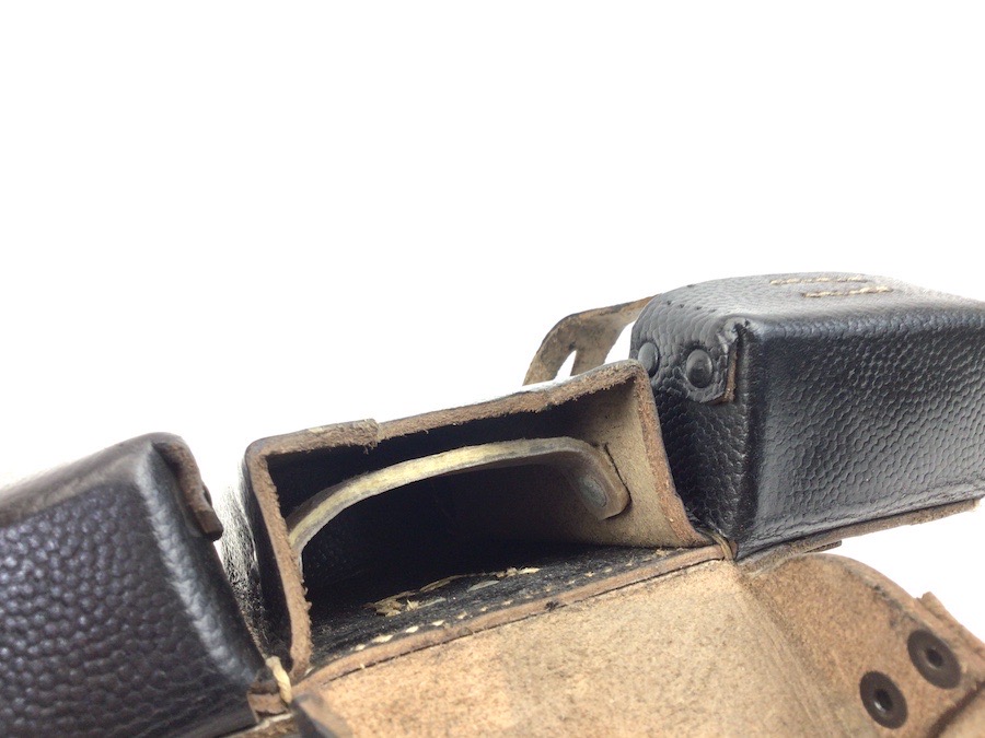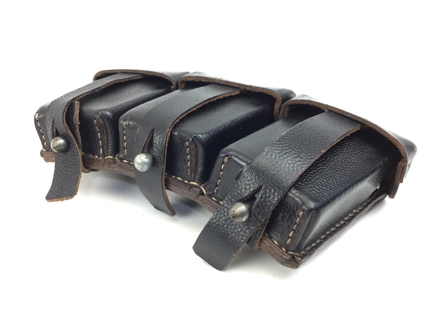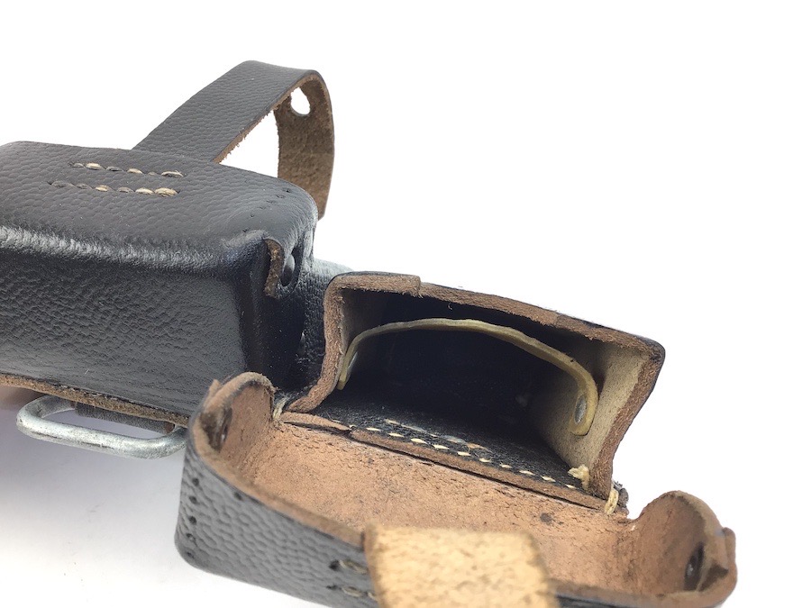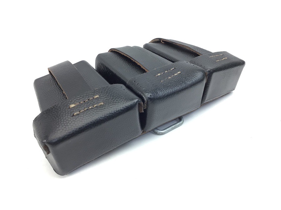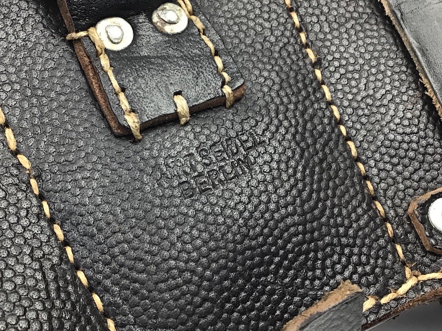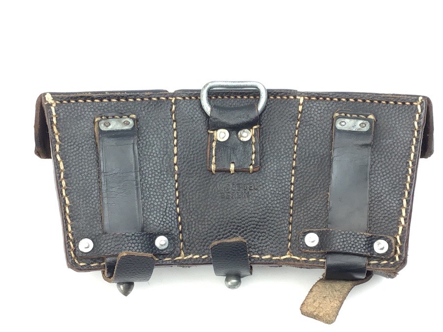 3/28/23 – Original and excellent condition, ammunition pouch for the Mauser K98 8mm rifle. Maker stamped on the back, “Kurt Seidel”. There are no other marks. Very sturdy leather with a clean interior and fully intact stitching. The interior is clean and the dividers are securely in place.