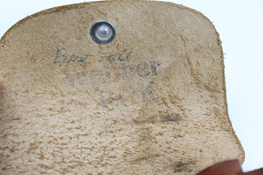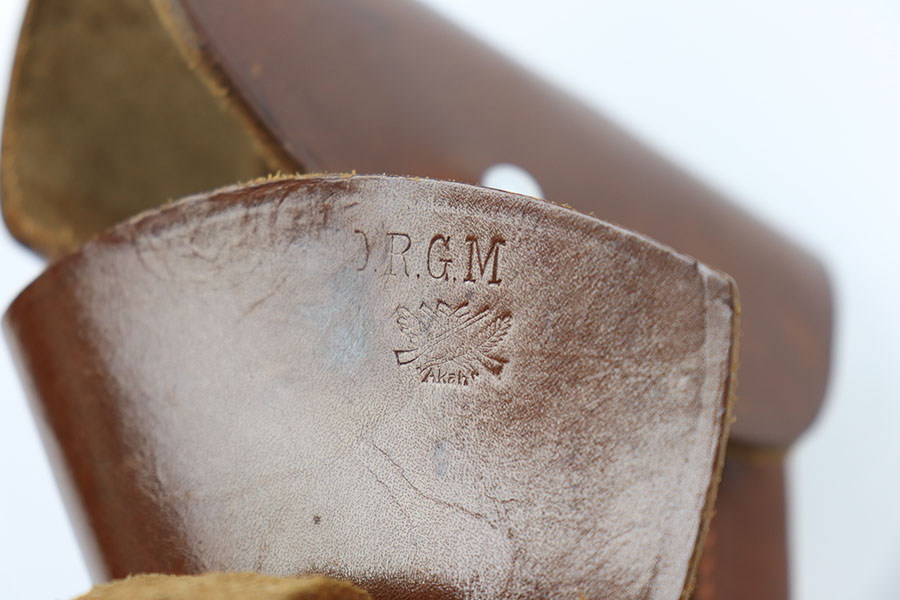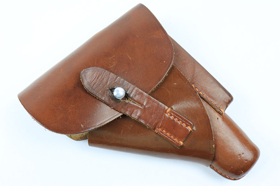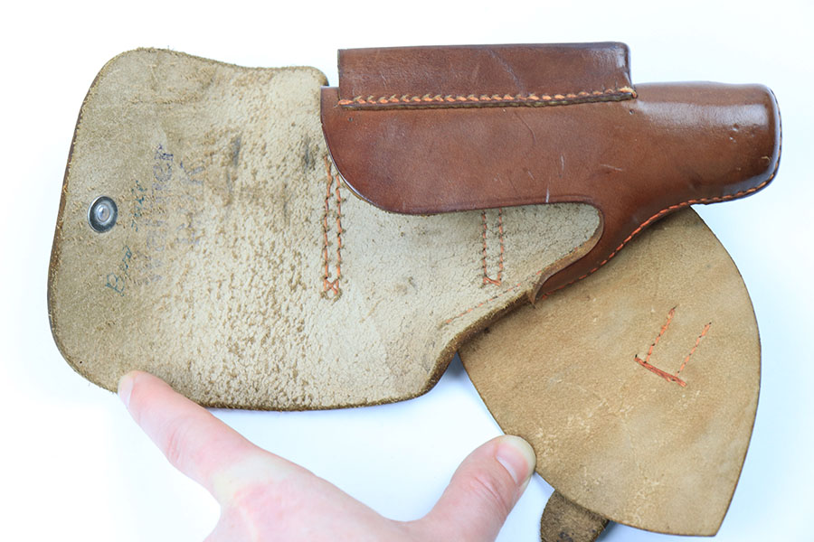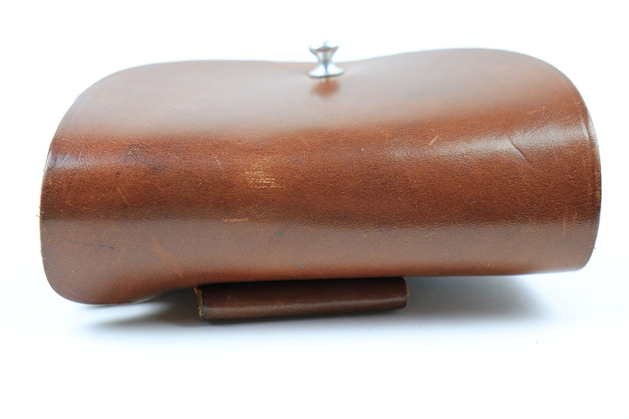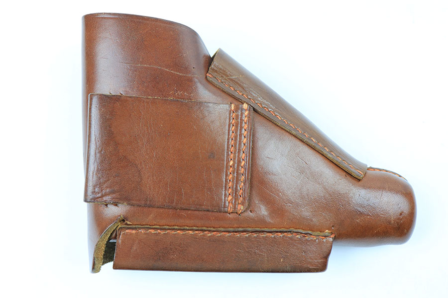 4/29/21 – This is a minty example of a leading edge style PPK holster. These holsters are highly desirable and have becoming increasingly difficult to find. The light brown leather is clean and still has a faint interior Walther PPK ink stamp. AKAH proof stamped under the closure strap. Stitching is excellent and intact without issue. A beautiful, clean, collectible holster.