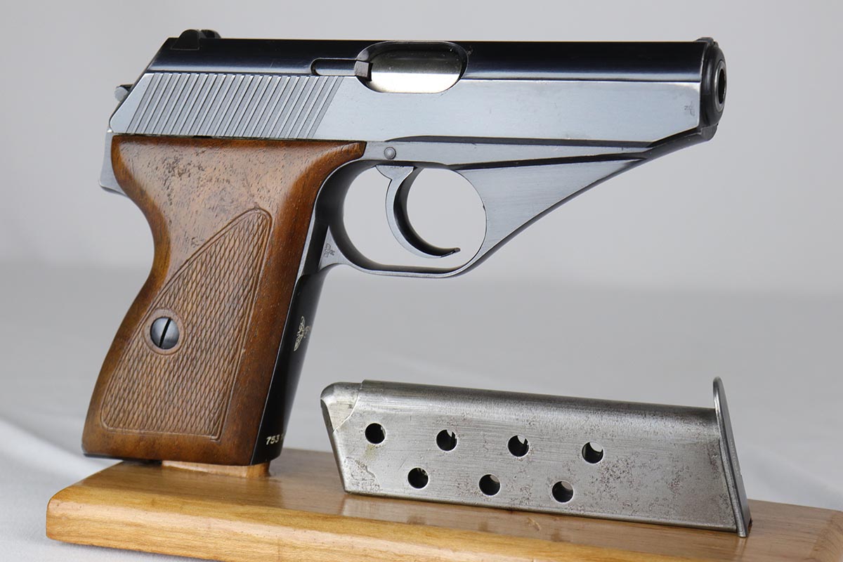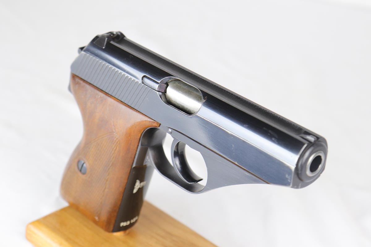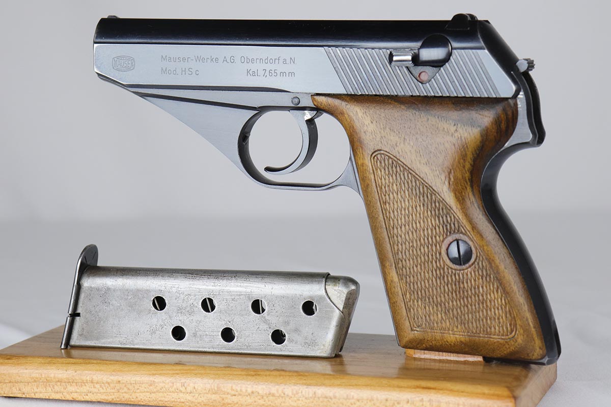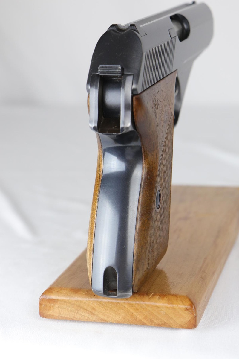 4/16/18 – This is an early Nazi Navy marked HSc. The high polish finish is about 98% and the frame, slide and locking block are all matching. It is in the correct serial range for a variation 2 Navy pistol, which has the Nazi Navy insignia on the front strap. There were only 7,000 of this variation produced. The grips are excellent as well with no chips or cracks. Comes with the correct early Mauser banner magazine as well. Early style Lanyard loop built into the frame. Mirror bore.