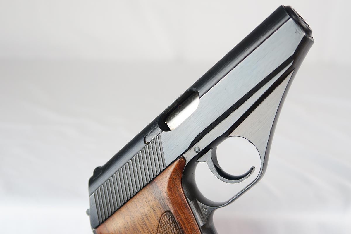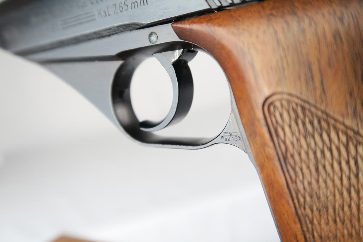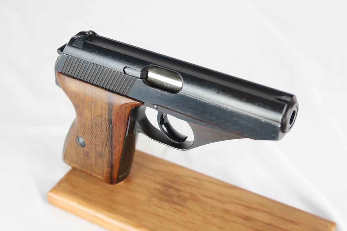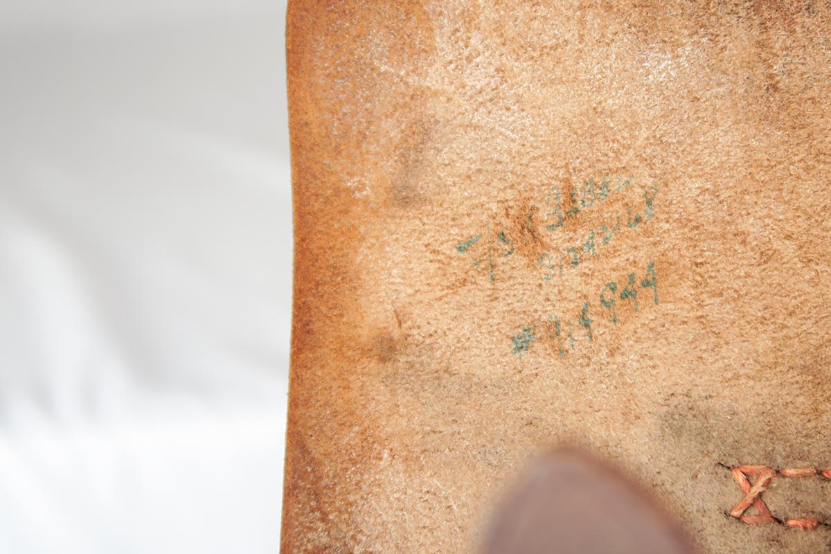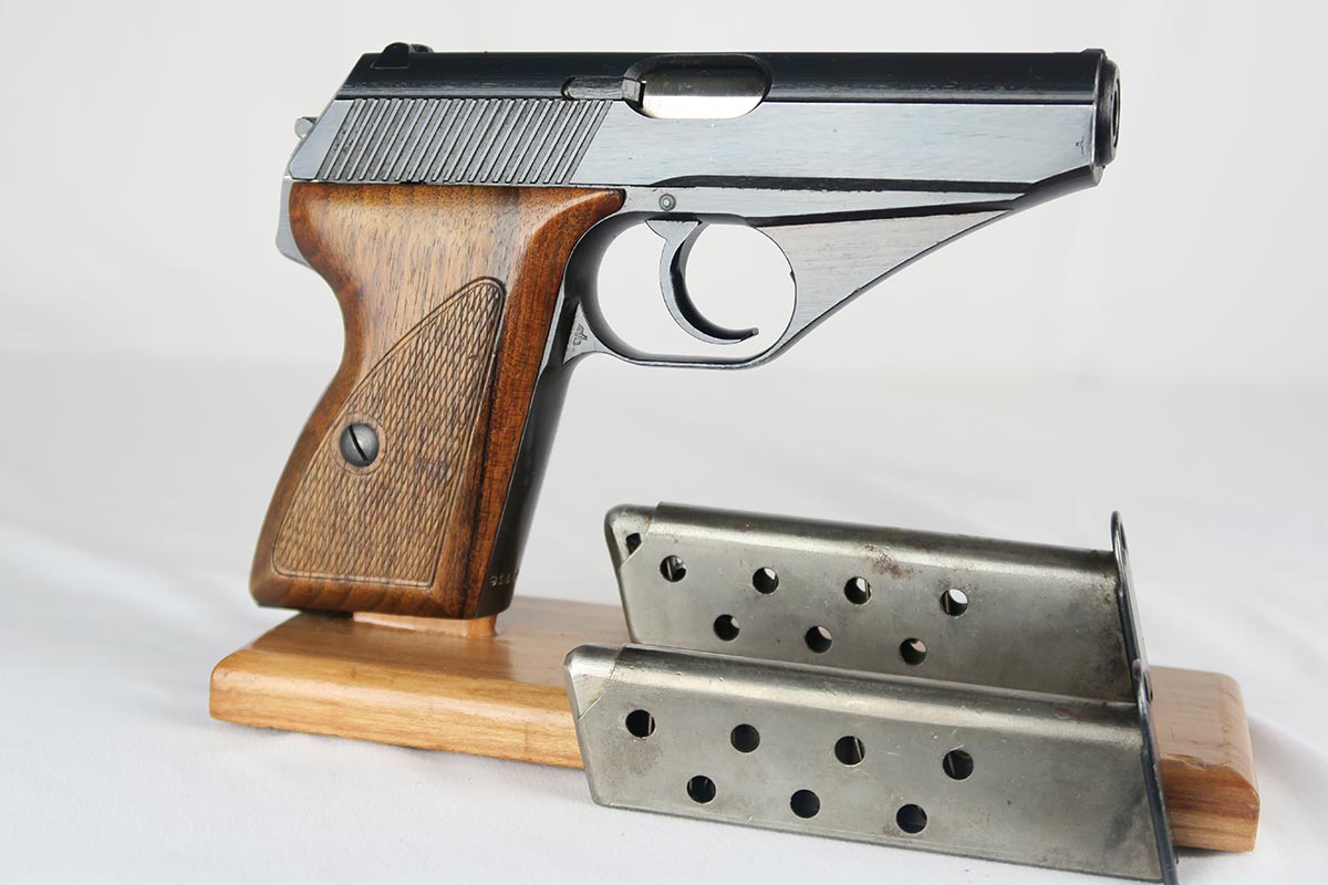 2/14/18 – This is a near-mint Mauser HSc rig with copy of the original capture document, spare magazine and Akah marked holster. The pistol is army-issued, with WaA135 proof on left side trigger guard. The finish rates at 99% with minor edge wear and a mint bore. The rig includes two total half-moon magazines, and an Akah marked holster which is numbered to the pistol on the interior and is Mauser inkstamped. The pistol comes with a laminated copy of the original capture document, which was separated from this pistol as it was kept with the other gun listed on the document. The pistol was brought back from the war by Technician third grade, Kurt Gebel, in June of 1945.