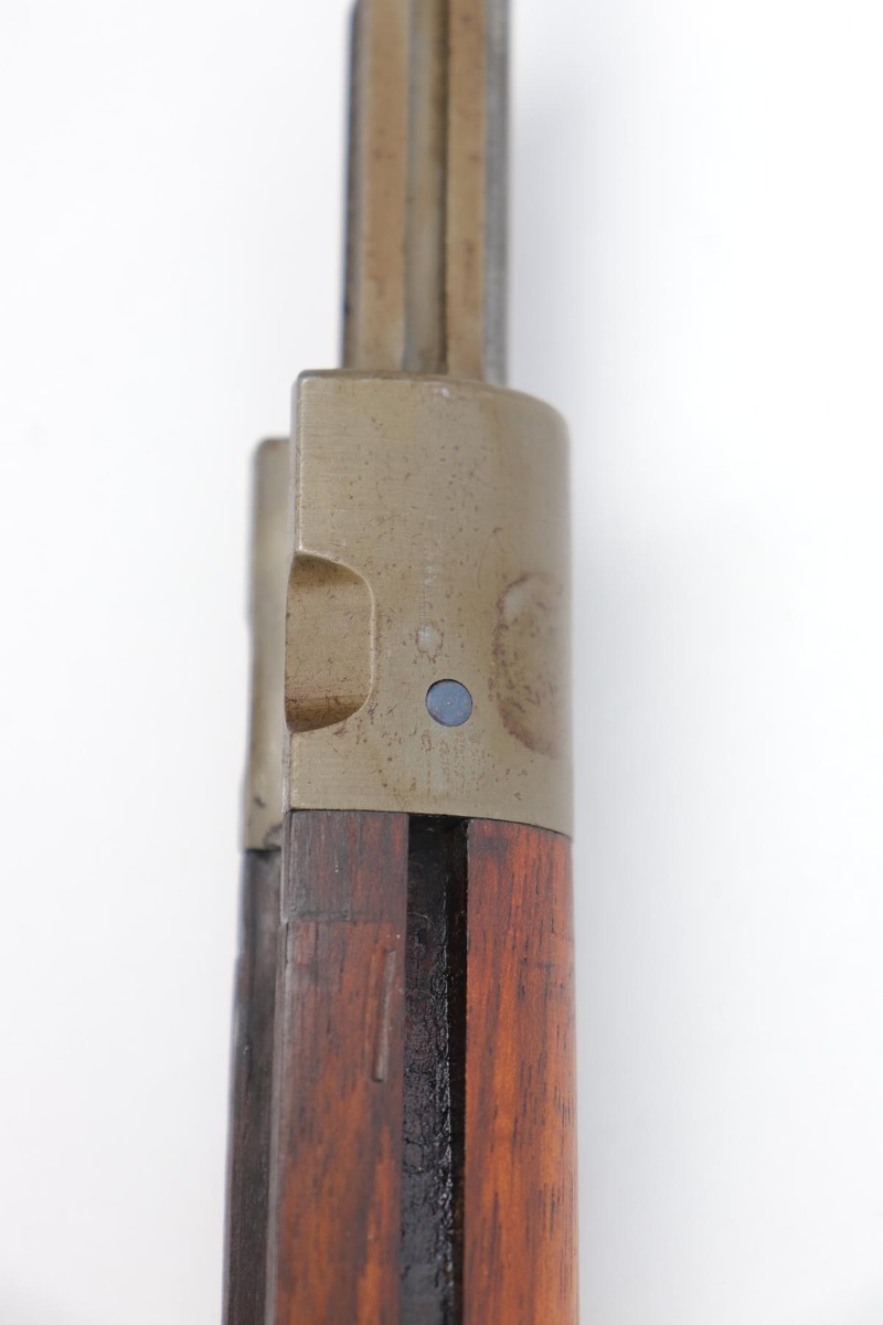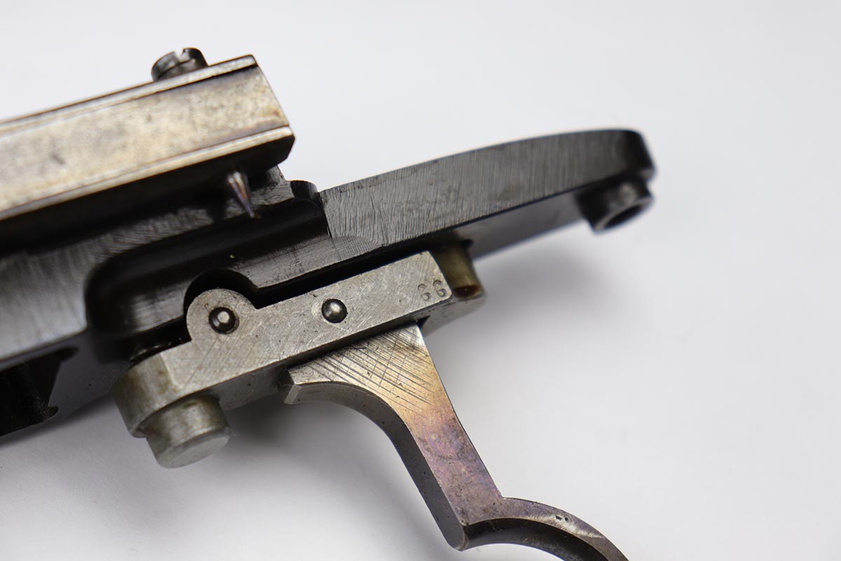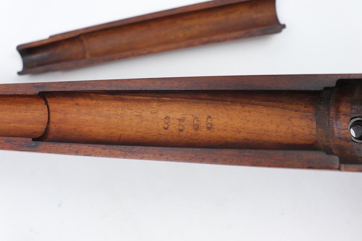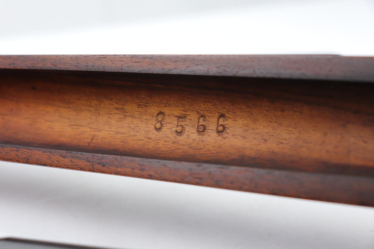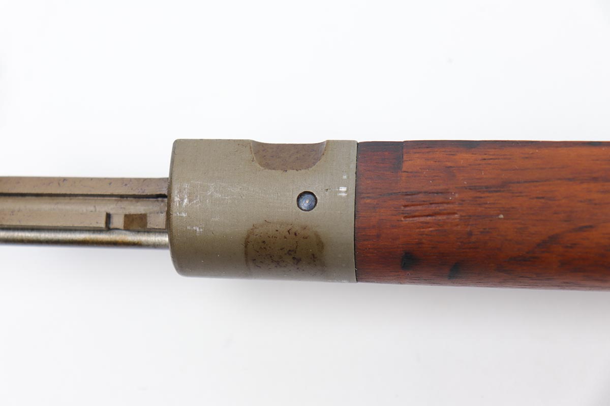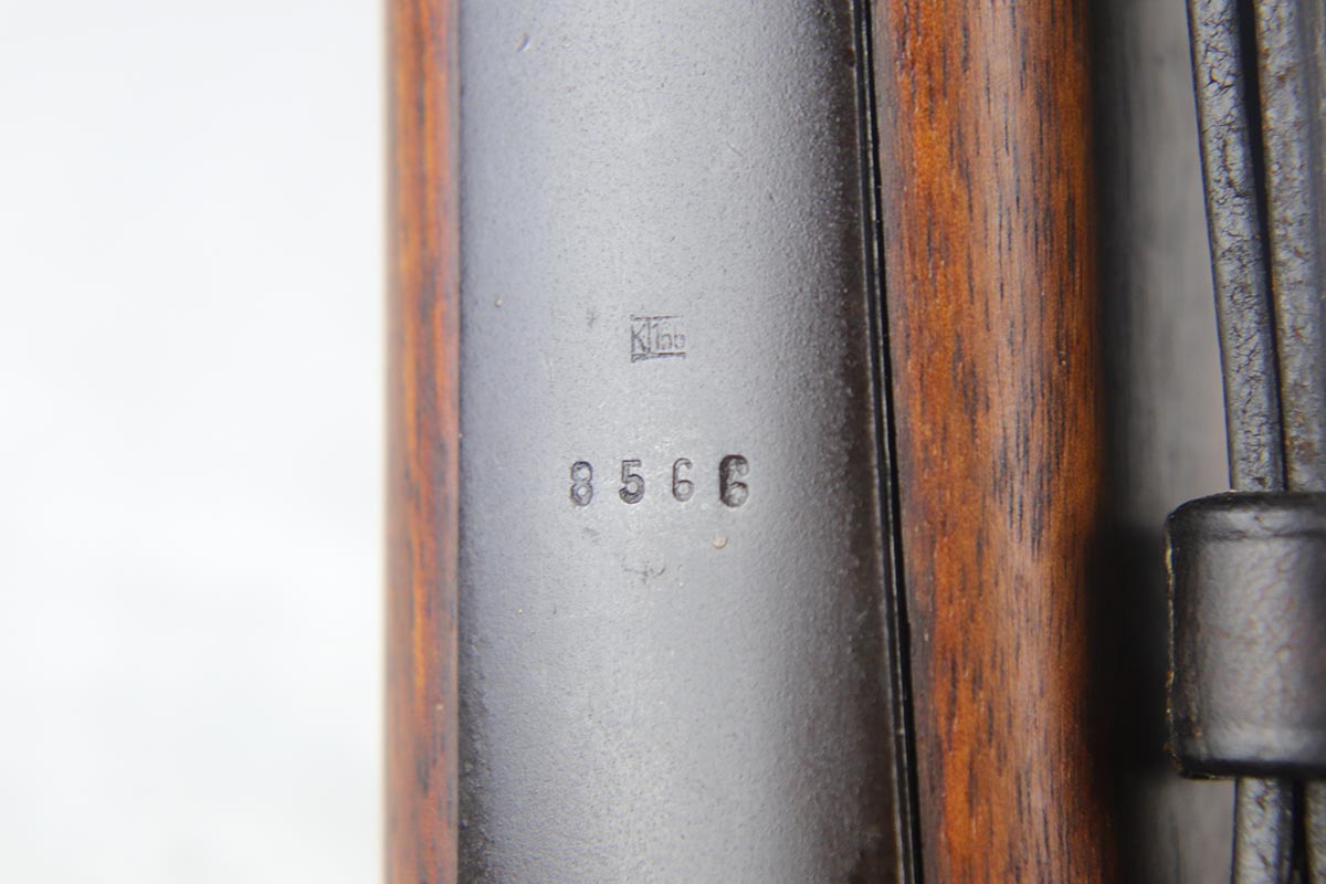 12/3/18 – This is a rare G Date Mauser K98, manufactured in 1935 and featuring all matching numbers and original finish. Introduced during the early years of the Nazi Party’s dominance of Germany, the code system was intended to obscure the scale and speed of German re-armament, and all correct G Date K98s are seldom available to the collector market. The original finish rates at about 96-98% with the majority of the finish loss on the bolt release and the left side lip of the receiver. The bayo lug and area under the front barrel band are ‘in the white’, a feature of these early rifles that helps to ensure original bluing. All numbered parts match the receiver, including the hand guard, as well as the stock (internally numbered) and butt plate. Stock is gorgeous but may have been lightly sanded. Loads of early acceptance proofs adorn this rifle as well. The sling well is marked with DRP which indicates (I believe) that it was issued to local militia while the German army was still hiding their actual numbers. Comes with an original sling and cleaning rod. Terrifc bore.