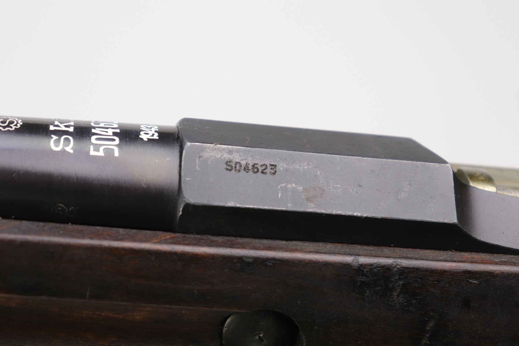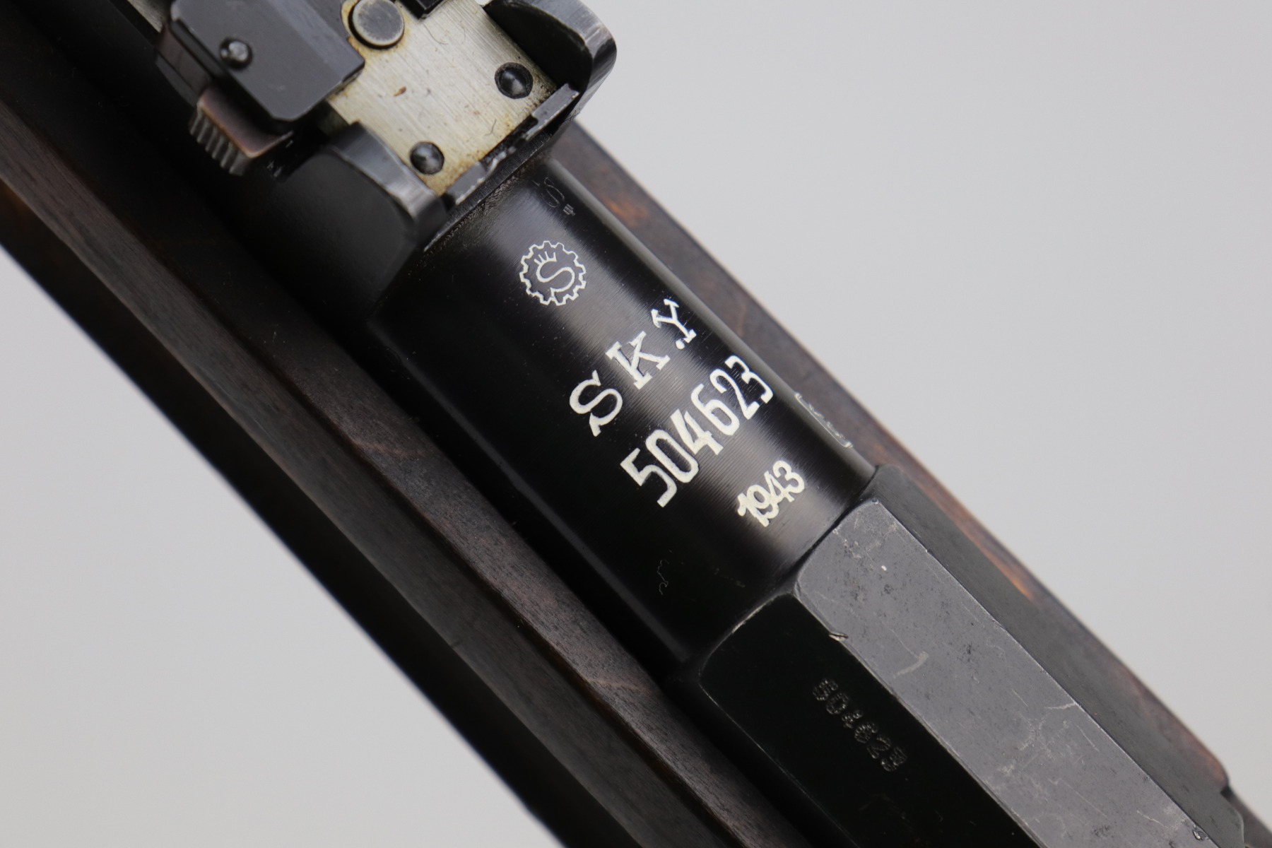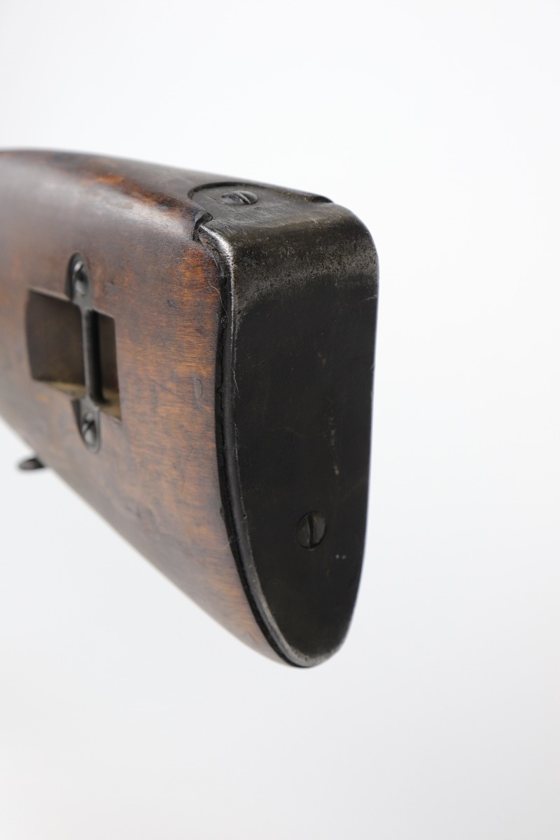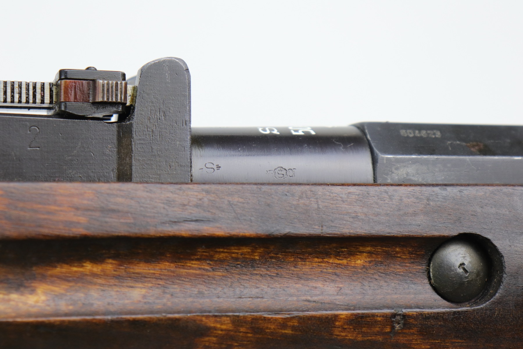 10/7/20 – This is a minty example of a Finnish Mosin Nagant M39 manufactured in 1943. The “SKY” marking on the receiver indicates that it was built by Sako on contract for the Finnish Home Guard. There are “S in Gear” and “SA in Box” markings as well. The gun is all matching, but there is an import mark on the underside of the barrel and a serial number laser-etched on the receiver. The gun has retained most of its finish but there is minor high edge wear on the receiver, some handling marks here and there, and some areas of oxidation under the finish. The stock is excellent, just a few bruises here and there. The bore is mint.