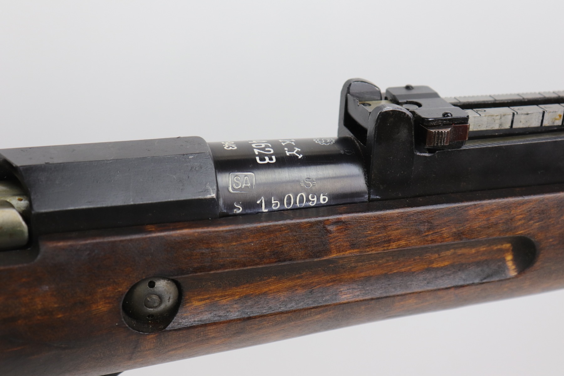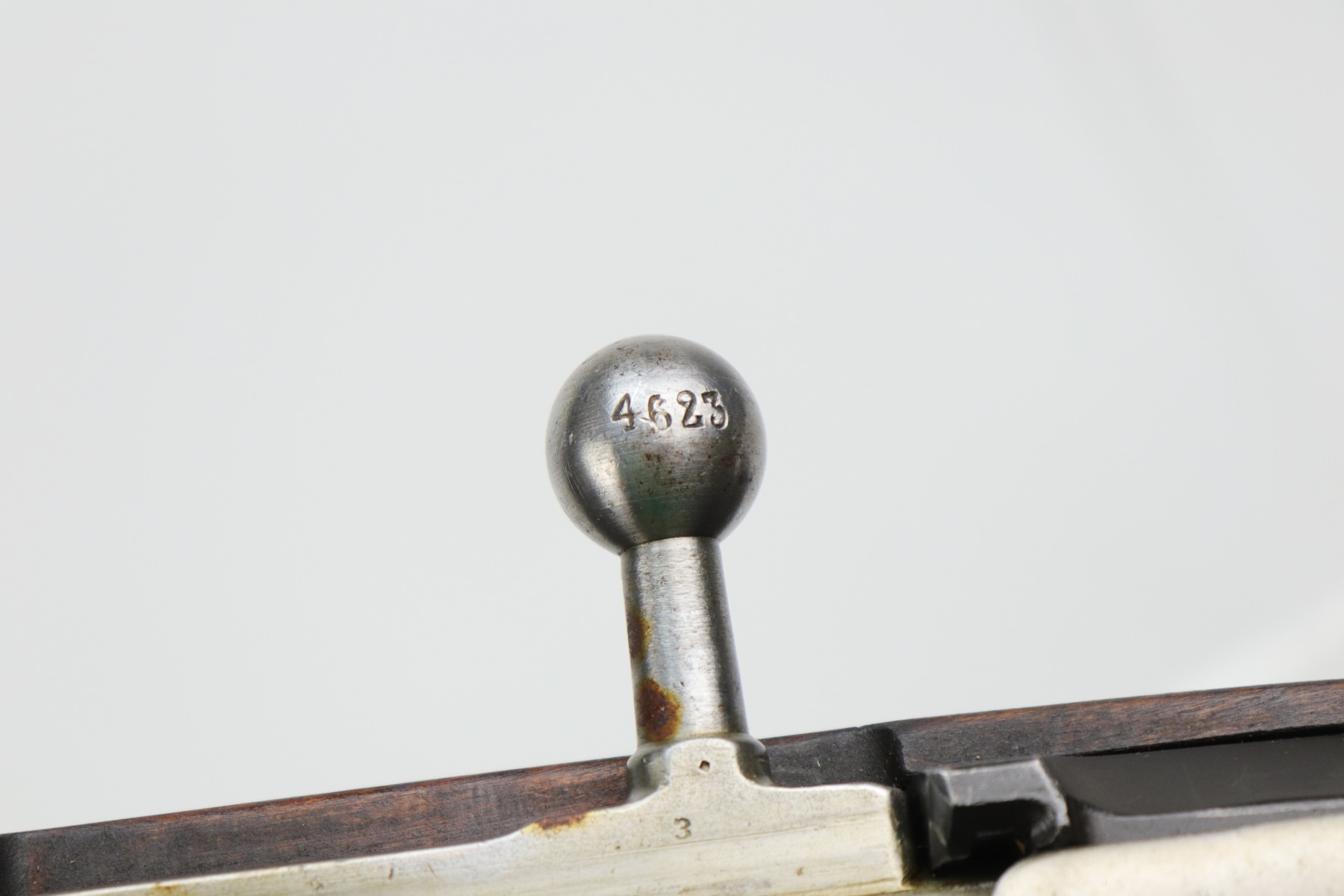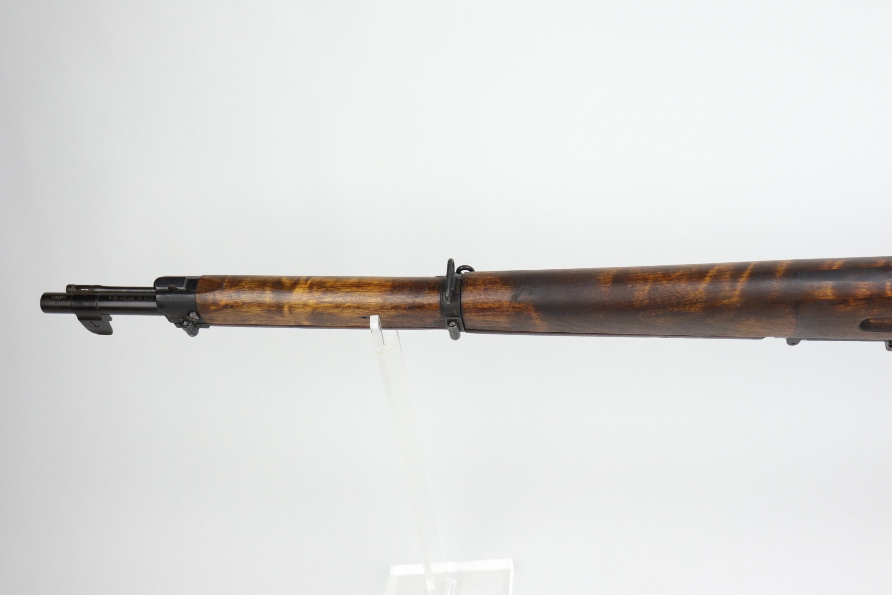 10/7/20 – This is a minty example of a Finnish Mosin Nagant M39 manufactured in 1943. The “SKY” marking on the receiver indicates that it was built by Sako on contract for the Finnish Home Guard. There are “S in Gear” and “SA in Box” markings as well. The gun is all matching, but there is an import mark on the underside of the barrel and a serial number laser-etched on the receiver. The gun has retained most of its finish but there is minor high edge wear on the receiver, some handling marks here and there, and some areas of oxidation under the finish. The stock is excellent, just a few bruises here and there. The bore is mint.