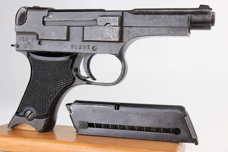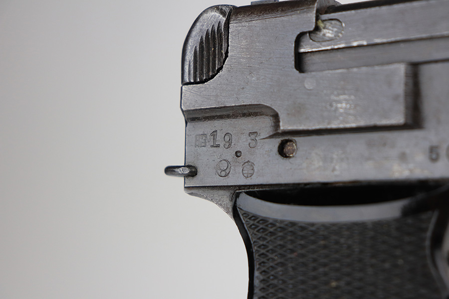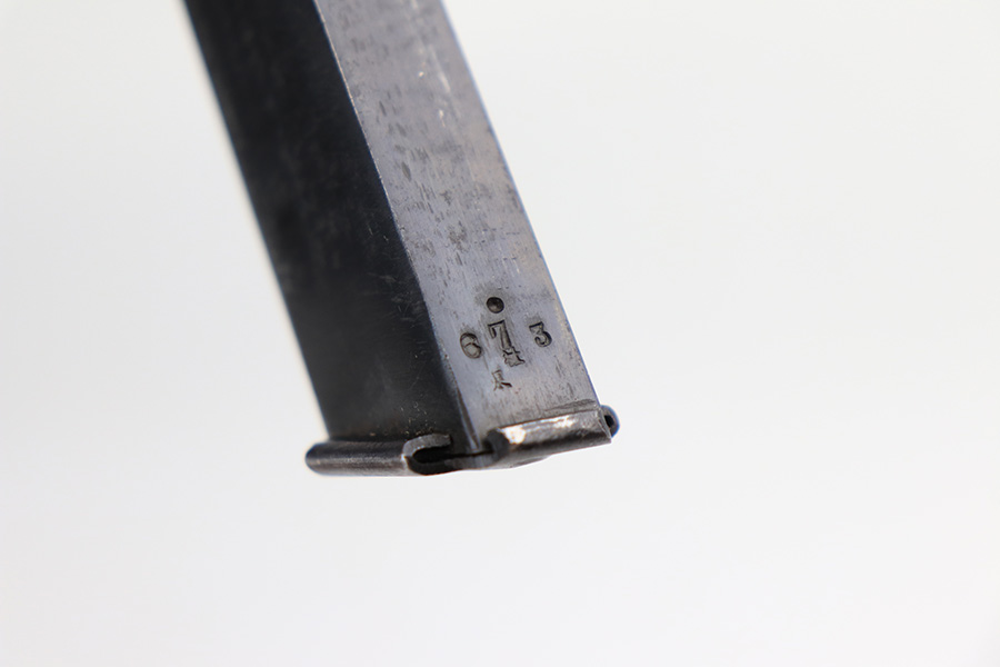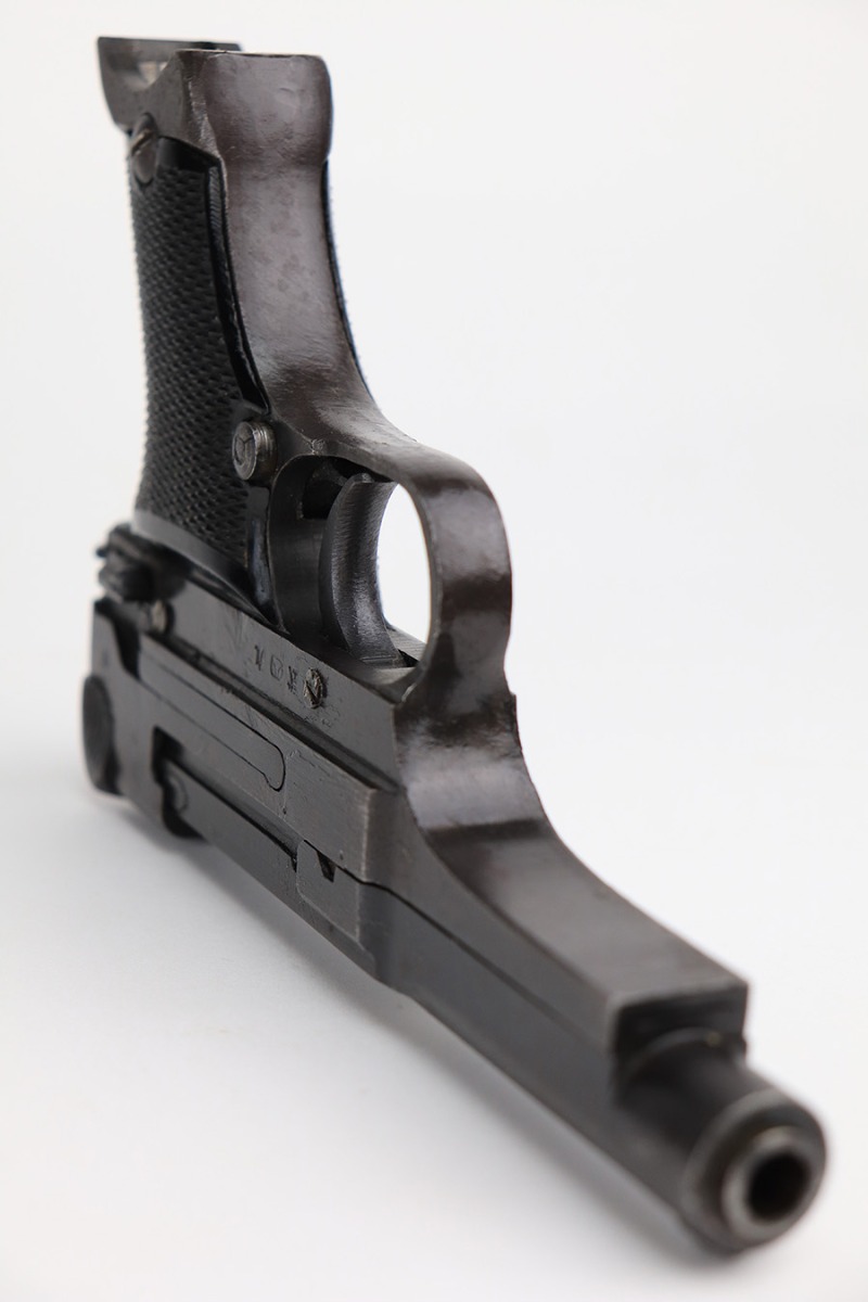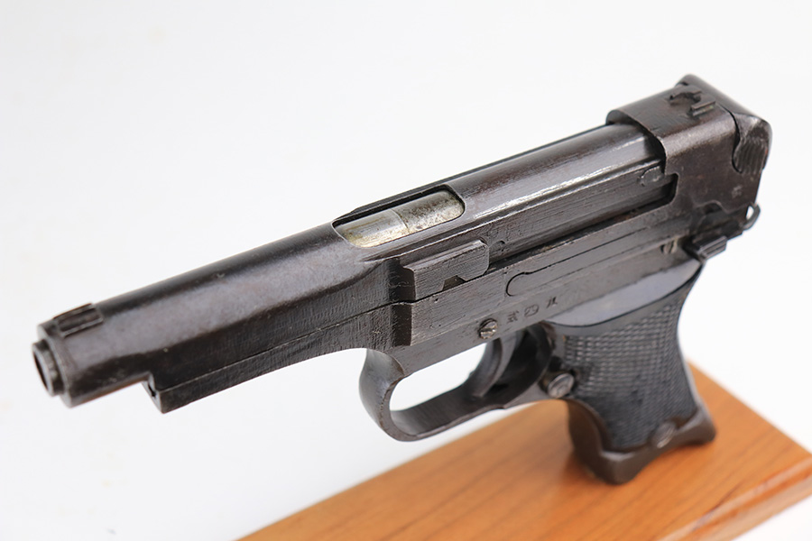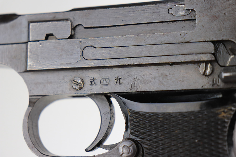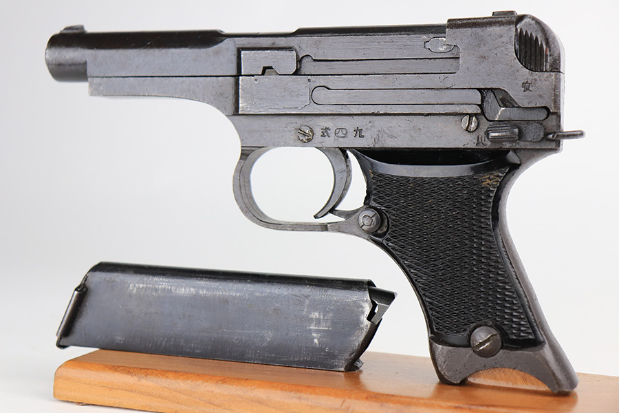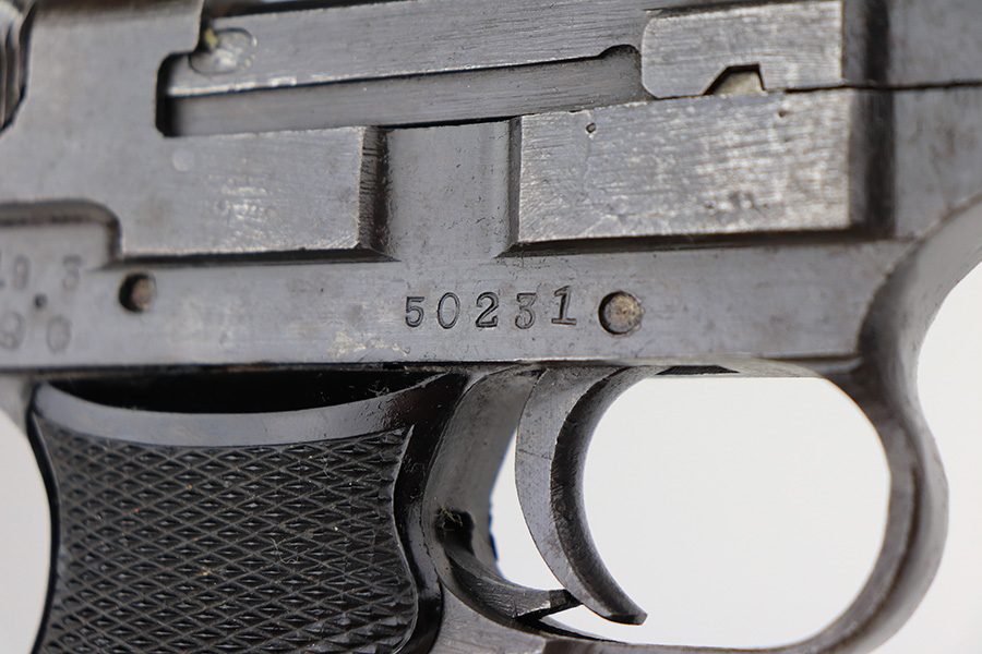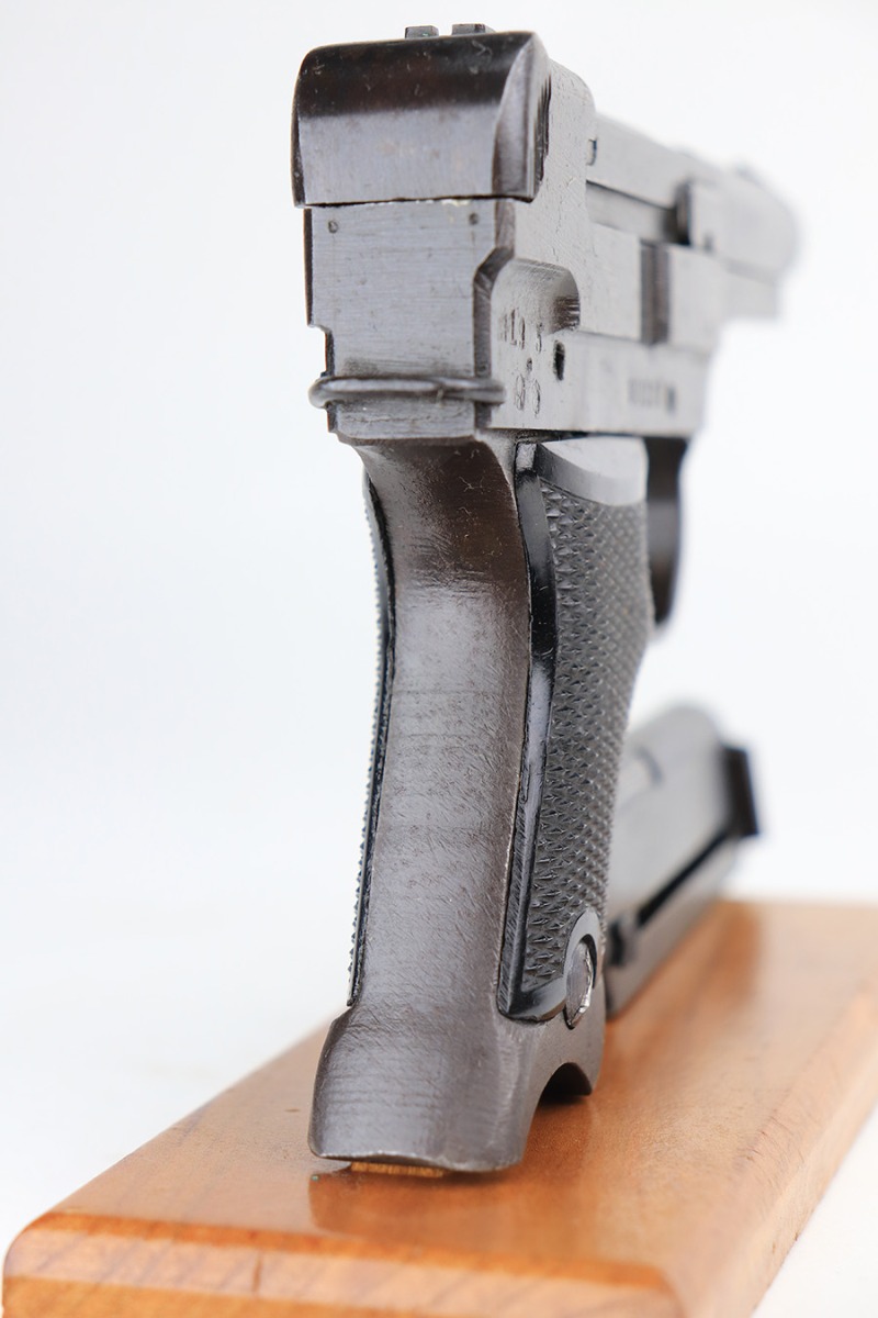 2/22/22 – This is a near-mint example of a late-war Nambu Type 94 issued to the Japanese military in March of 1944. The gun is all matching and has retained more than 98% of its original late-war finish. There is just very minor wear concentrated around some of the high edges, mainly on the right side of the gun. Comes with excellent black bakelite grips and a period-correct but mismatched magazine. The bore is near-mint.