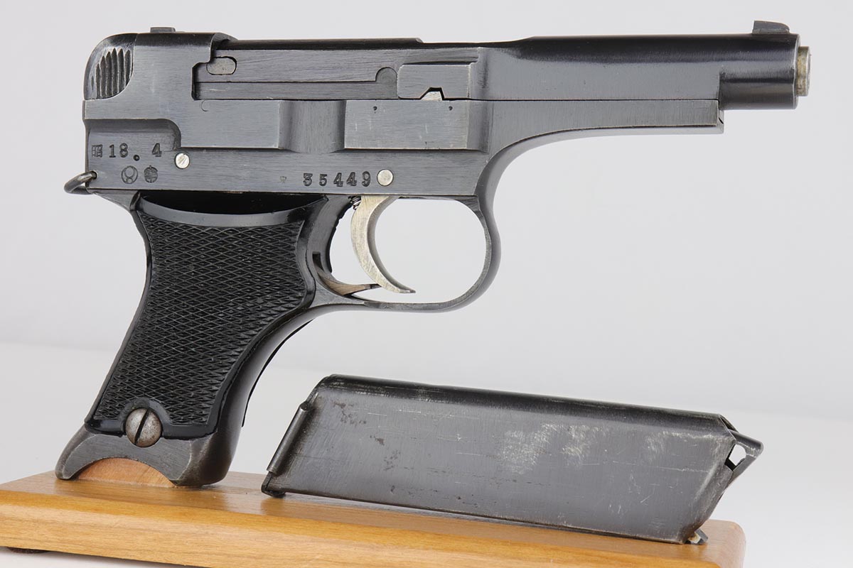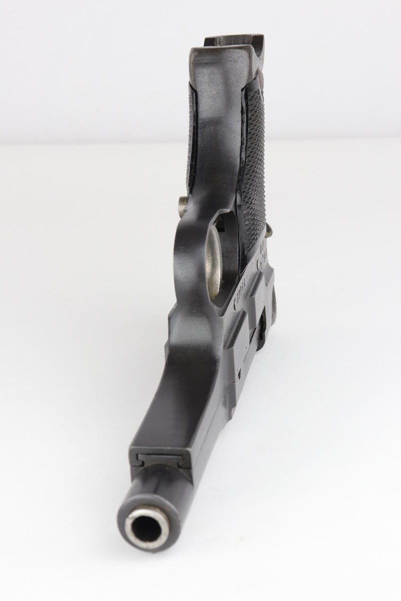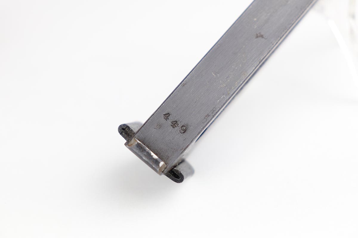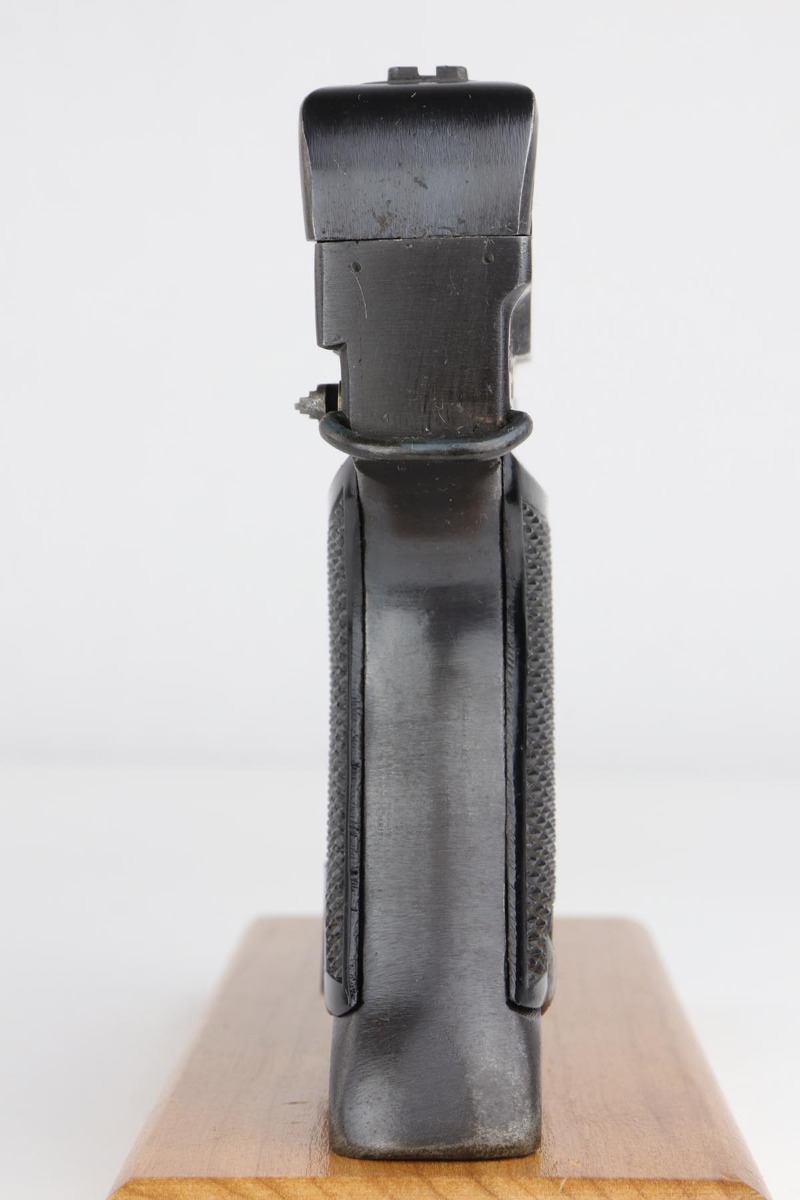 6/13/19 – This is a near-mint Type 94 Nambu with one original, matching magazine. Made in April of 1943, the pistol has 98% original blue, with minor edge thinning and slight finish loss on the straps. Terrific bore and nice grips, though they do have some minor handling wear.