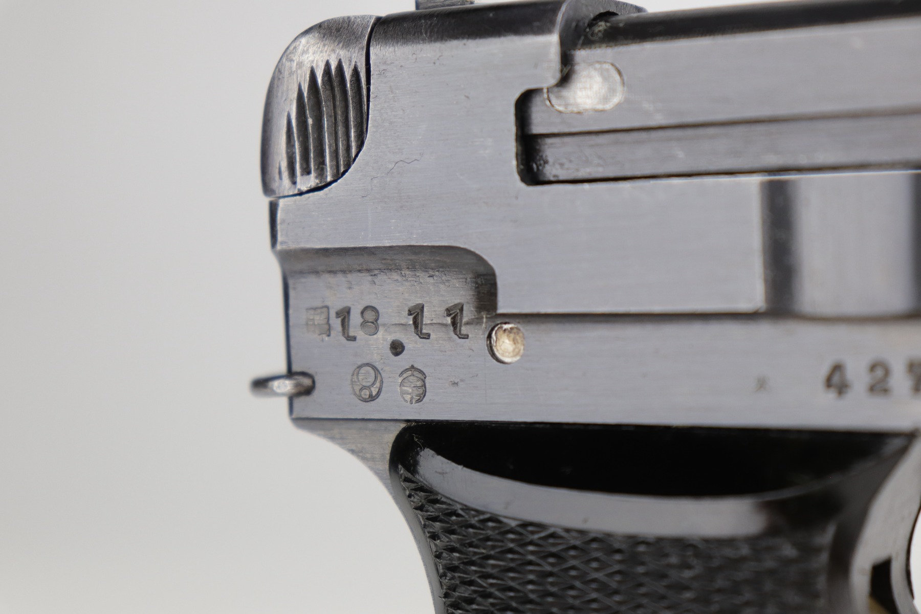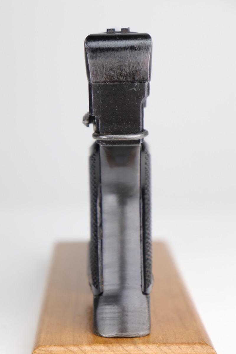 7/7/22 – This is a minty example of a Nambu Type 94 issued to the Japanese military in November of 1943. It is all matching and comes with one original matching-numbered magazine. It has retained about 98% of its original finish with just hints of wear around some of the high edges and a few very light handling marks here and there. Comes with excellent black bakelite grips. Minty bore.