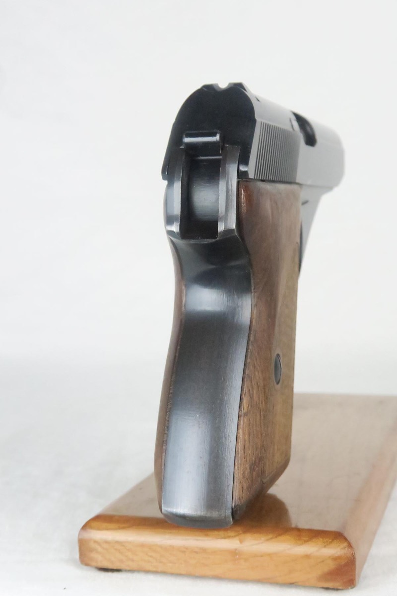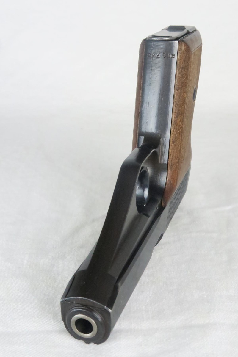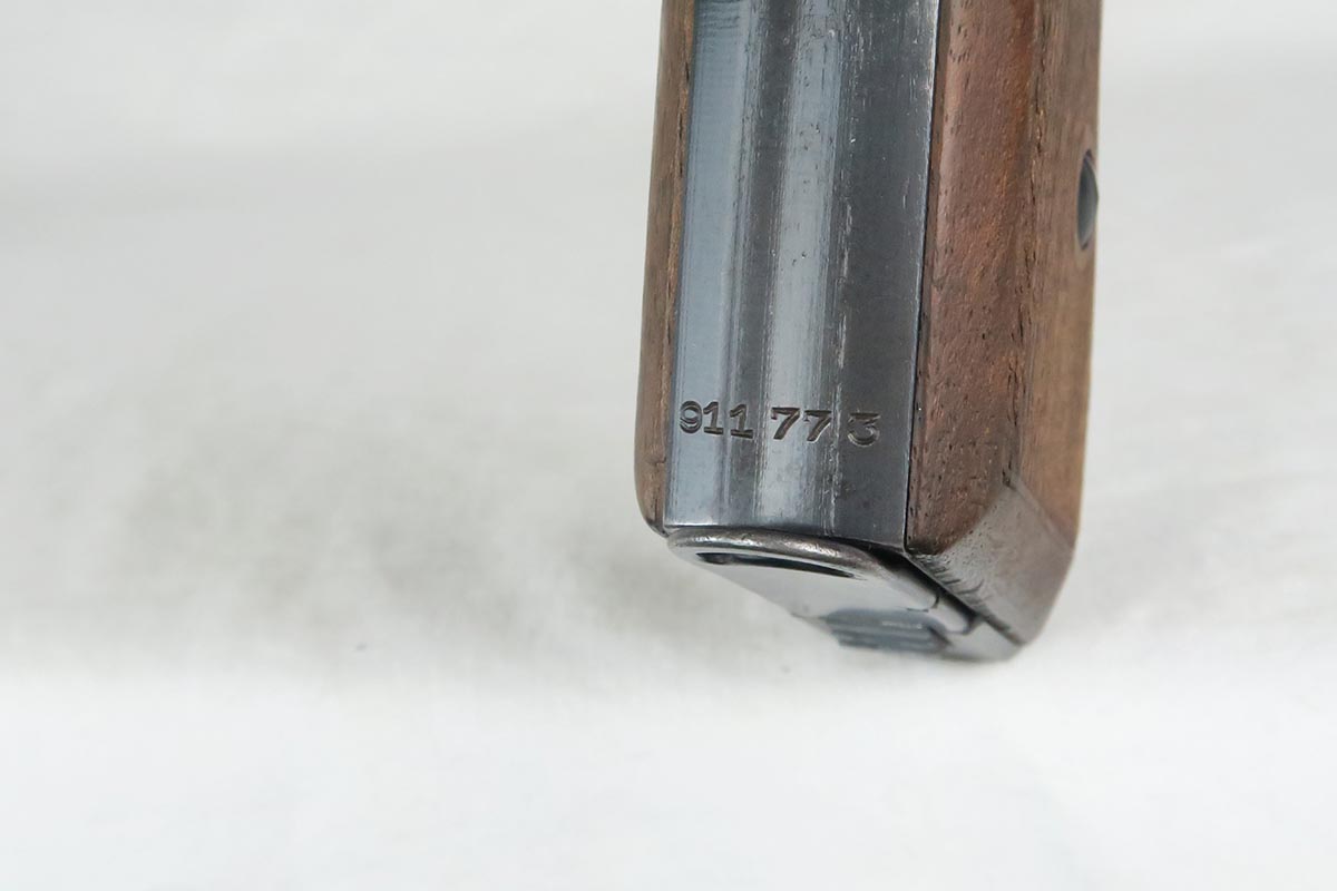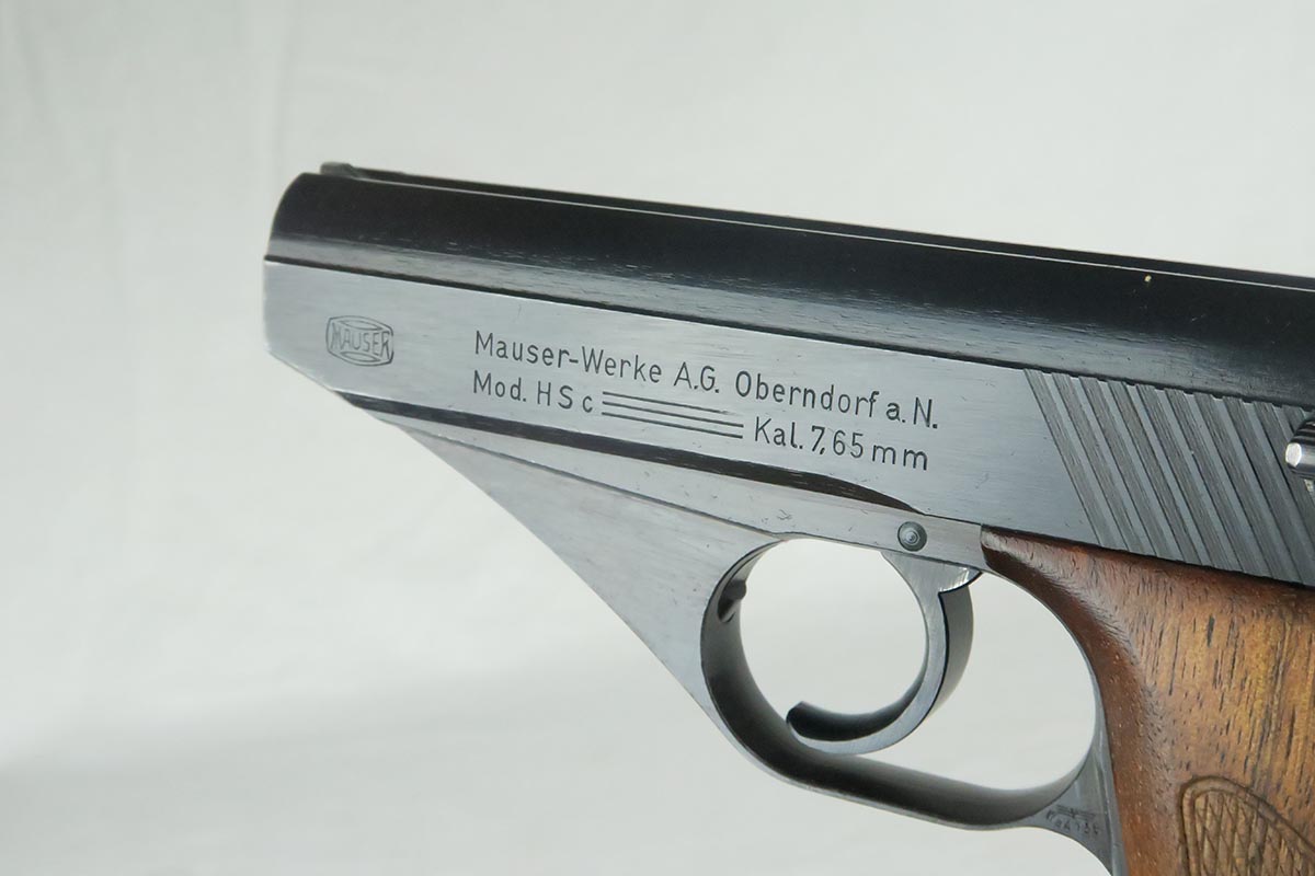 12/19/17 – This is a minty Mauser HSc from World War II that was issued to the German Army. It is all original and correct with 99+% blue remaining. The only notable spot of finish loss is on the bottom of the back strap. Mint bore and grips. There were ~37,000 of this variation produced during the war.