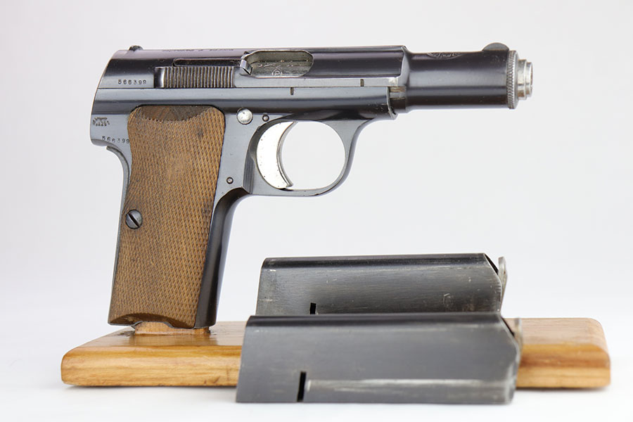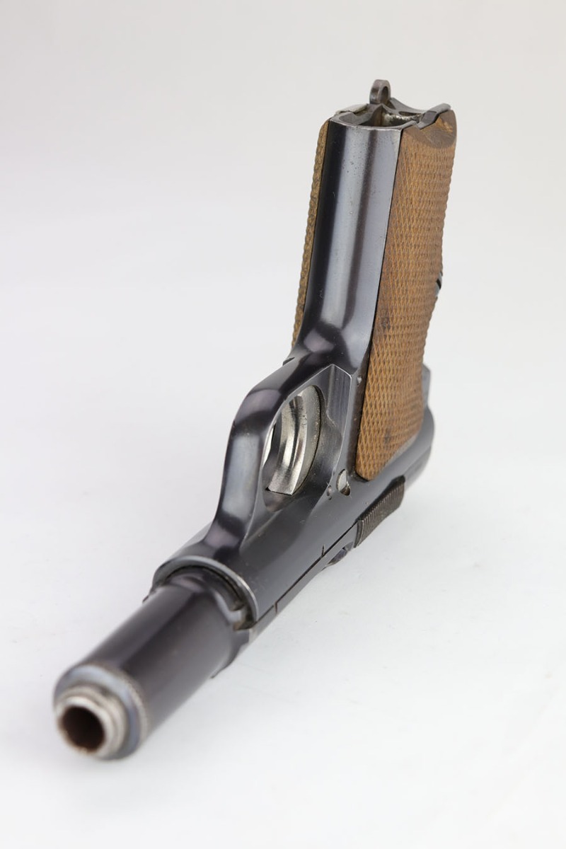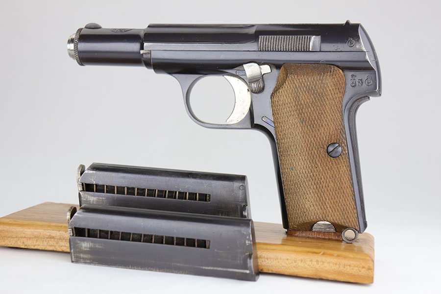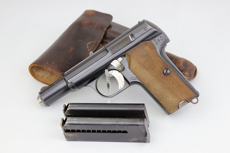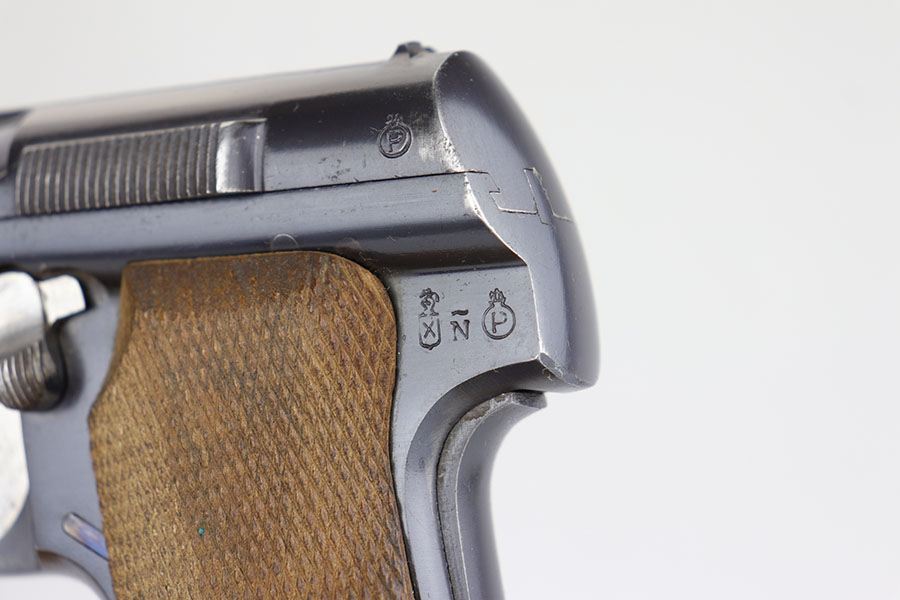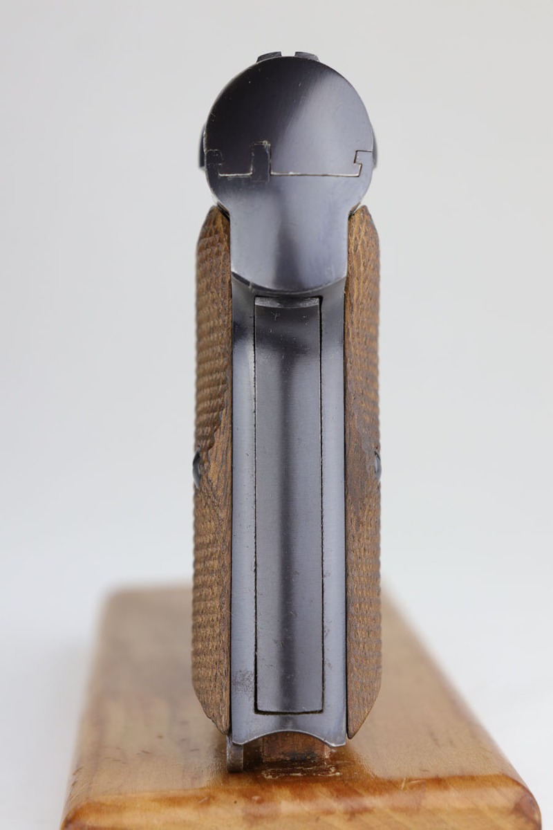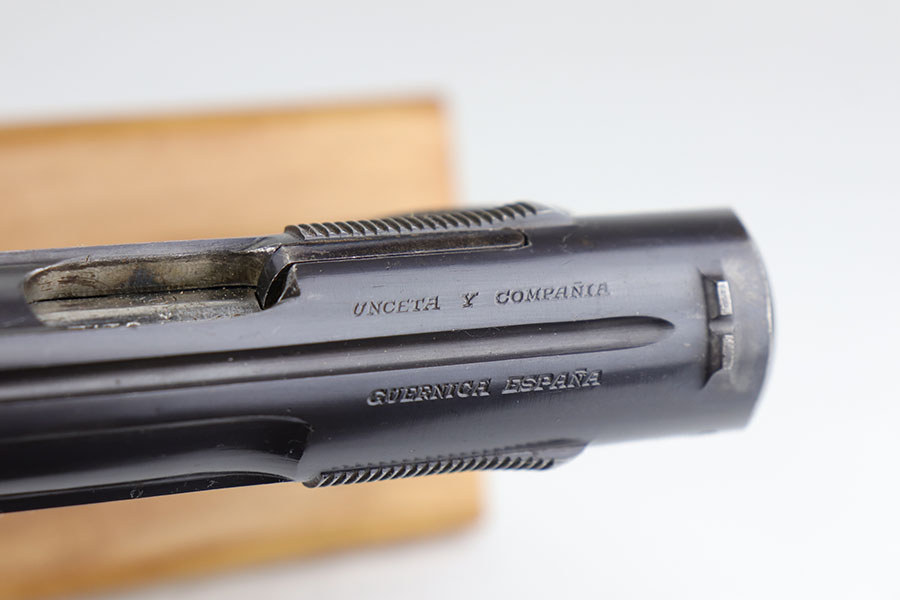 4/22/20 – This is a near-mint Nazi Astra 300 rig with holster and spare magazine. It was delivered on March 13th of 1943 as part of the first Nazi contract order for these pistols. Original blue rates at 98-99% with very minor high edge wear from being in the holster. Excellent grips. Both magazines are original and correct. Original holster that has the serial of the pistol written inside. Unfortunately the bore on this one wasn’t well cared for. It has some corrosion throughout, though the rifling is strong, and could also use a thorough cleaning.