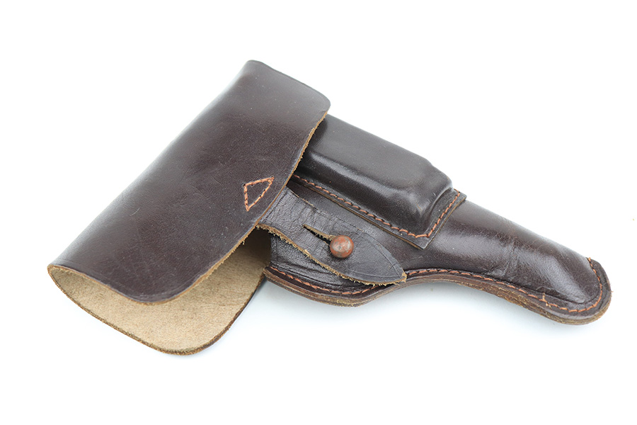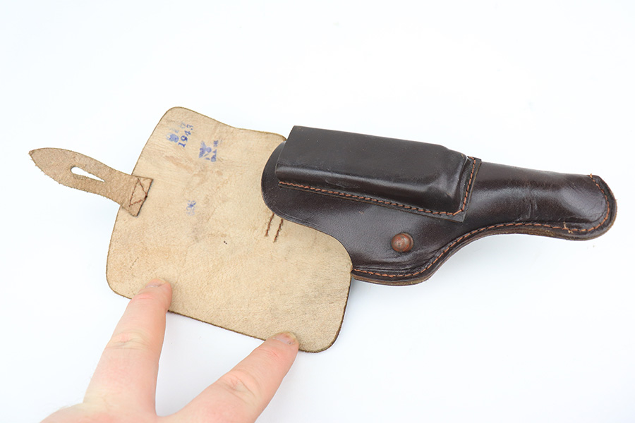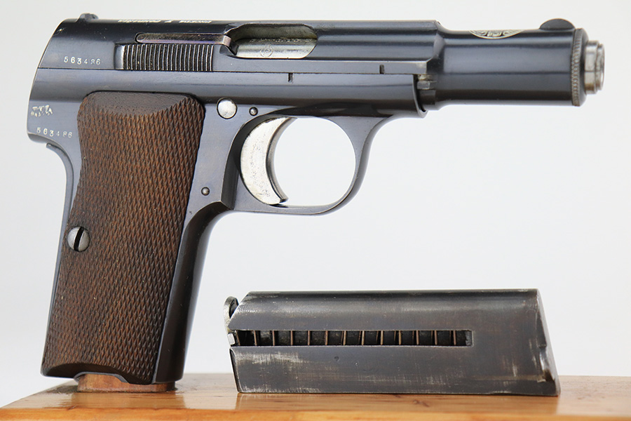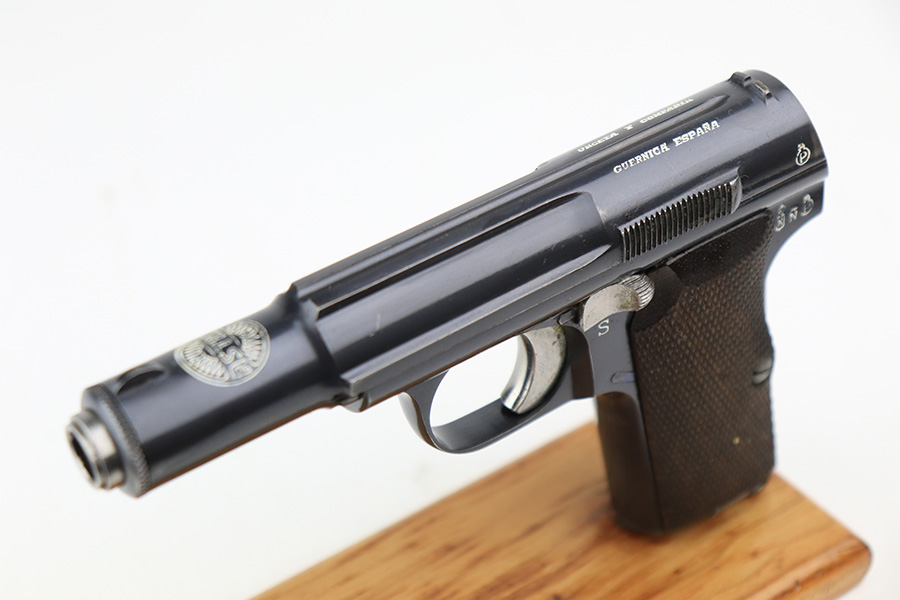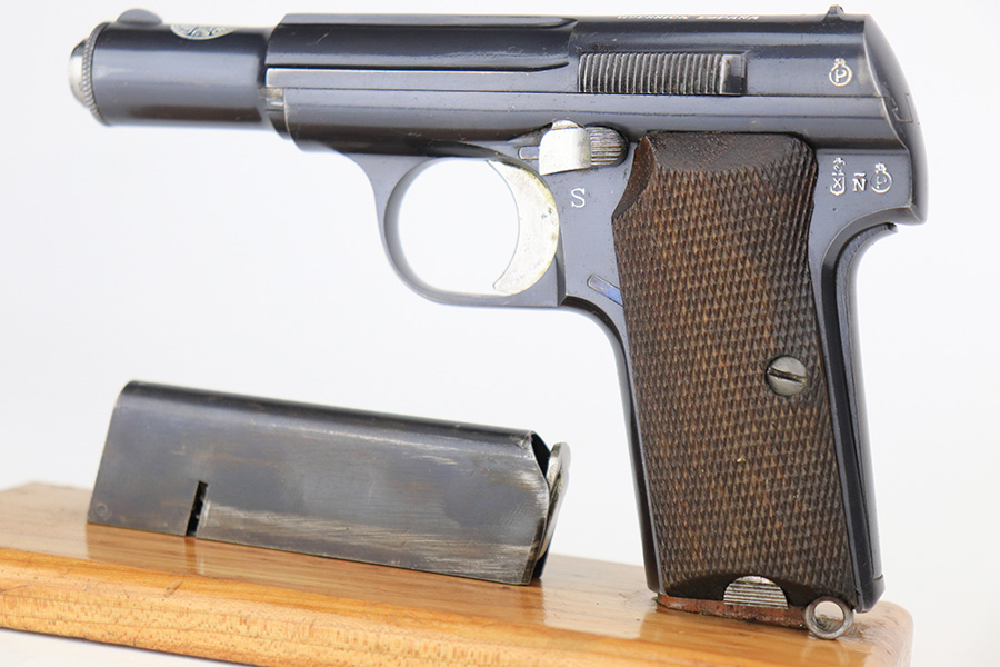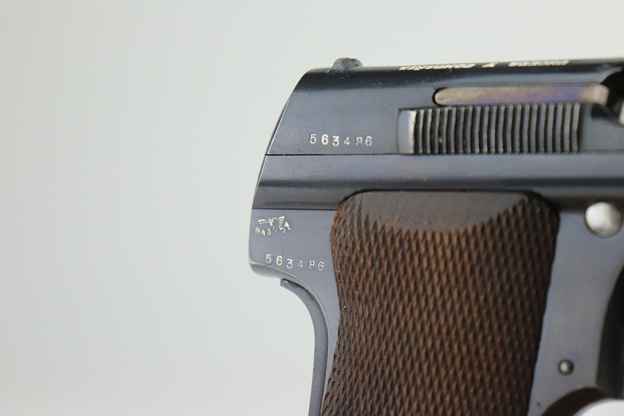 5/16/22 – This is a near-mint example of a Spanish Astra 300 issued to the Nazi military and delivered on February 12th of 1943. The gun is all matching and has the proper “Waffen 251” military acceptance proof on the right side of the frame. It comes as a rig with one proper magazine and a 1943-dated waffen-proofed holster in un-issued condition. The gun has retained nearly all of its original bluing with just very minor thinning on the grip straps and hints of wear on some of the high edges. Mint wood grips. Mint bore.