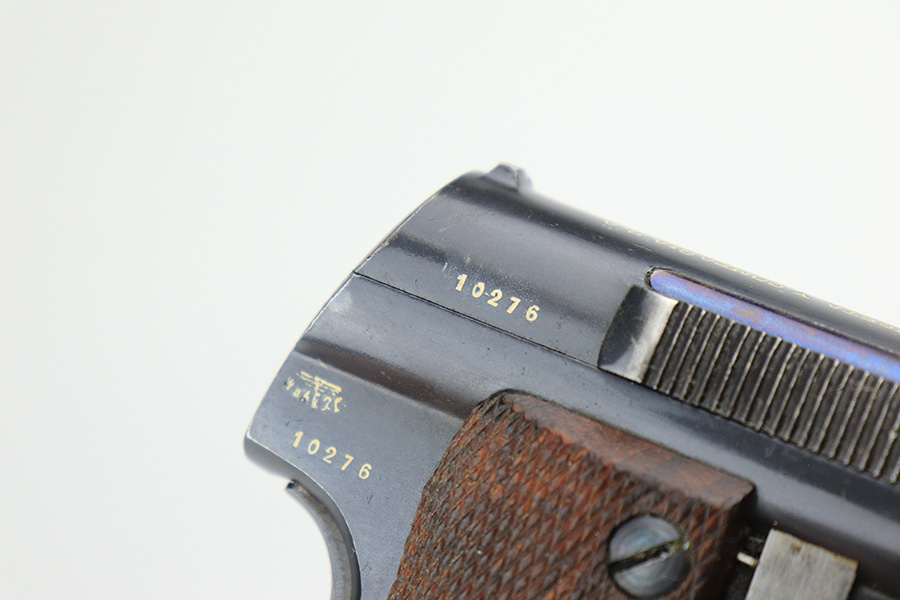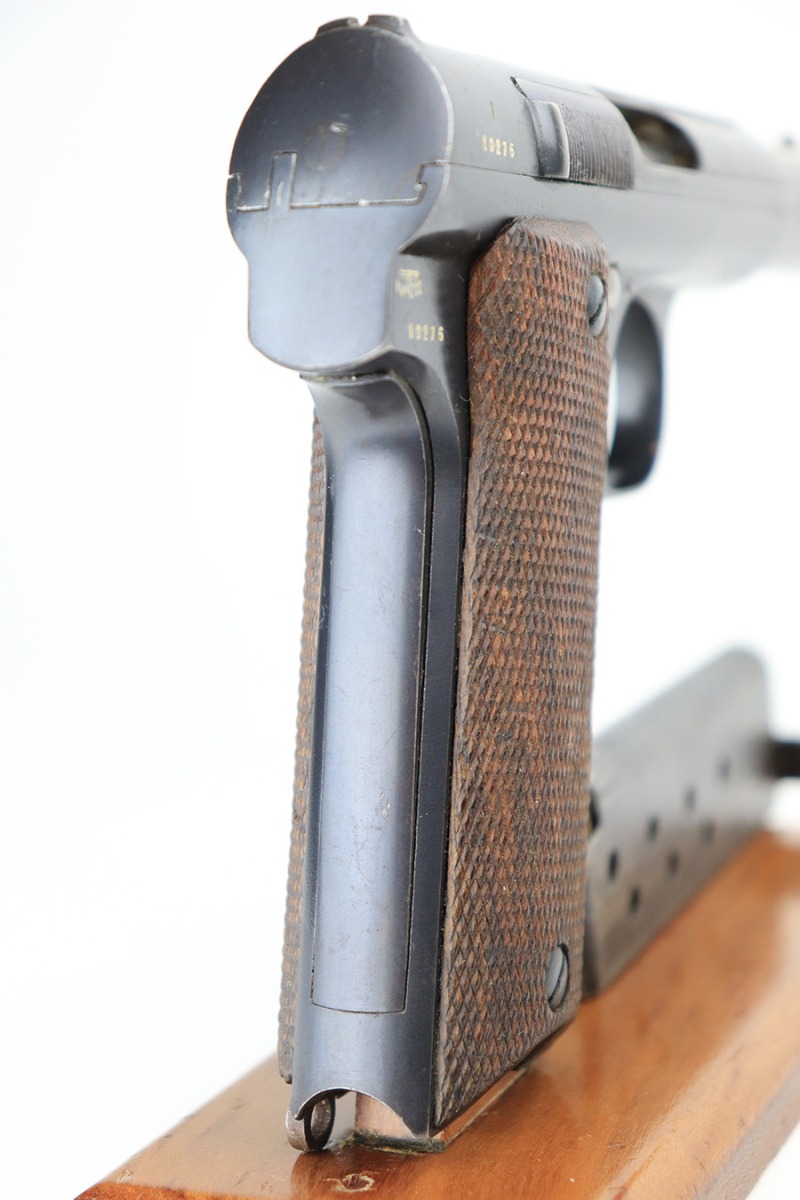 5/16/22 – This is a minty example of a Spanish Astra Model 600 issued to the Nazi military and delivered on July 16th of 1944. The gun is all matching and has the proper “Waffen D20” military acceptance proof on the right side of the frame. The gun has retained about 97% of its original bluing with just very minor wear on some of the high edges and a few tiny scratches here and there. Comes with excellent period-correct wood grips and one proper magazine. Minty bore.