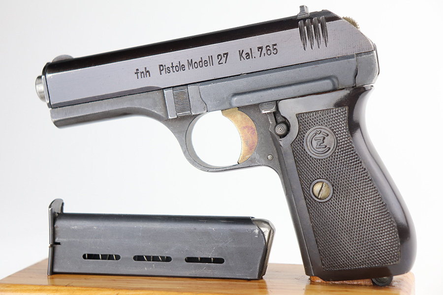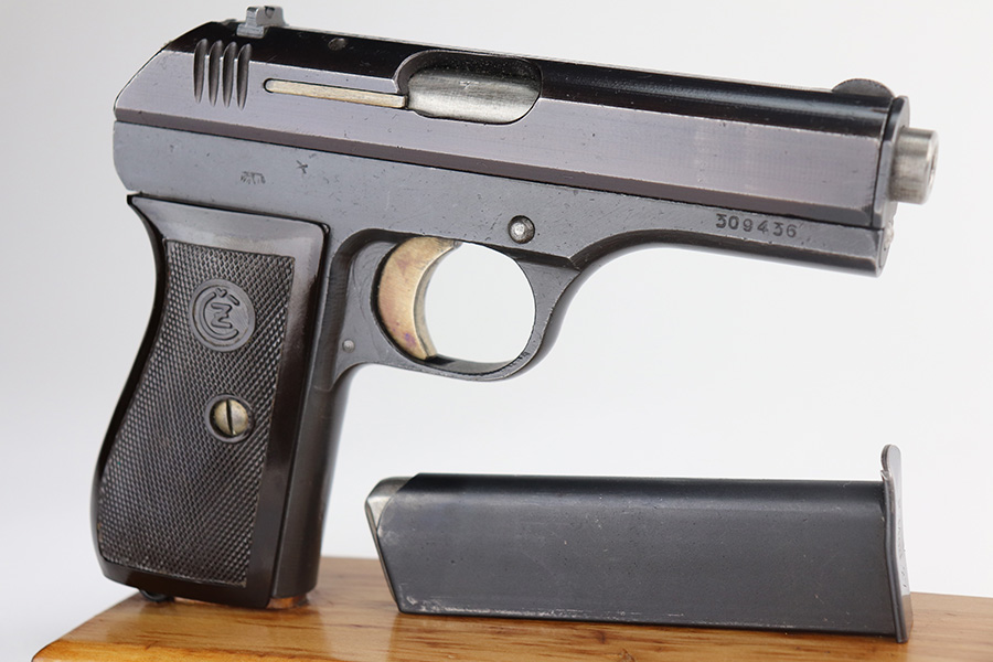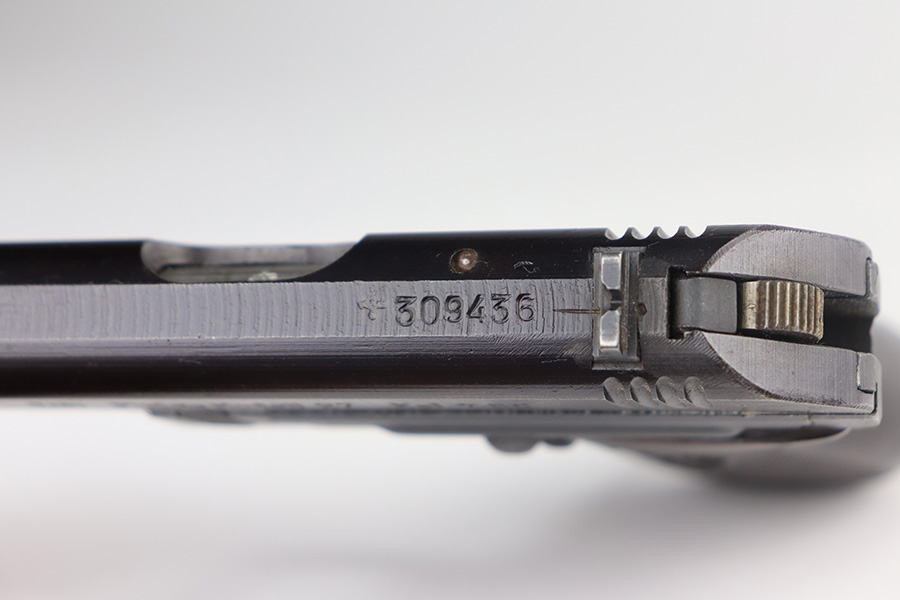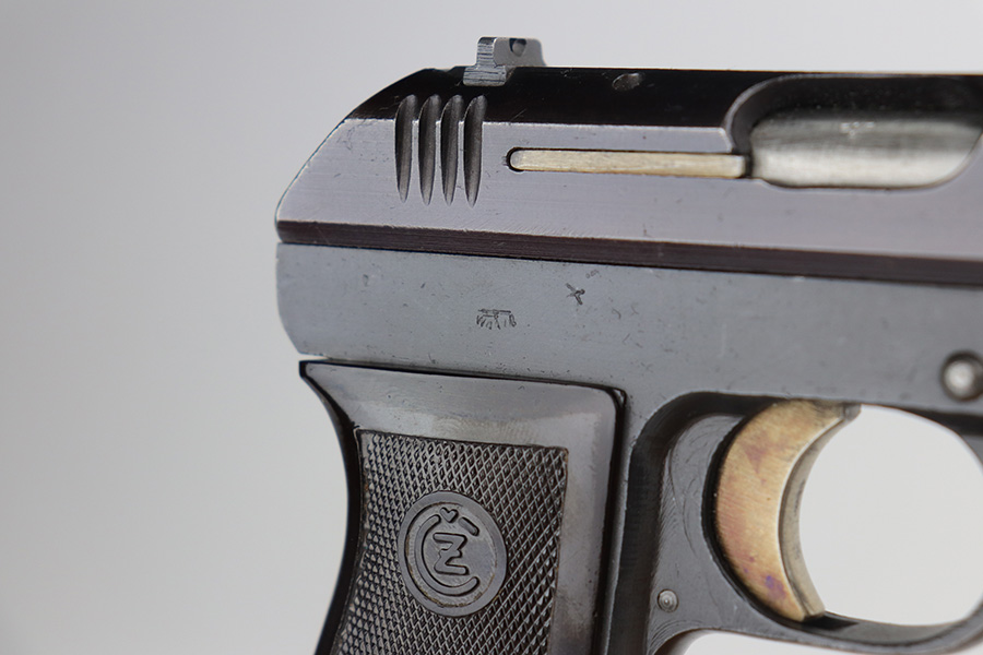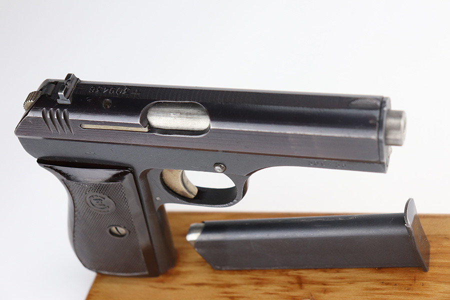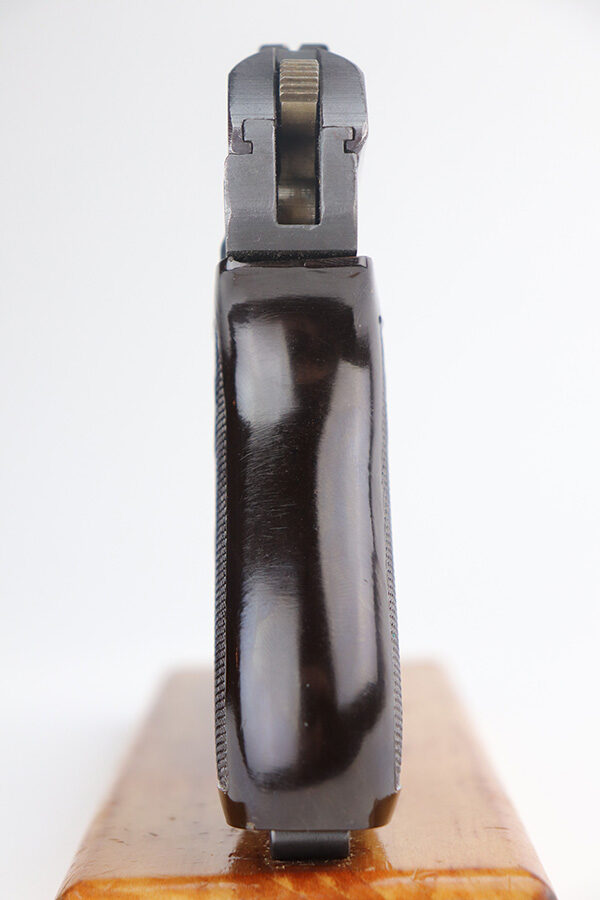 6/15/21 – This is a near-mint example of a CZ 27 issued to the Nazi military during WW2. This one is all matching and has the proper “Waffen 76” military proof. It has retained about 98% of its original military finish. Just a hint of wear on the high edges of the slide. Comes with a very nice grip (small chip in the bottom left corner) and a period-correct magazine. Near-mint bore.