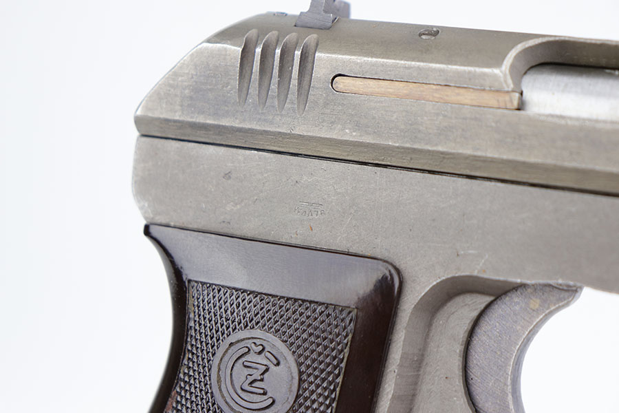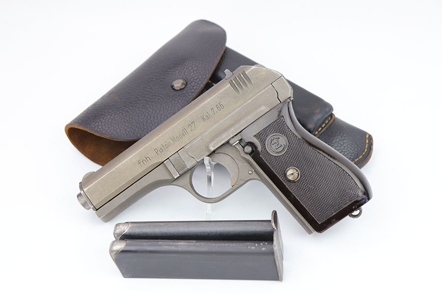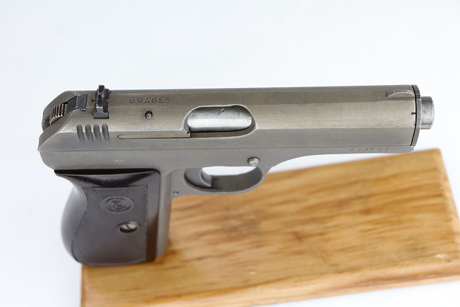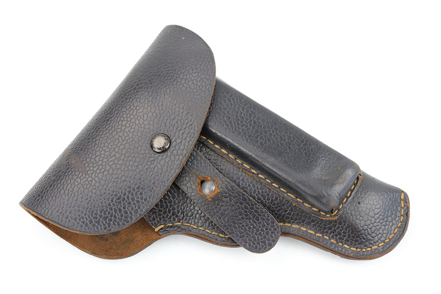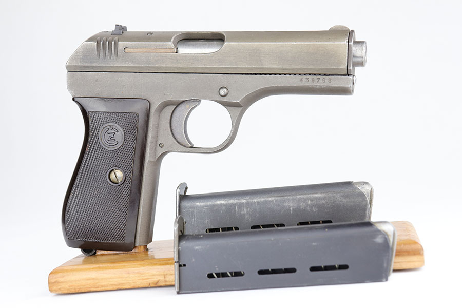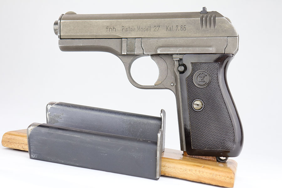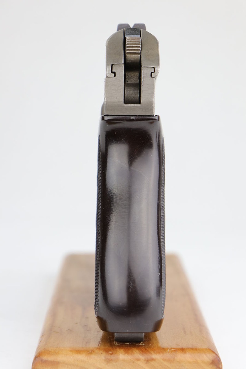 4/22/20 – This is a complete Nazi CZ 27 rig in minty original condition. It’s an end-of-war pistol without phosphate finish that shows only a tiny bit of thinning from being in the holster. All matching numbers with crisp waffenamt on frame. Minty bore and grip, which is one of the few with no corner chips. Rig includes a total of two original magazines. It’s completed by a terrific pebble grain holster that is maker marked and 1943 dated with sharp waffen proof.