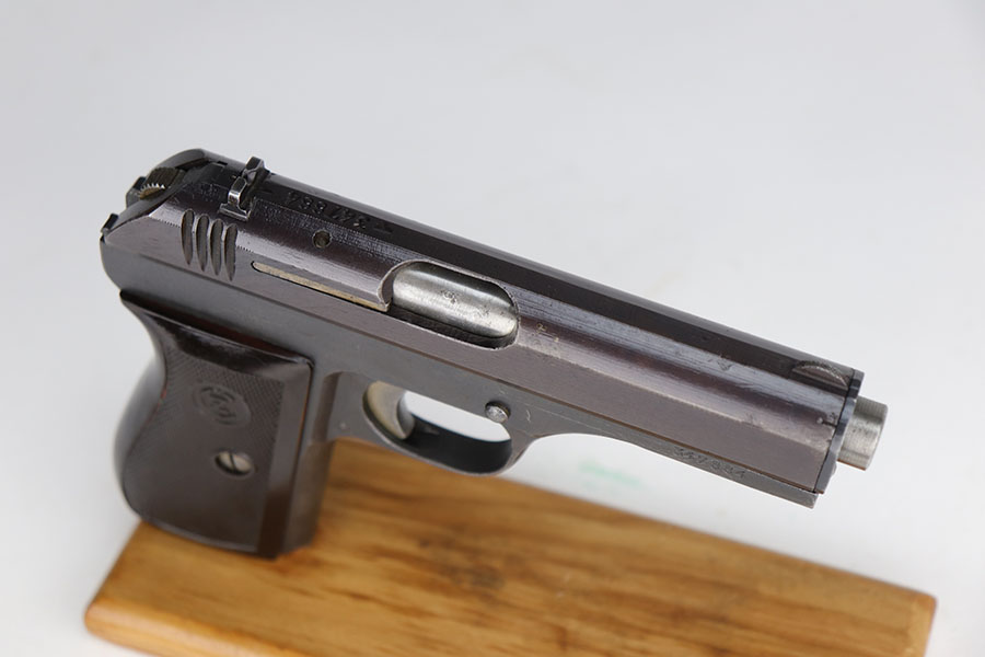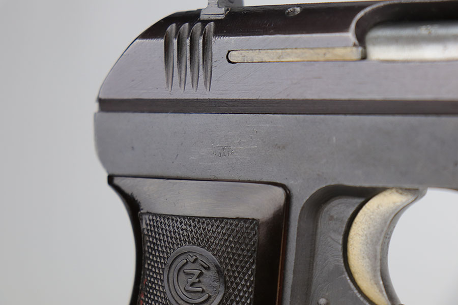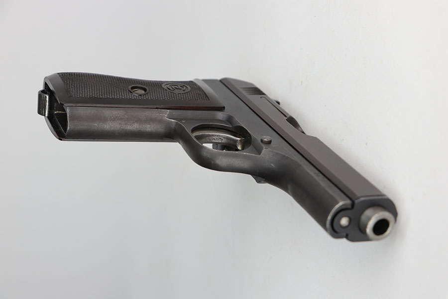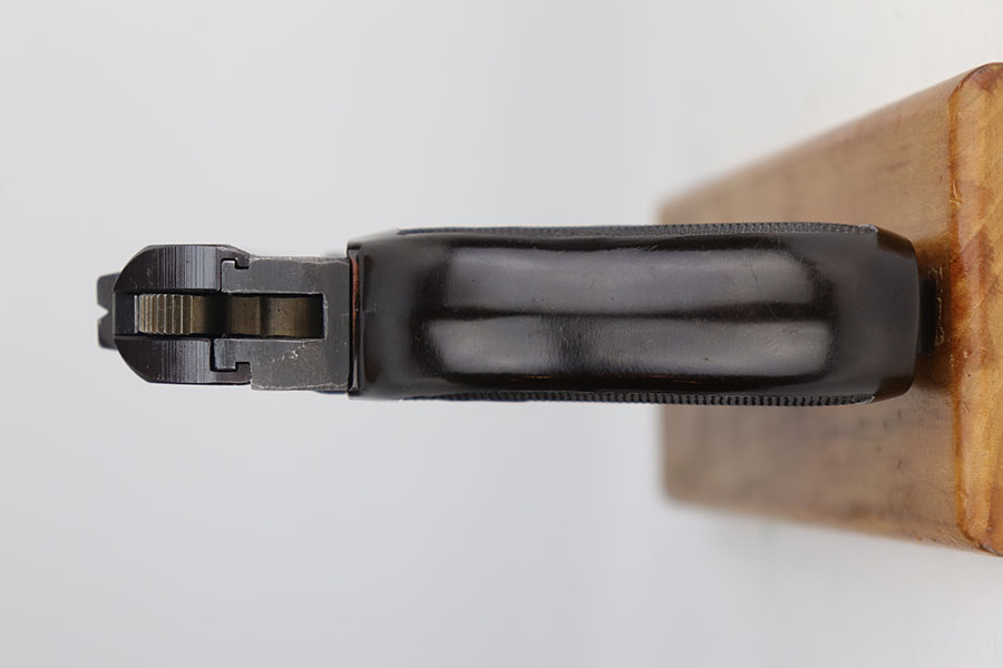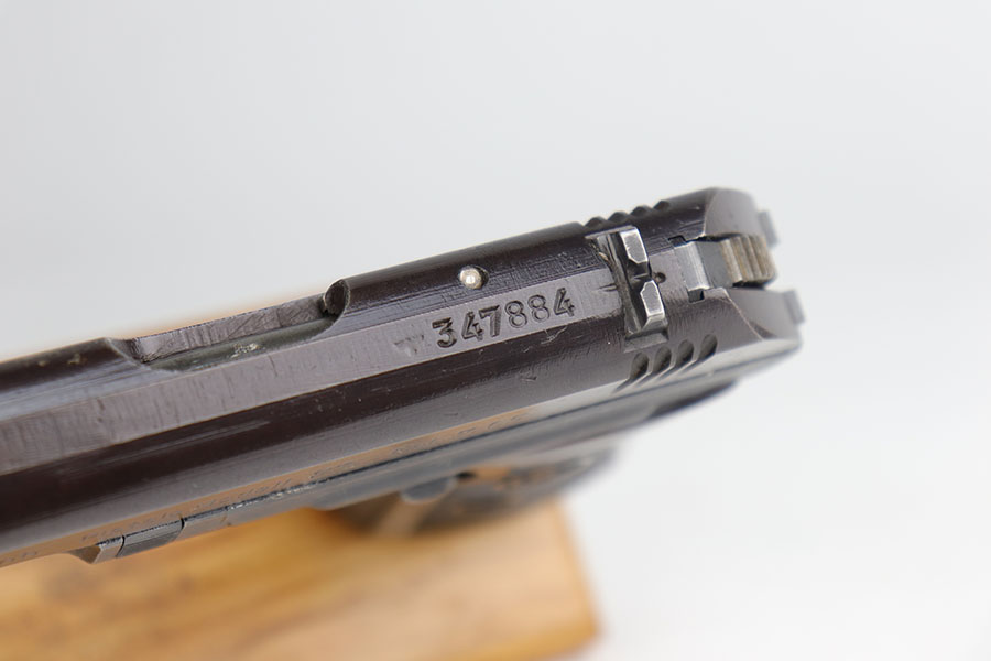 11/10/20 – This is a stunning example of a CZ 27 issued to the Nazi military around 1943. This one is all matching and has the proper “Waffen 76” Nazi military acceptance proof. It is in minty condition, retaining about 98% of its finish. There is just very minor wear on the front strap, and a small area of freckling on the right side of the slide. The bore is mint. It comes with a minty grip – no cracks or chips. Original magazine.