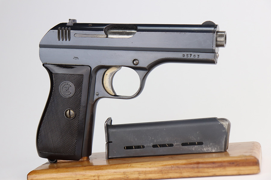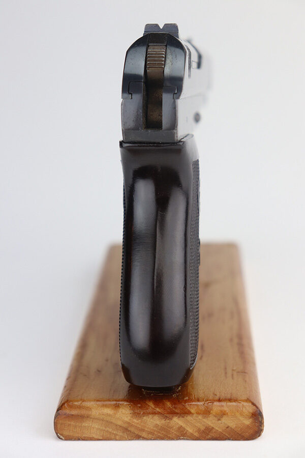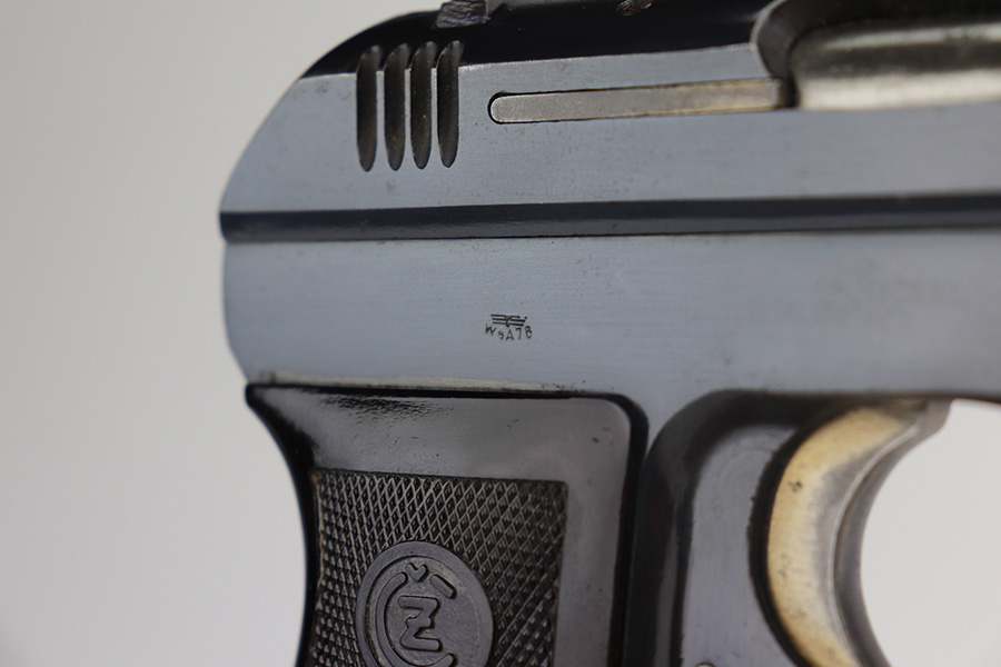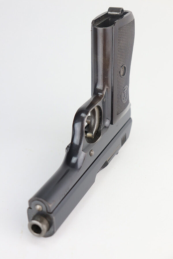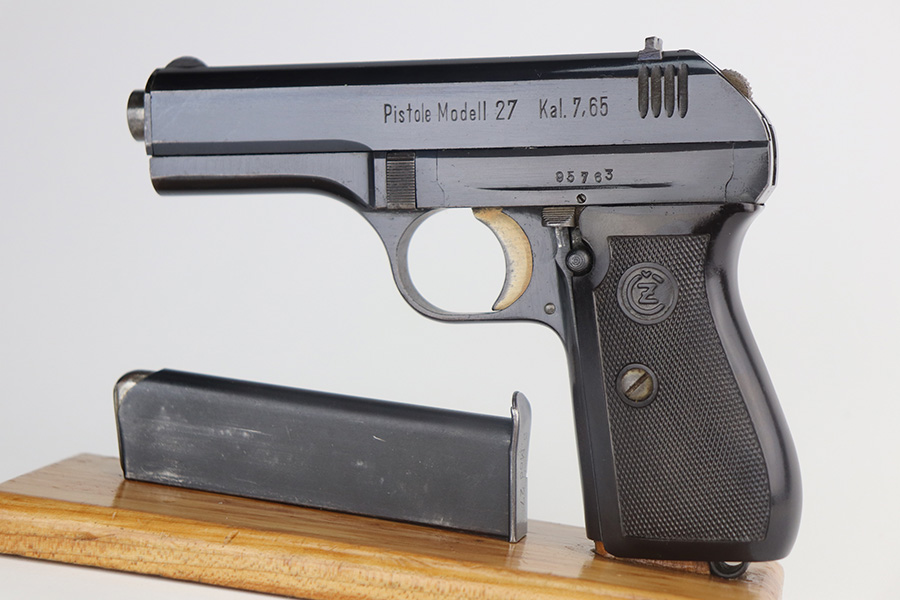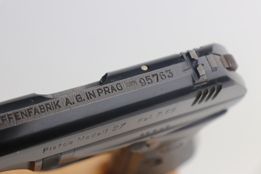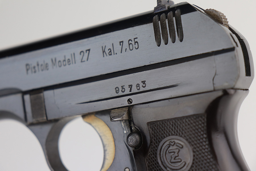 5/25/21 – This is a minty example of a CZ Model 27 issued to the Nazi military during WW2. The gun is all matching and has the proper military proof. It has retained more than 98% of its original high polish bluing. There is just a hint of wear on the high edges of the slide. Very minor thinning and spotty oxidation on the front strap. Very nice grip with very small chips in the corners. Comes with a period-correct magazine. The bore is near-mint.