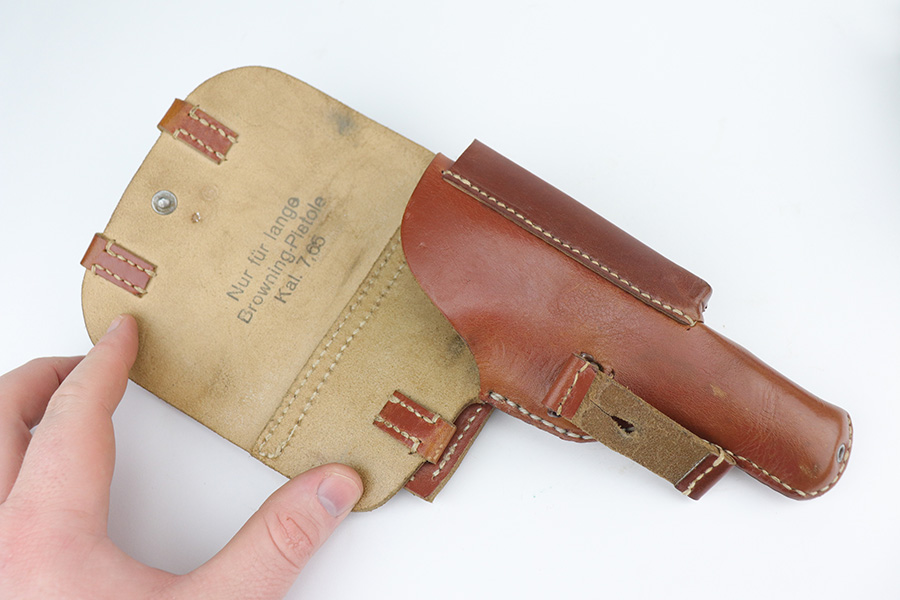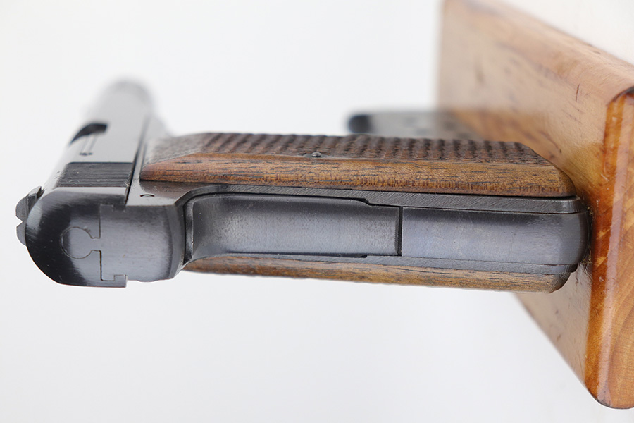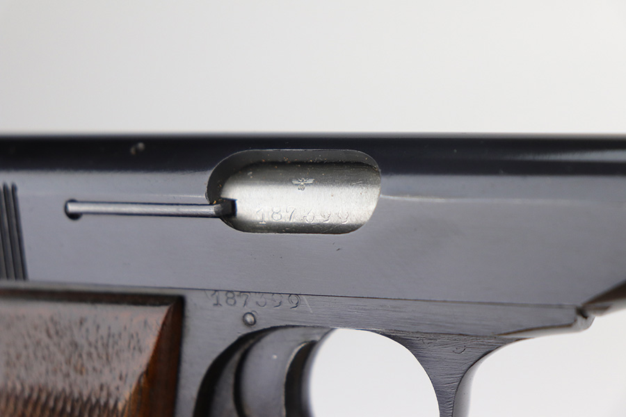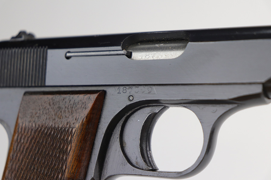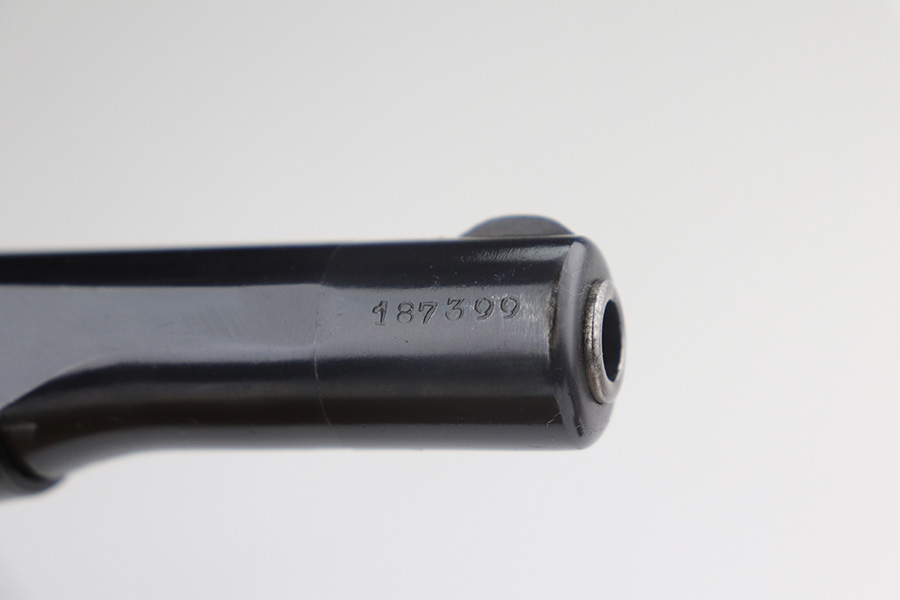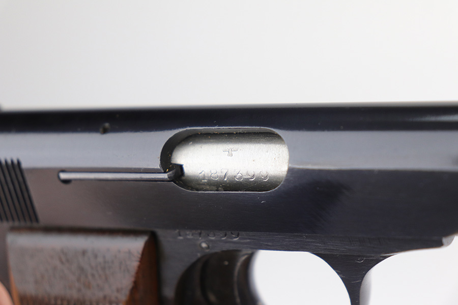 11/30/21 – This is a near-mint and complete Nazi FN Model 1922 rig with holster and spare magazine. The pistol is matching and original with 98-99% of the blue remaining, just minor muzzle wear from the holster. Mint bore and excellent grips. Two period original magazines. The rig is complete with a mint holster with sharp proofs/inkstamp.