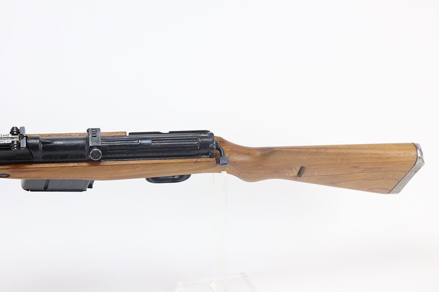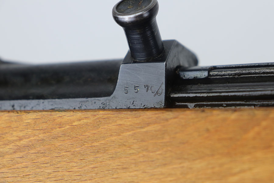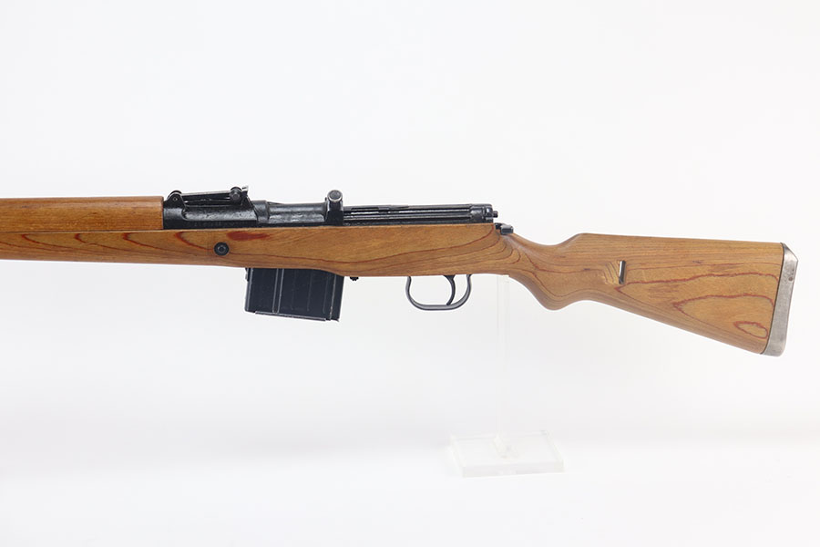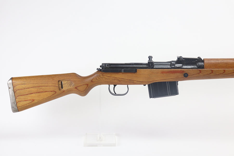 5/13/21 – This is a minty example of a scarce Nazi G.43 rifle as produced in 1944 at the Berlin Lubecker factory. Probably the nicest example we’ve offered, has just a hint of wear on the trigger guard. Matching numbers throughout with a mint bore. Stock is also matching and has clear waffenamts in several areas. The stock is in fantastic condition aside from a repaired crack in the handguard. Includes cleaning rod and sight hood. The magazine is a later reproduction as best we can tell. The previous owner had stored this gun for 50 years so some grease remains inside/outside that will need to be cleaned up.