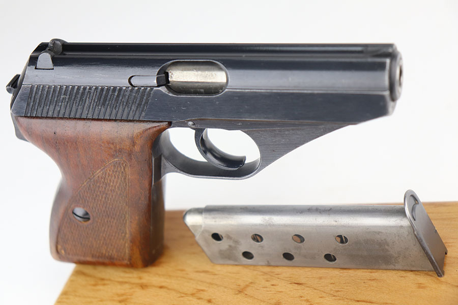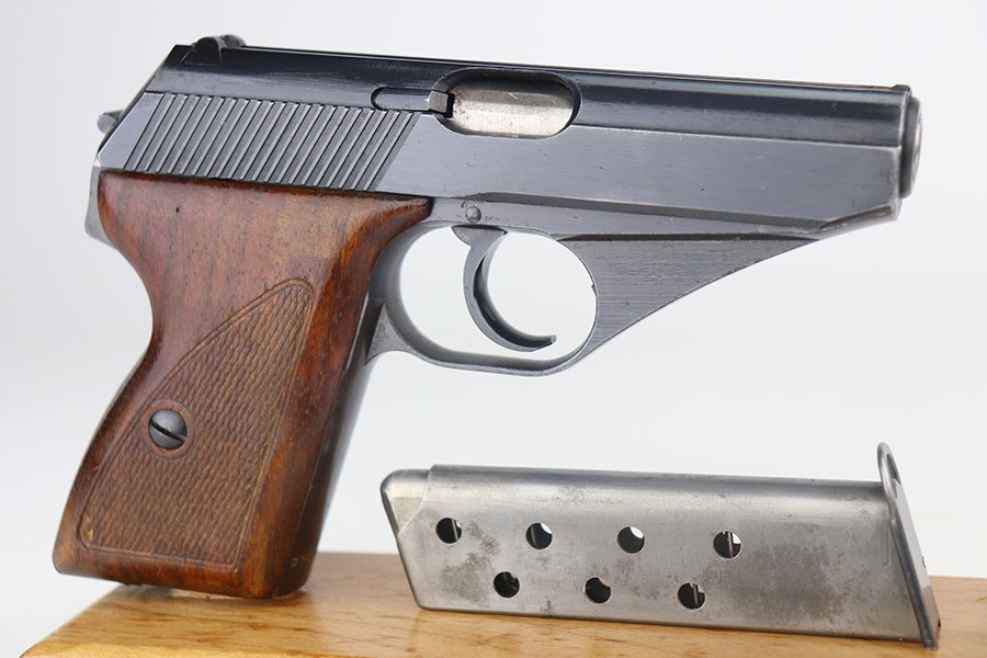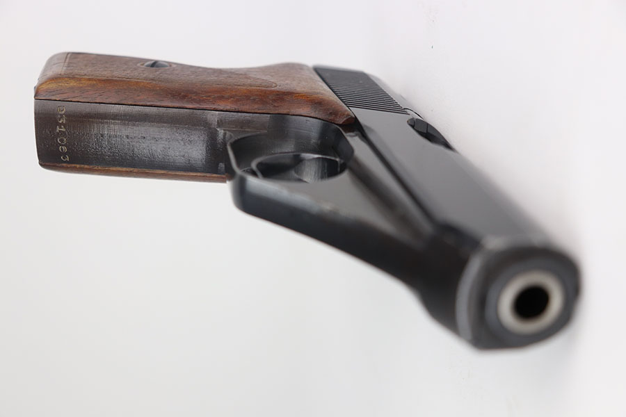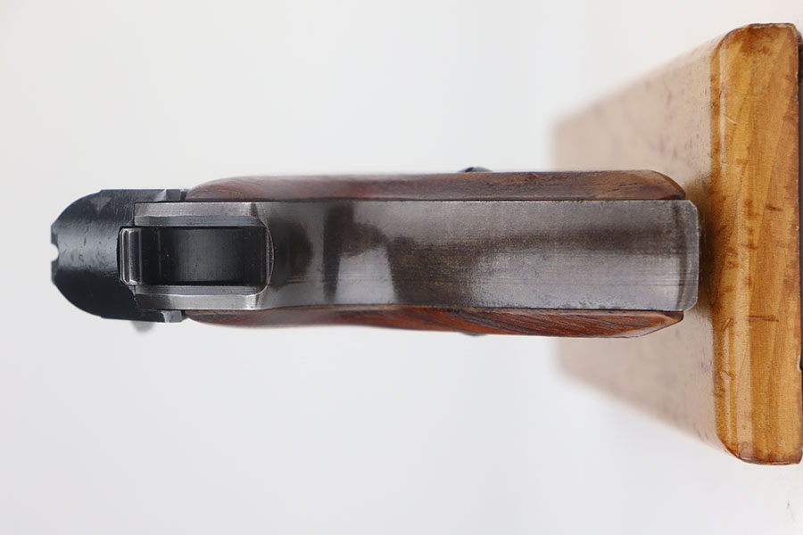 3/3/23 – This is a minty example of Mauser HSC issued to the Nazi military in 1944. The gun is matching and has the proper “waffen 135” military proof. It has retained about 98% of its original bluing. There is just a hint of wear on the straps and around the muzzle. A little bit of minor patina on the straps. Comes with excellent wood grips and a proper magazine. The bore is mint.