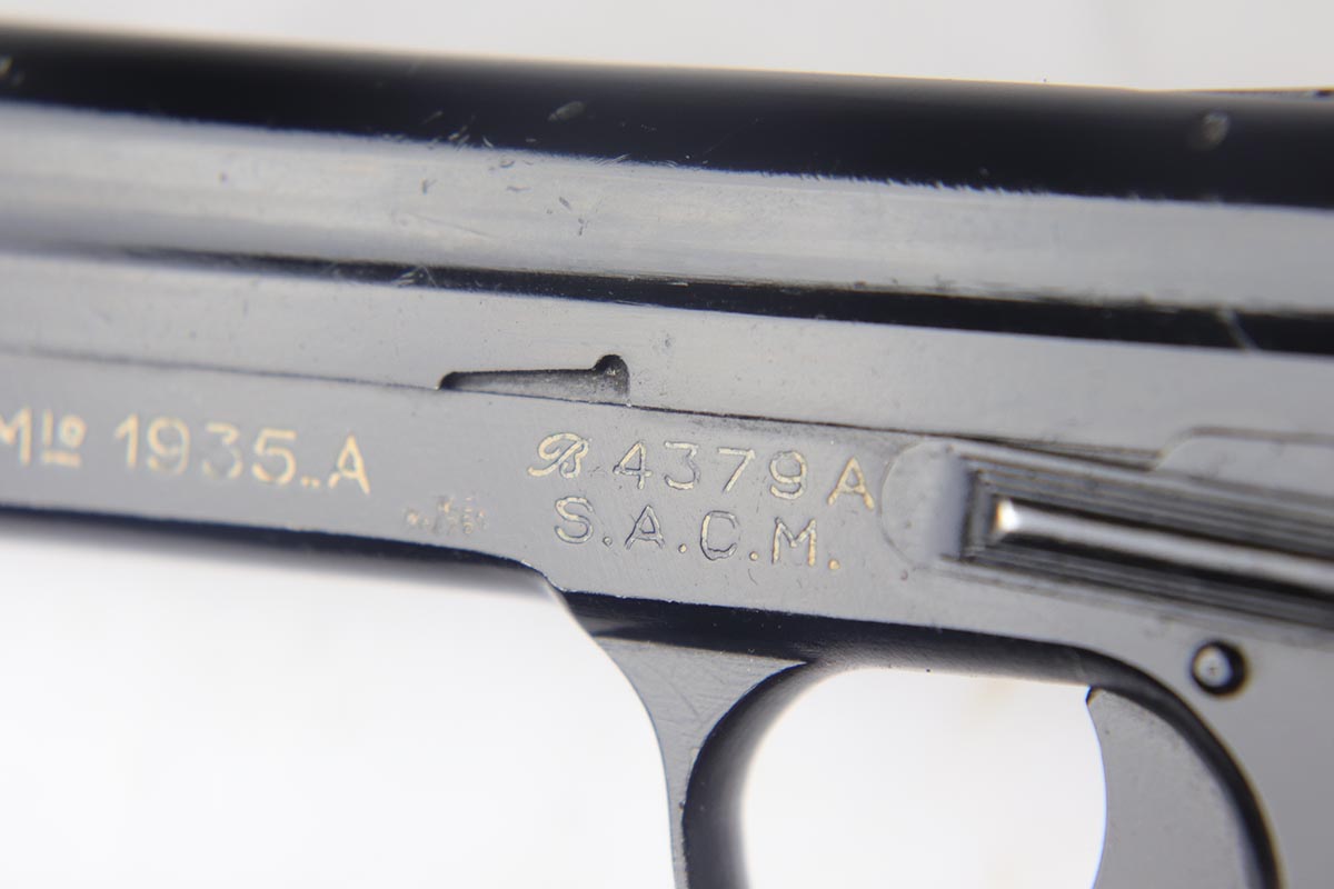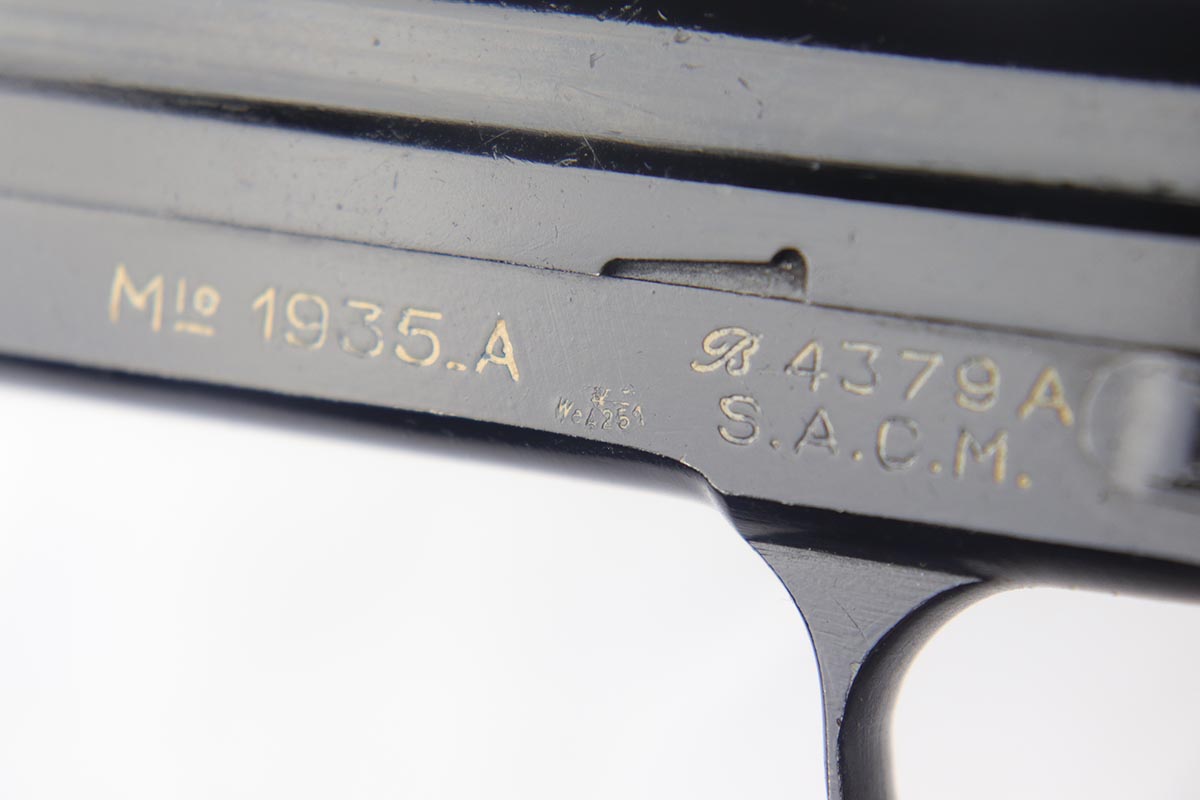 Manufactured by SACM (Societe Alsacienne Construction Mecanique) in Cholet, France. It is Nazi-marked E/WaA251 on the left side of the slide, making this the more common 2nd variation model of these pistols. Overall, they remain fairly scarce for German Army pistols of that time, with only about ~24,000 produced. The pistol has an excellent bore and would be difficult to upgrade, regardless of whose collection it were to come from.