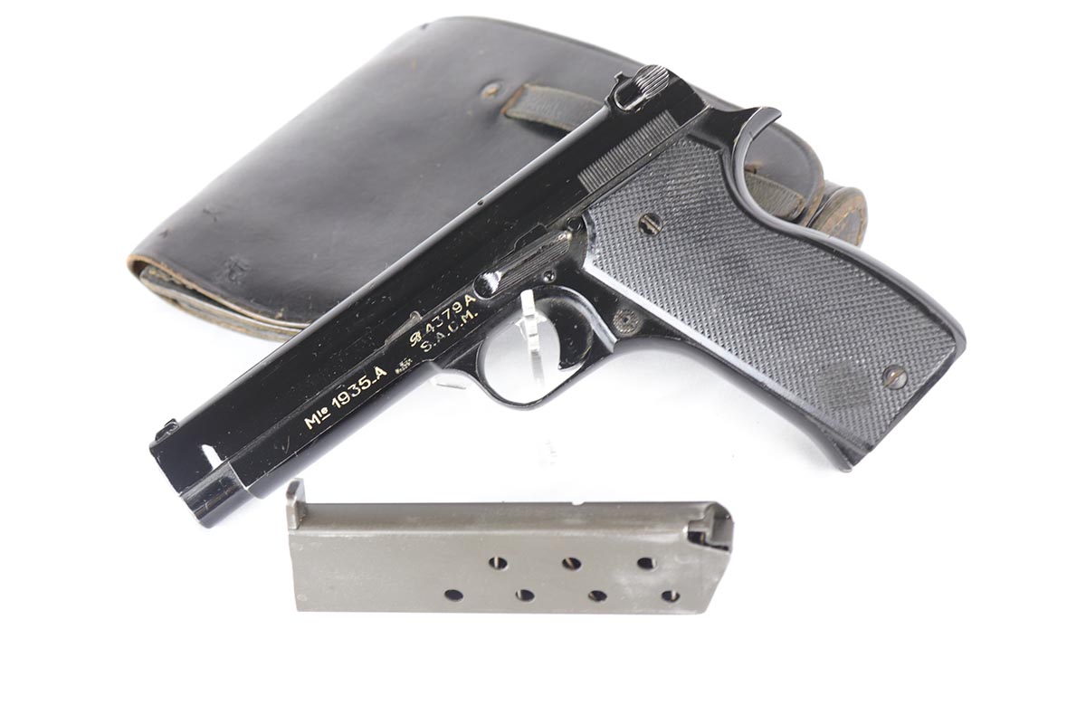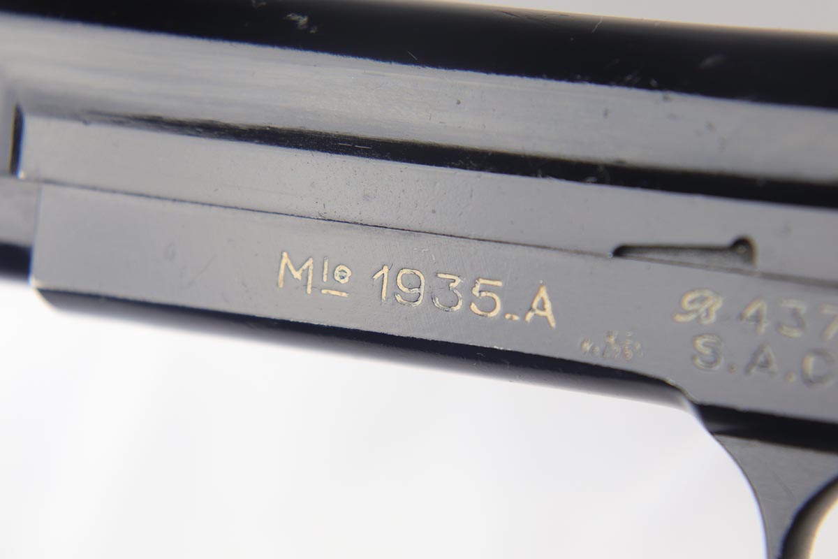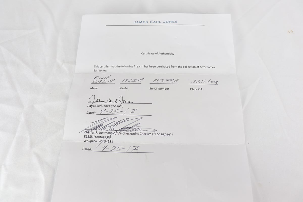 8/27/18 – This is a near-mint Nazi S.A.C.M. M1935A that comes out the collection of James Earl Jones. The pistol retains 99% original finish with only minor scuff marks but no notable finish loss. It comes with a correct, original holster and a certificate of authenticity that was signed and dated by Mr. Jones.