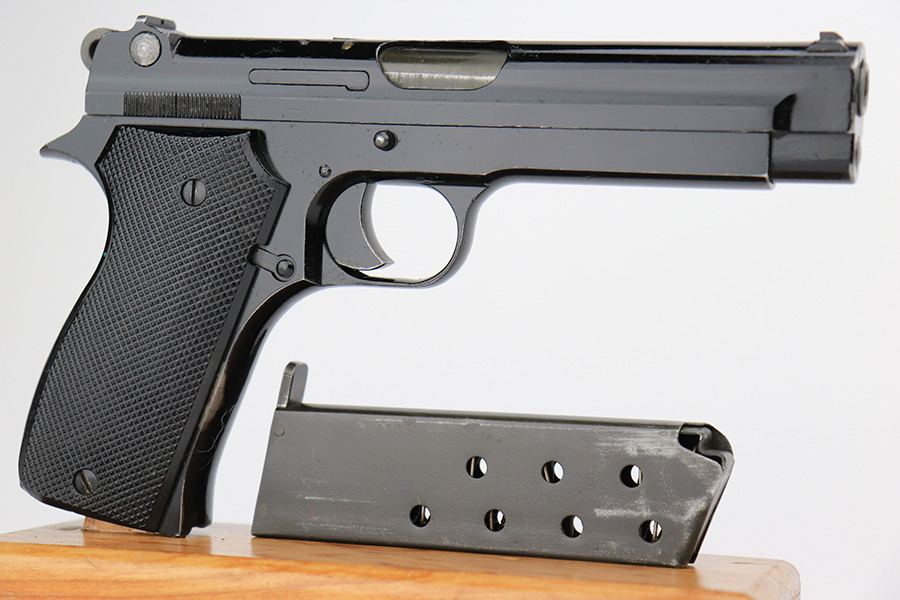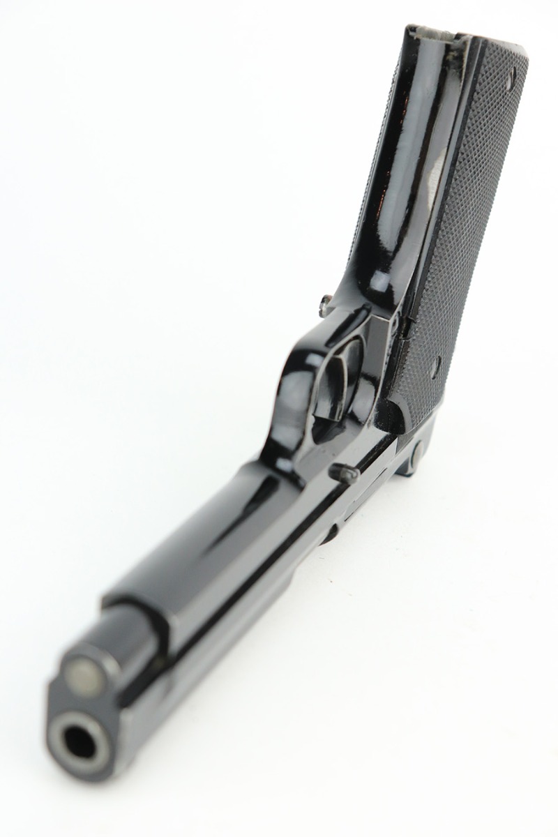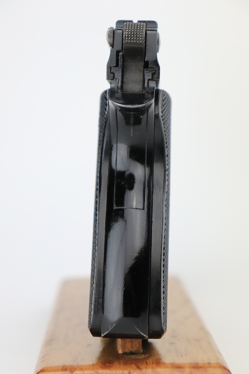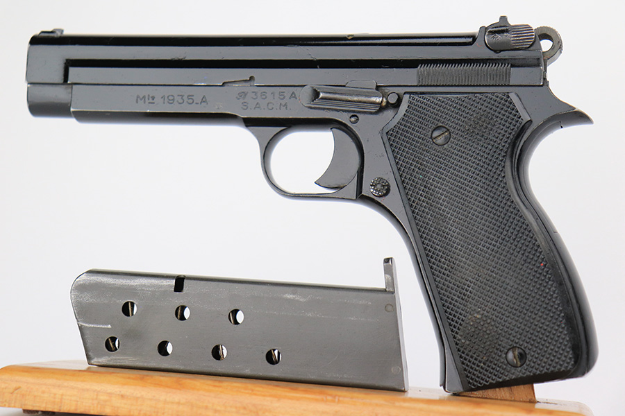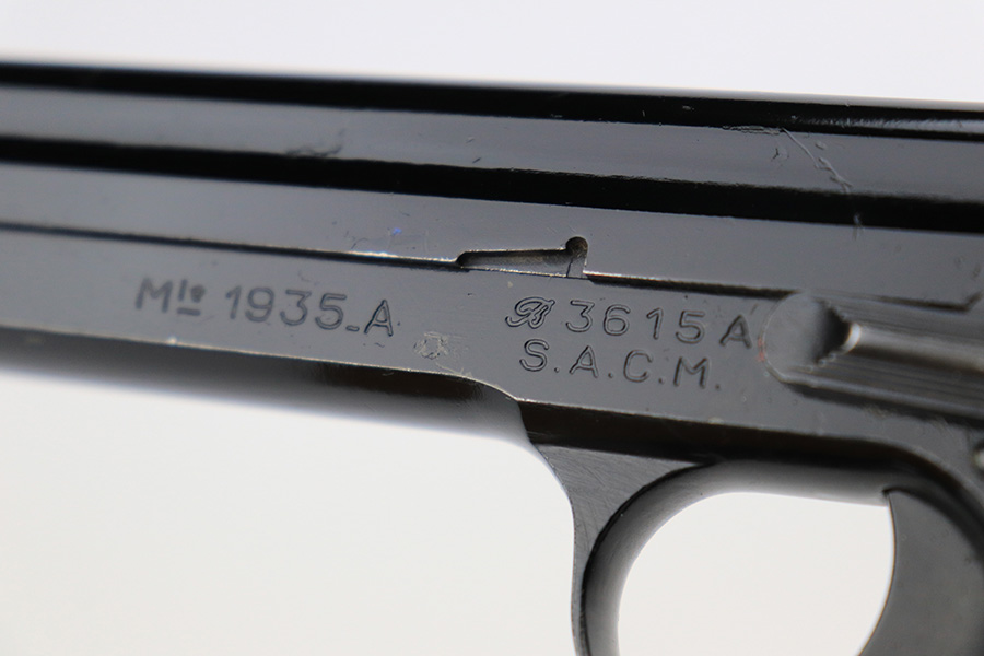 6/5/23 – This is a near-mint example of a French SACM Model 1935A issued to the Nazi military during WW2. It is all matching with the proper “Waffen 251” military acceptance proof. It has retained nearly all of its original black enamel finish with just a few light scratches and tiny chips in the paint here and there. Fitted with excellent period-correct black bakelite grips. Comes with one proper magazine. The bore is like-new.