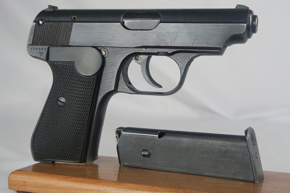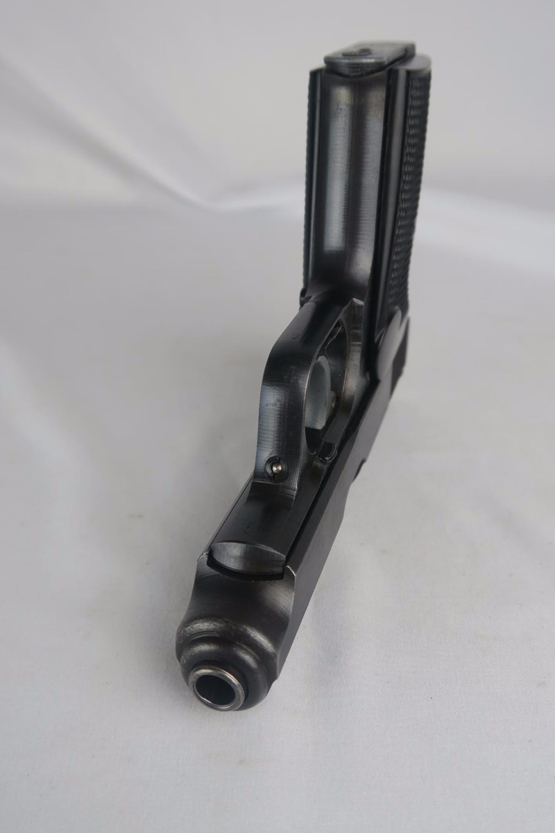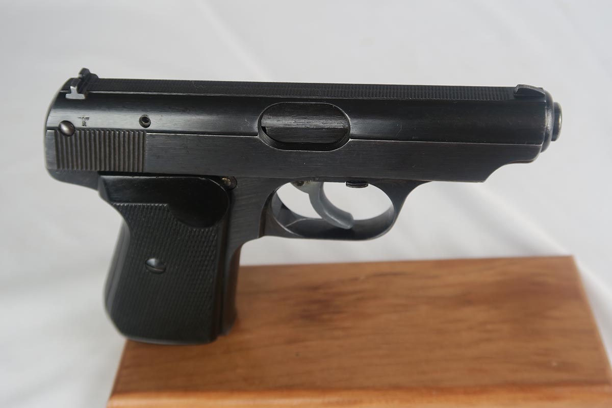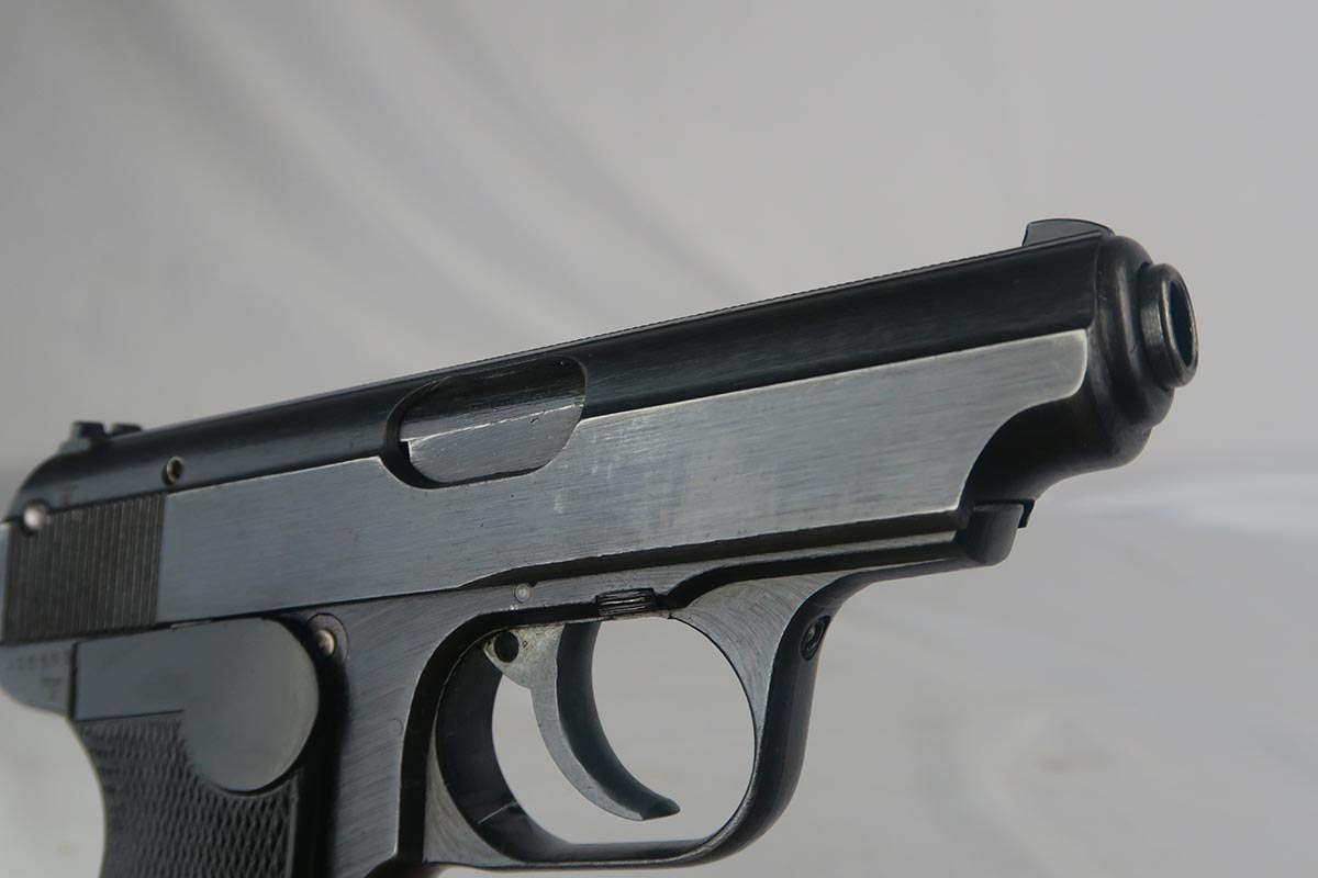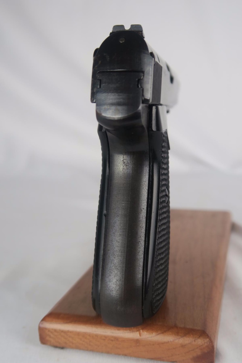 7/26/17 – This is a near-mint Sauer 38h from WW2. It is Nazi issued and waffen proofed (E/77) on the trigger guard. All original and correct, the finish rates at about 99% with minor thinning but a beautiful front strap. Back strap does show some minor patina. Excellent original grips. Minty bore. Double ‘S’ mag.