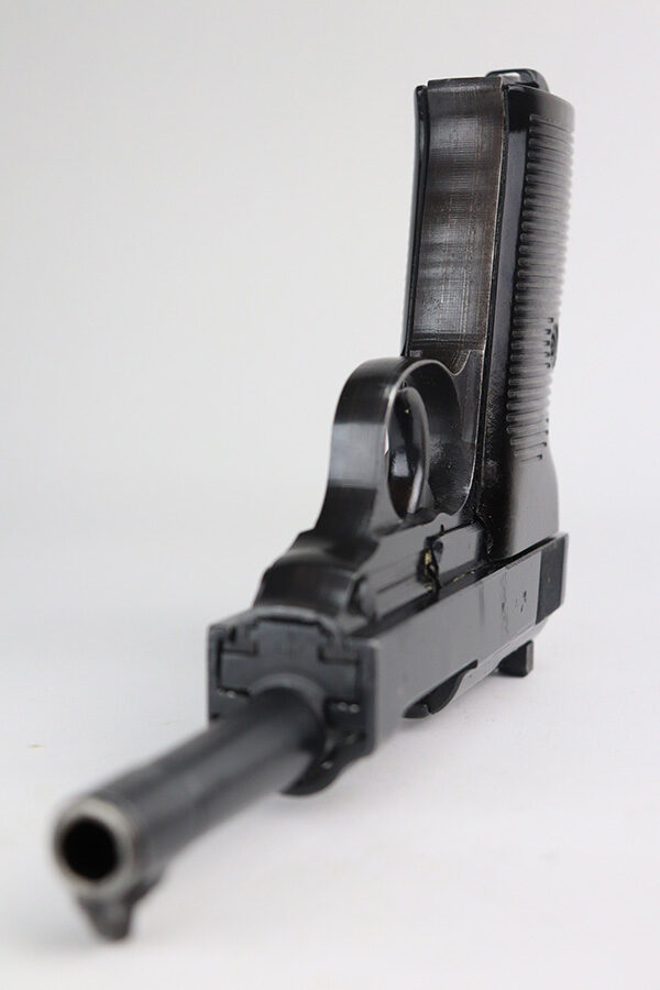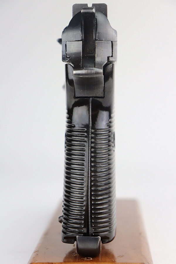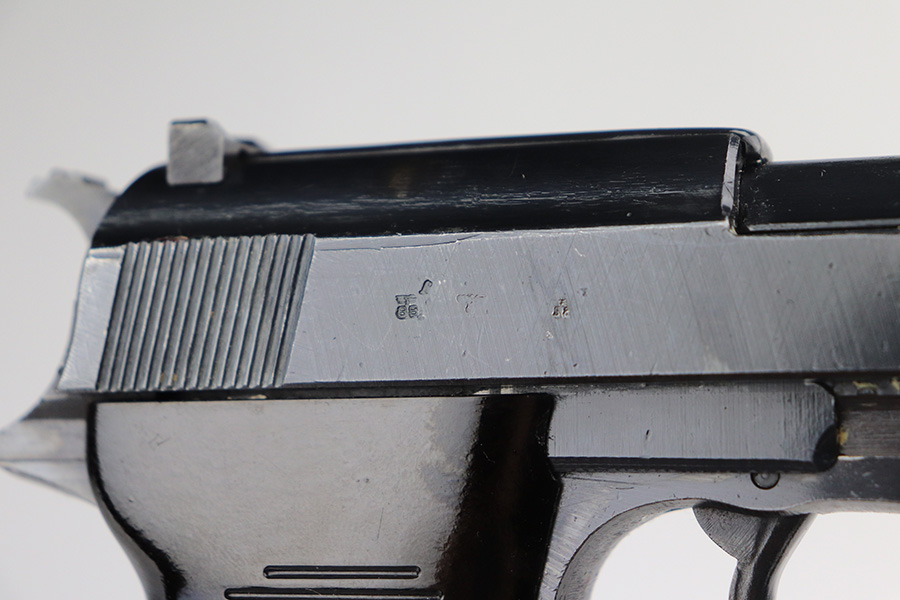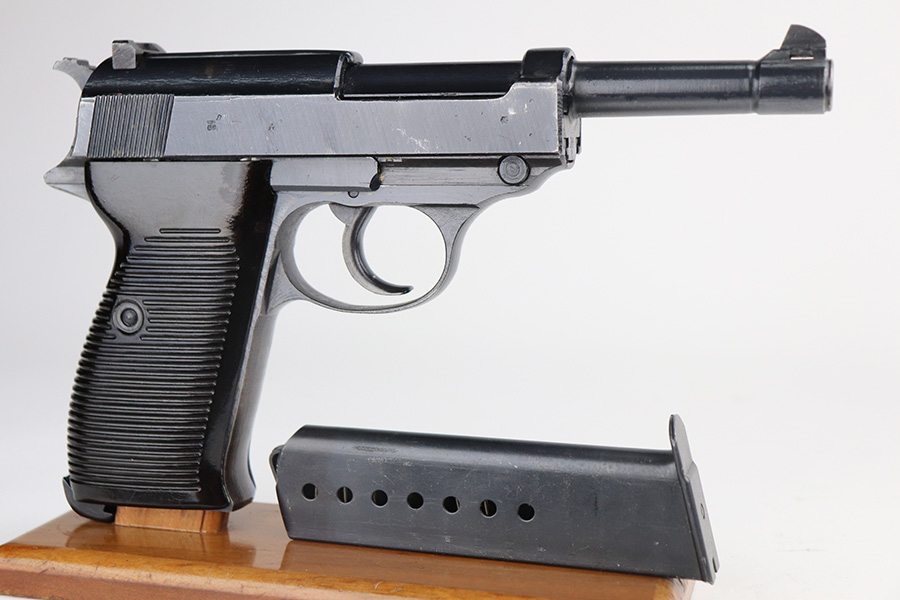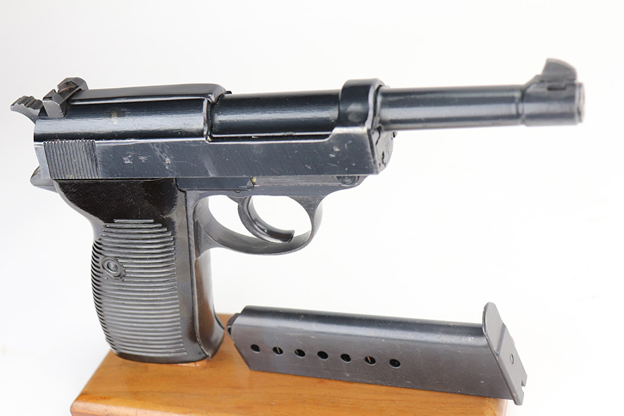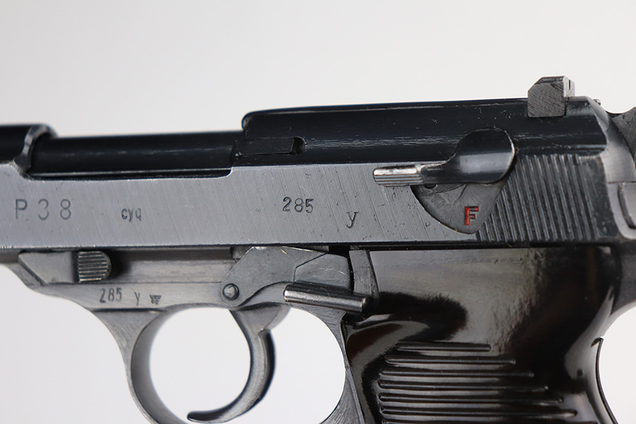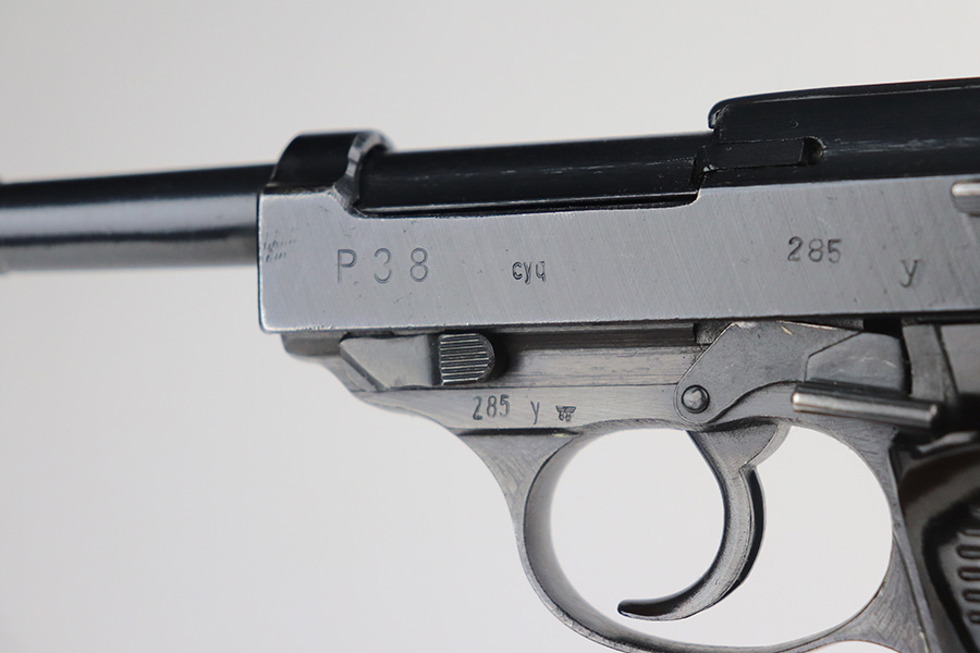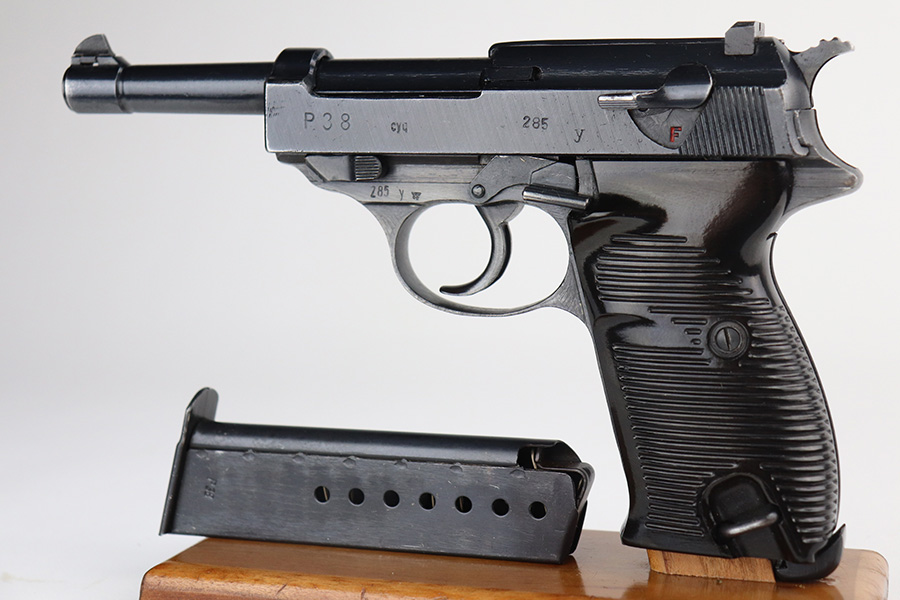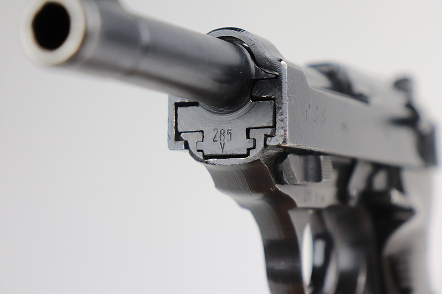 12/22/22 – This is a minty example of a Spreewerk P.38 issued to the Nazi military in December of 1944. The gun is all matching and has the proper “Eagle 88” proofs. The gun has retained about 97-98% of its finish. There are hints of wear on the front edges of the slide and around the muzzle. Very minor thinning and patina on the front strap. Some casting flaws here and there – typical for these late war guns. Comes with excellent grips and a period-correct WaA706 mag. Mint bore. De-cocker is functional.