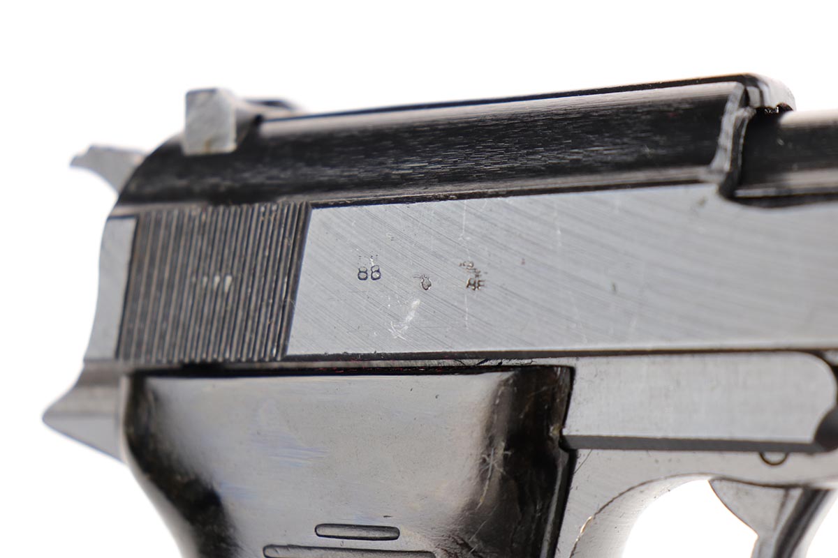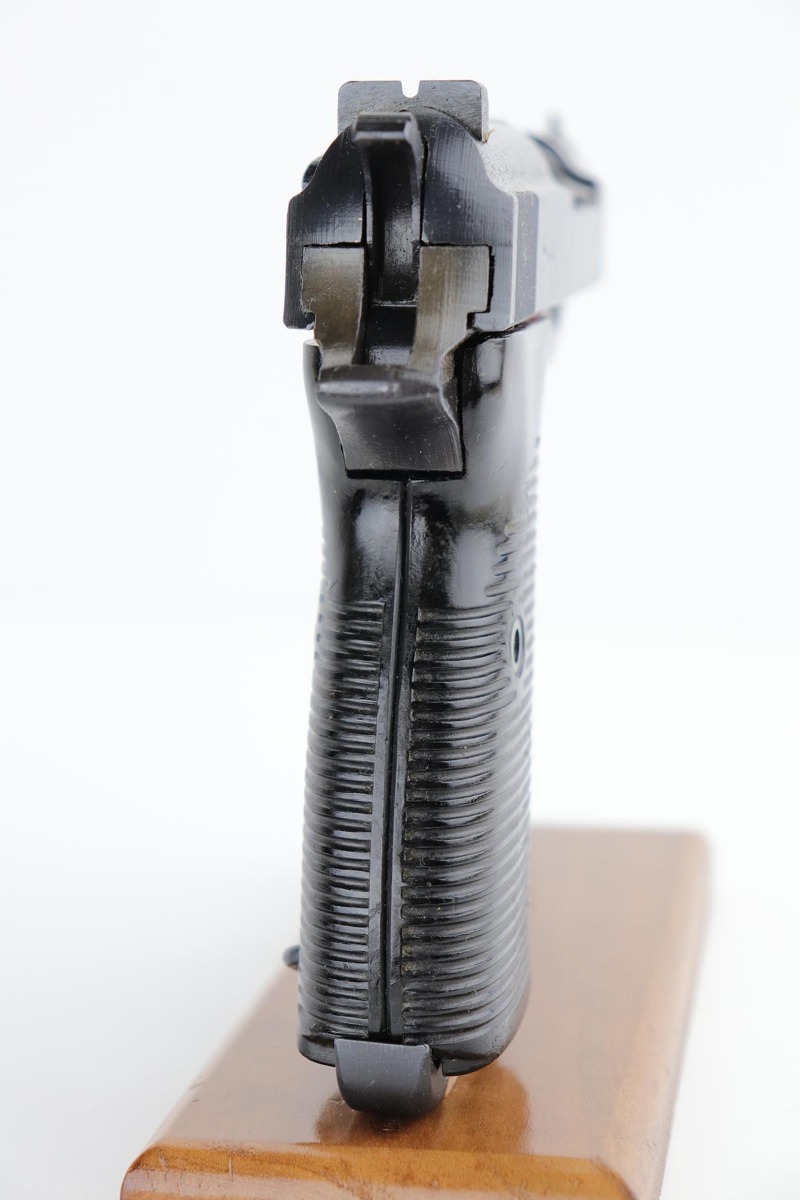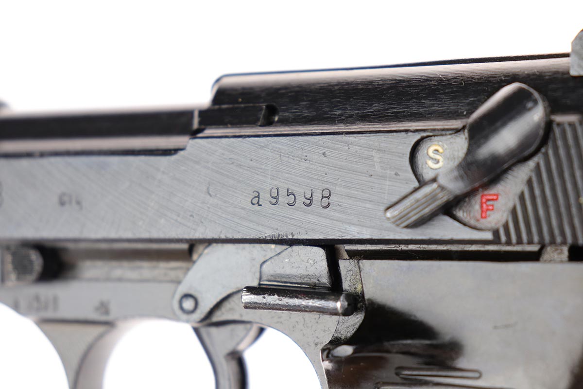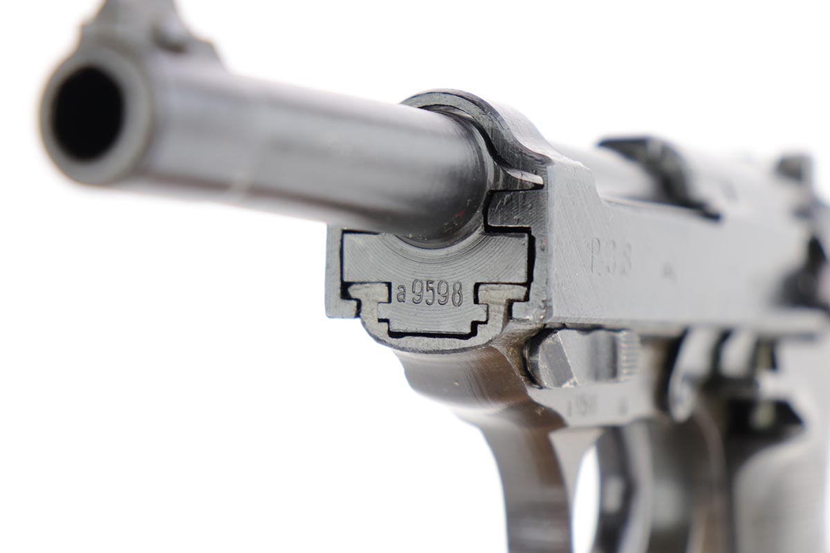 2/12/20 – This is a near-mint Spreewerk P.38 that was manufactured in March of 1945. The original blue rates at 99+% with a few minor scuffs on the left side of the slide, and one more on the left side of the barrel, but there’s virtually zero finish loss. Excellent grips and mint bore.