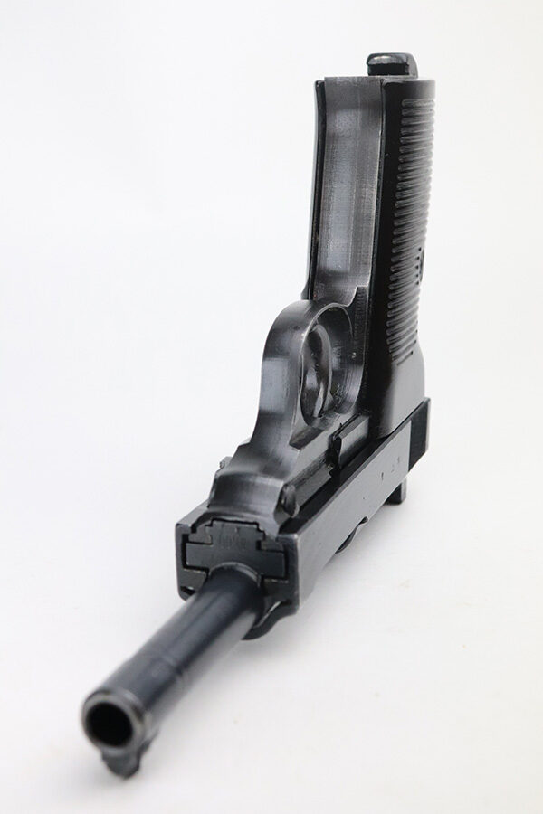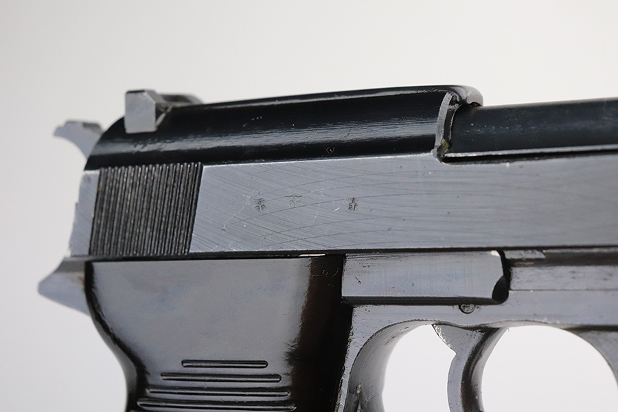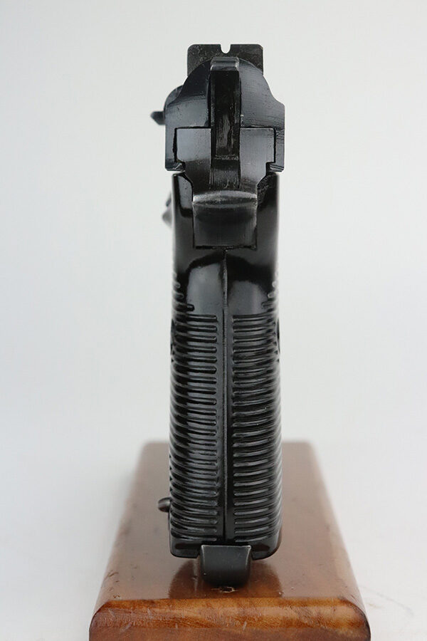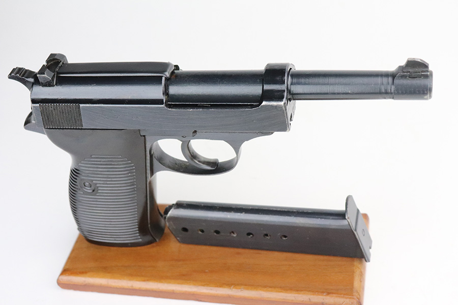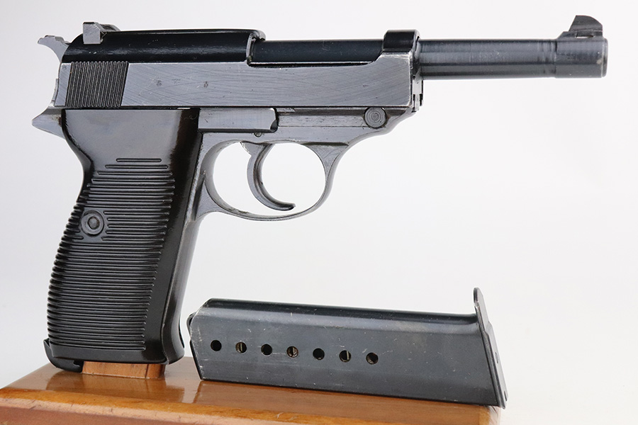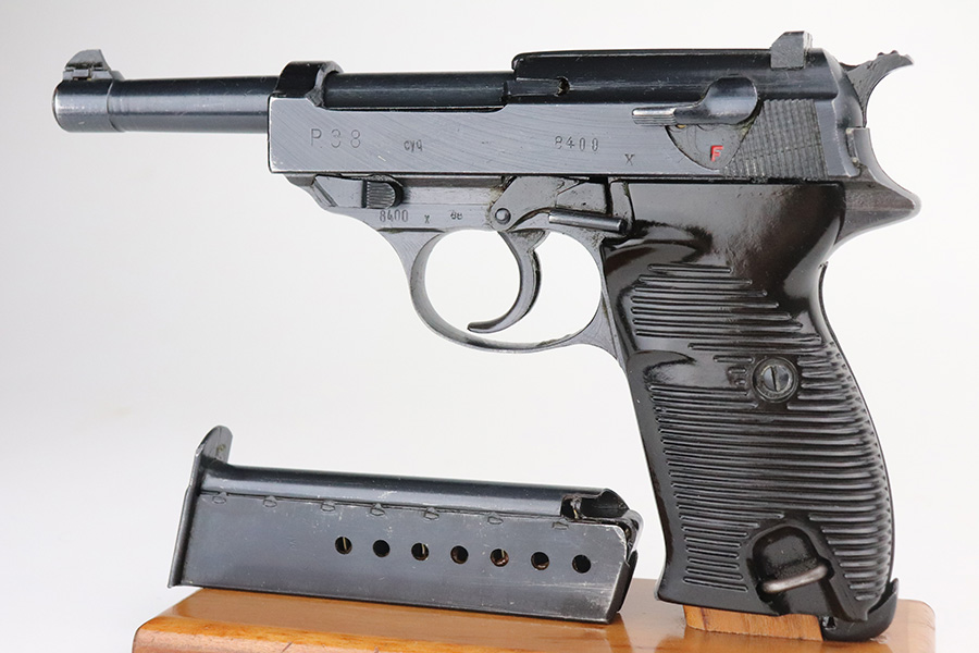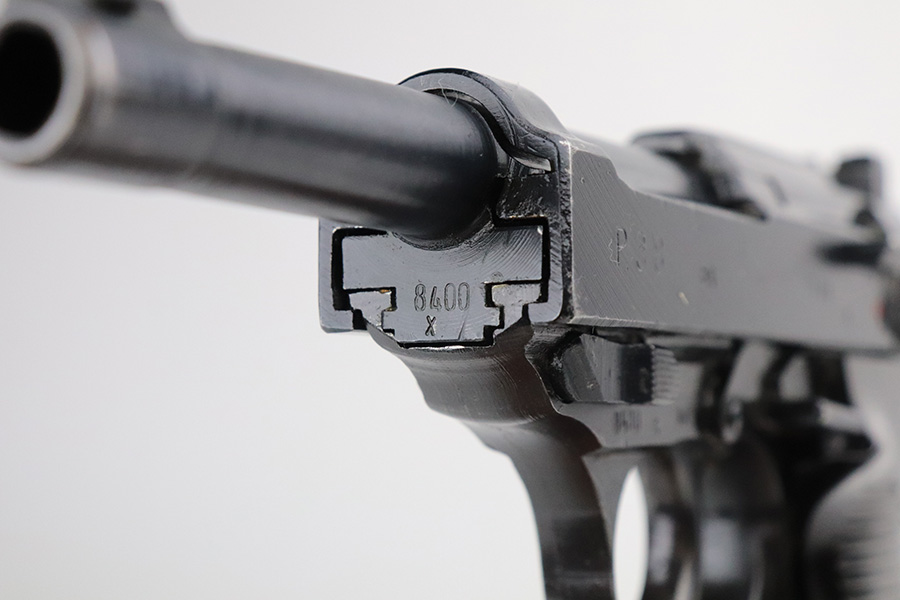 12/22/22 – This is a near-mint example of a Spreewerk P.38 issued to the Nazi military in December of 1944. It is all matching and has the proper “Eagle 88” military proofs. Cog hammer. It has retained about 98% of its finish. There are just hints of wear around the muzzle, on the front edges of the slide, and very minor thinning on the front strap. Comes with excellent grips and a period-correct magazine. The bore is shiny with very strong rifling – unfortunately, there is very minor pitting in the grooves. De-cocker is functional.