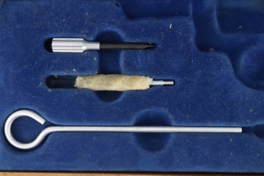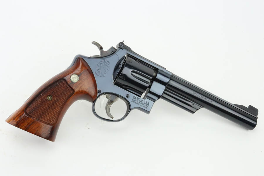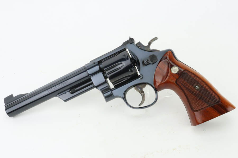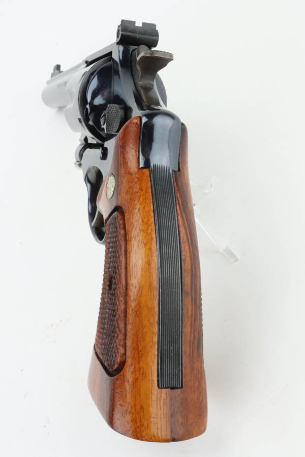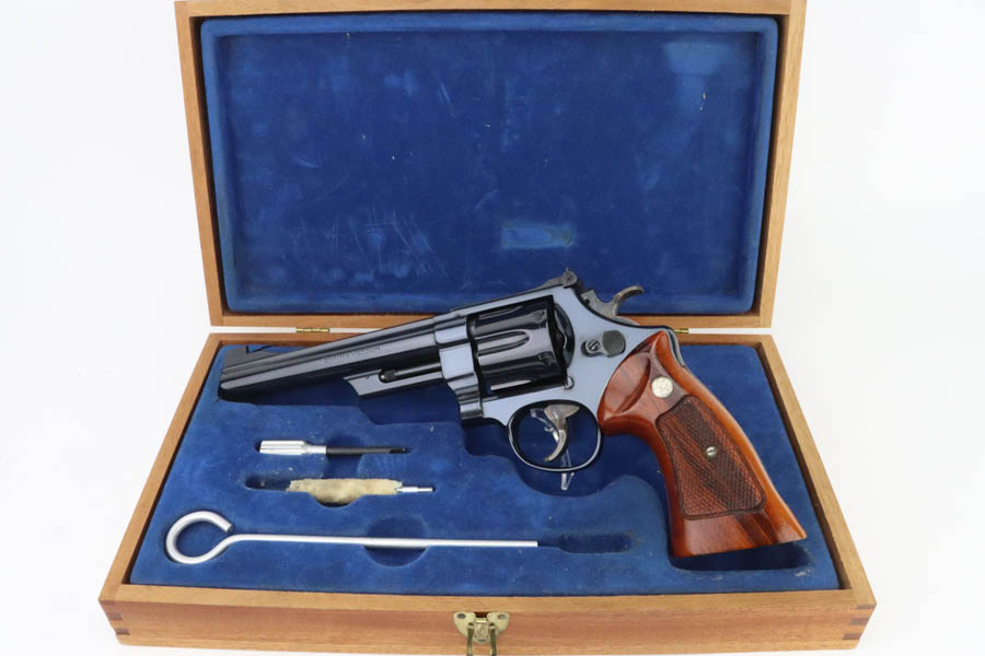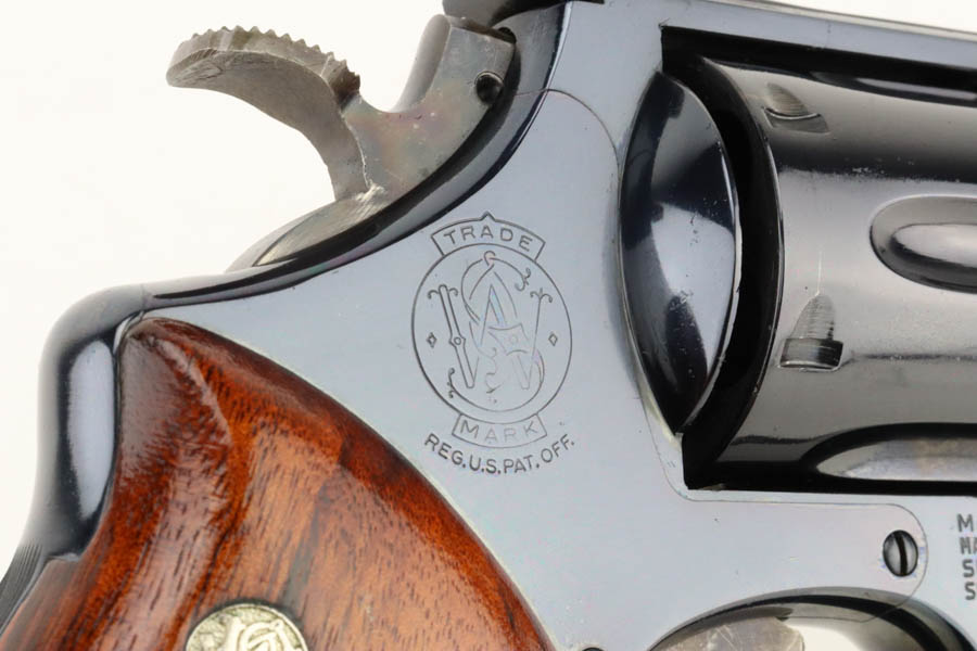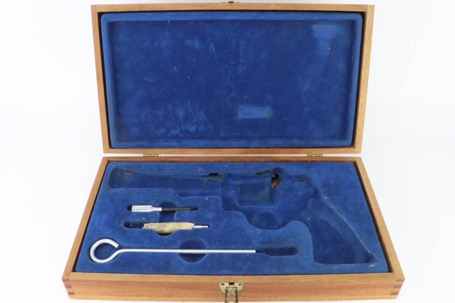 06/19/2024 – For sale is a fantastic S&W Model 25-2 Target Revolver chambered in 45 ACP. This revolver retains an excellent high polished finish with barely any wear. Only sign of wear is a thin ring from the cylinder stop. The trigger and hammer have a nice case hardened finish. The bore is very bright with great rifling. The wood grips are excellent and free of cracks. The handgun comes with its original wood case & outer sleeve with accessories and manual. The inner lining of the wood case is cracked and should be handled with care.