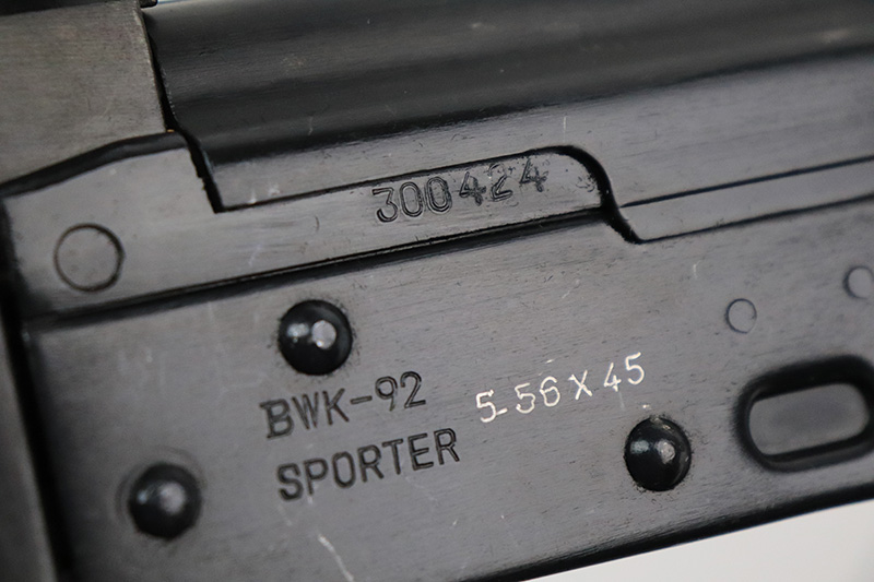 10/5/22 – This is a near-mint example of a Chinese Norinco BWK-92 Sporter AK-style rifle. It was manufactured in the 1990’s and is chambered in 5.56x45mm. It is all matching but has an import mark on the left side of the receiver. The gun itself is in minty condition with very little sign of wear. There are just some very light scratches and scuffs here and there on the receiver. Comes with one 30-rd magazine and a green canvas sling. The bore is like-new.