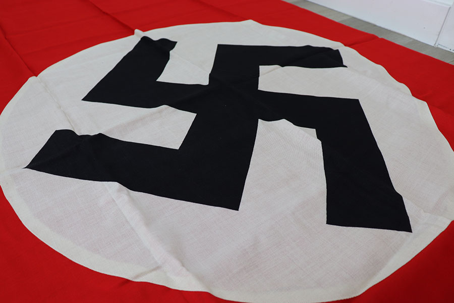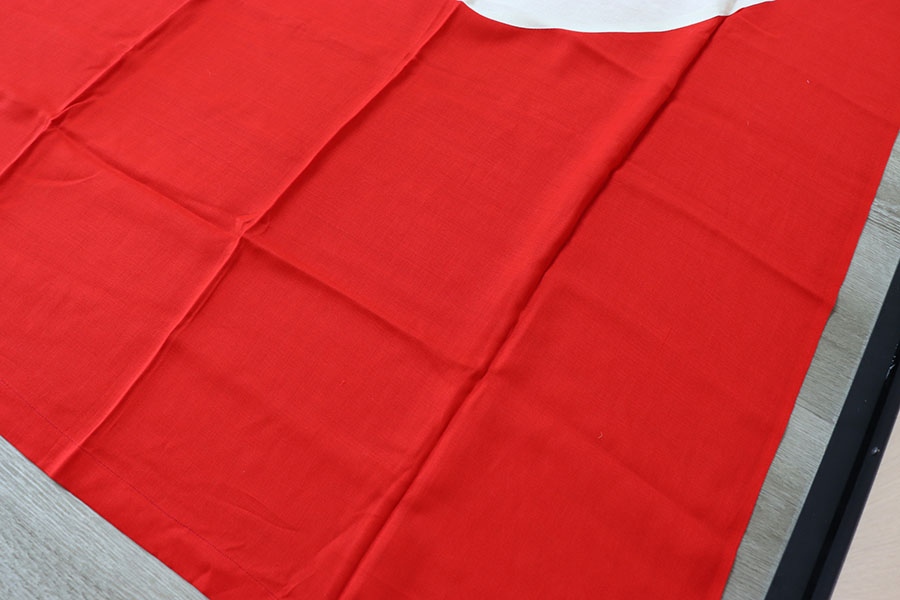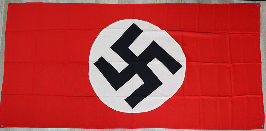 3/6/24 – This is an original WW2 Panzer tank or armored vehicle identification flag. The flag is in minty overall condition with exceptional cotton material and stitching intact throughout. The flag features four grommets and multi-piece construction with the Nazi logo on white background stitched to the red base. The flag is one-sided as these were attached to the top of a Panzer tank facing skyward, so friendly aircraft wouldn’t attack by accident. The color is excellent throughout, with no signs of stains or holes throughout. The flag measures out to be approximately 75″ x 37.”