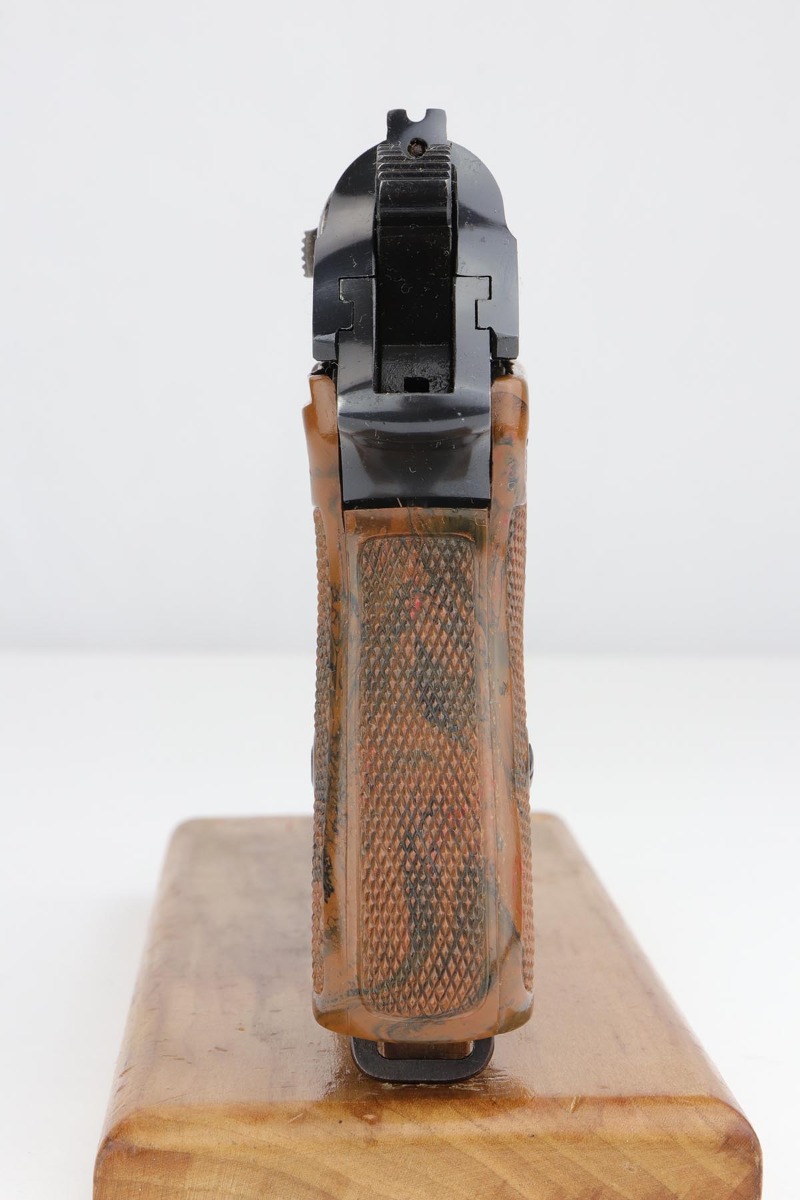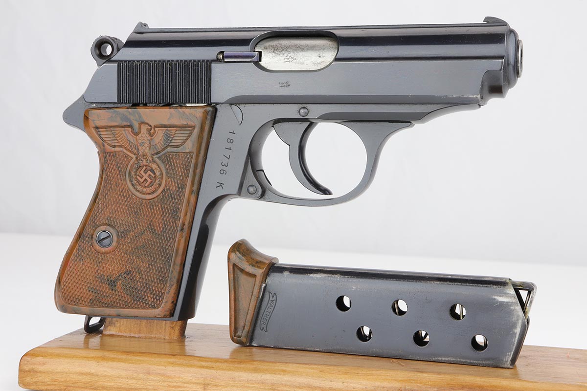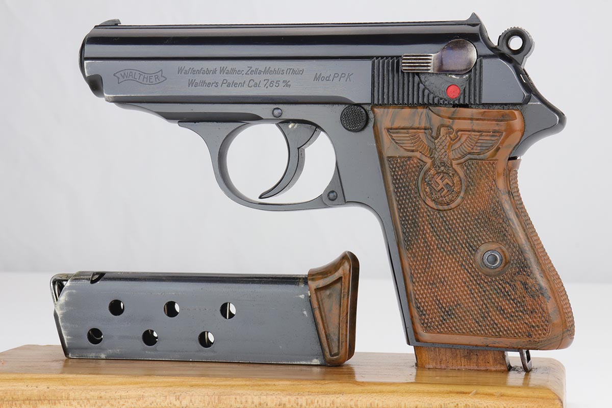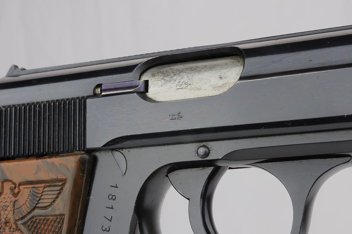 9/17/19 – This is an exquisite and rare Party Leader Walther PPK. The gun is all original finish and near-mint, with just a minor hint of holster wear on front edges of the slide. The serial dates it to 1939 and is in the correct range for the issuance of the Party Leader “Honor” Grip. The grip is excellent as well with no visible cracks. Nearly all PPK grips from that era will have tiny stress fractures and are to be expected if the grip is real, but this one has avoided those cracks and is guaranteed to be real.