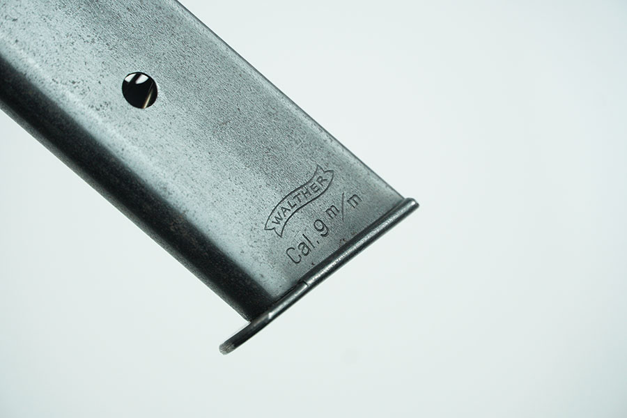 1/16/24 – This is an minty original Walther PPK magazine in 9mm with a rare Persian marking on the spine. This goes with a Persian issued Walther PP (rare variation). Beautiful condition and all original. Strong fully functional spring.