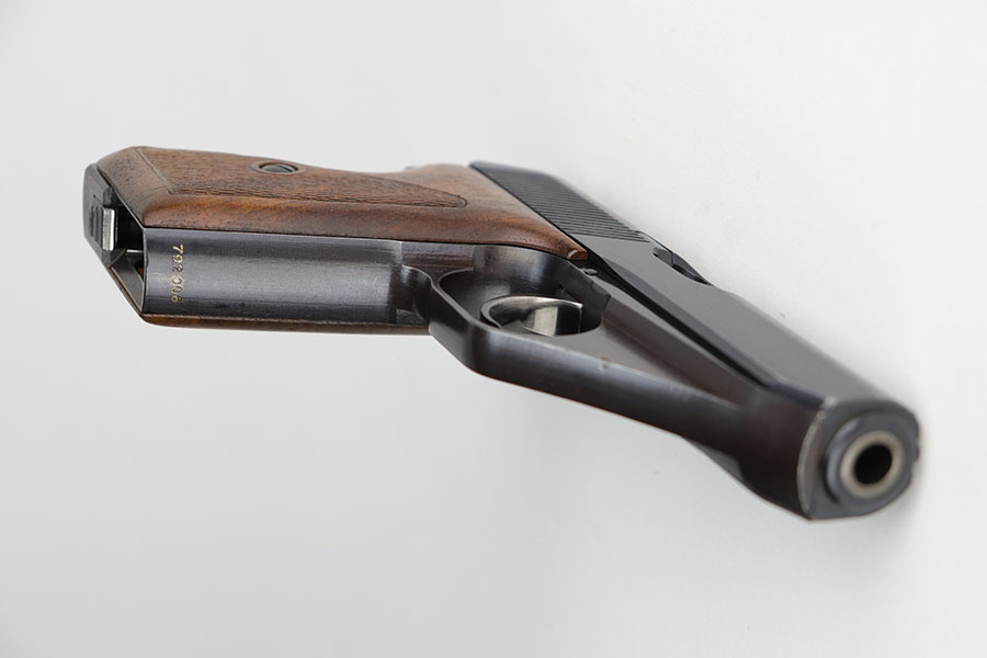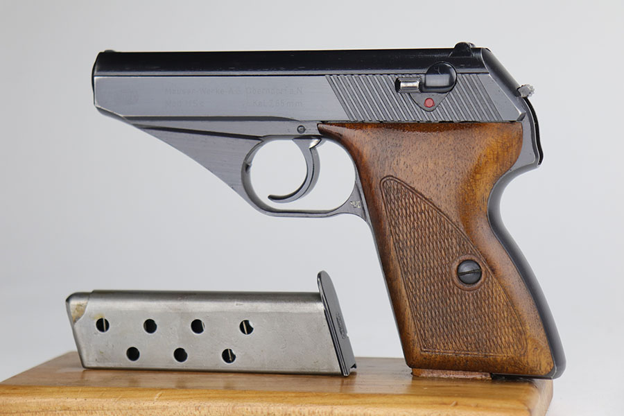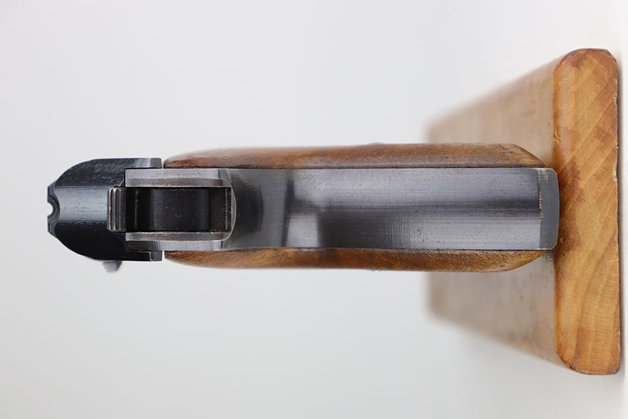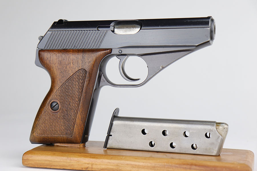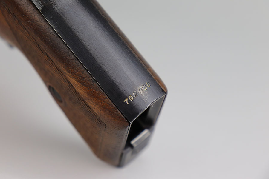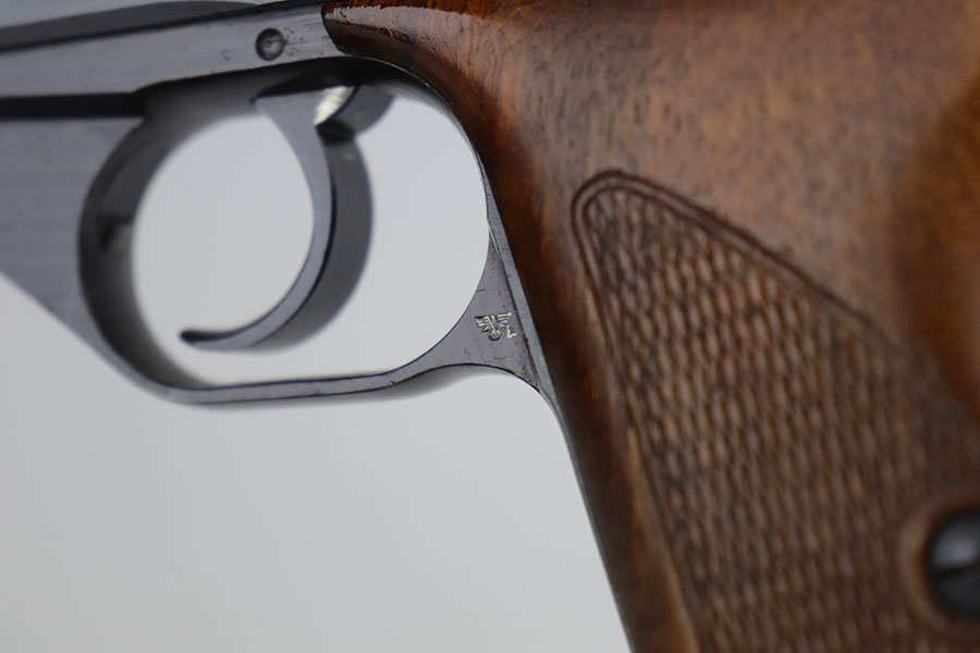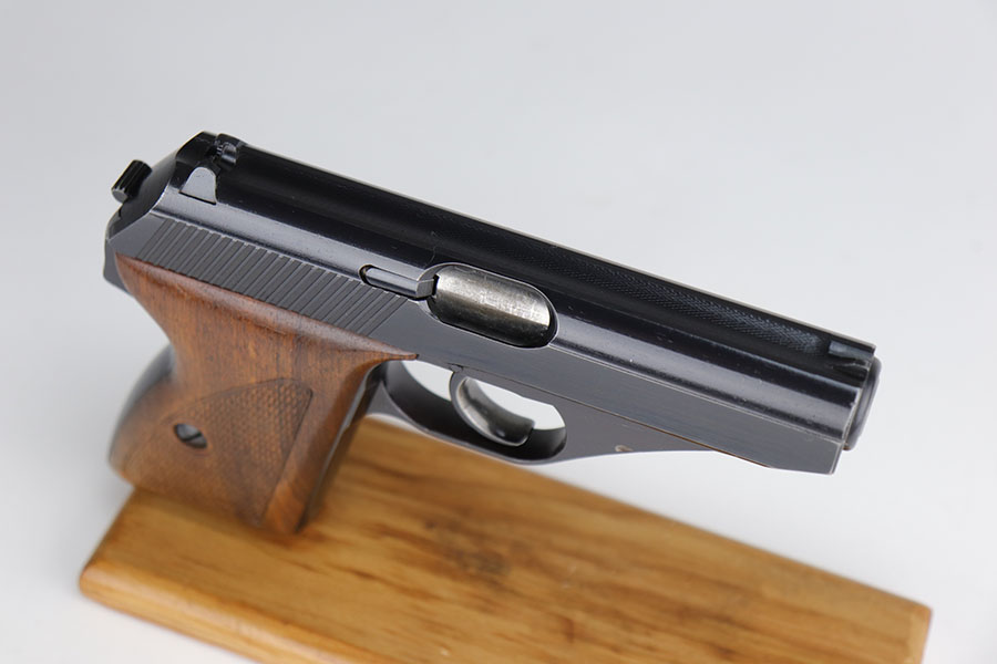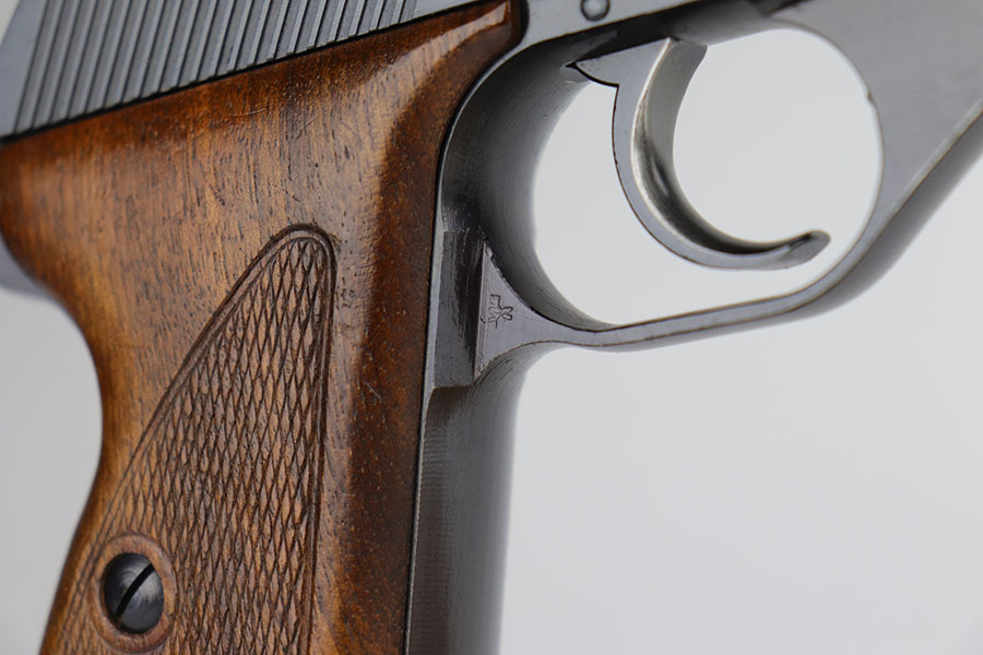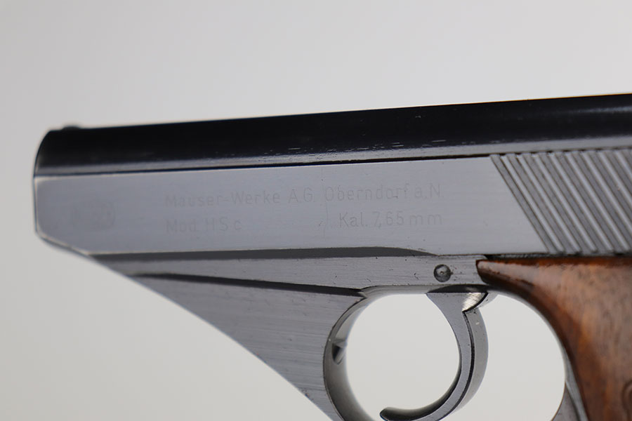 11/3/20 – This is a near-mint Mauser HSc that was issued to the German police in 1942. It has 98% of the original blue with a hint of muzzle wear, and a minuscule spot of wear on the right side of the trigger guard. Minty bore and grips. Police Eagle/L proof on side of trigger guard. Banner magazine.