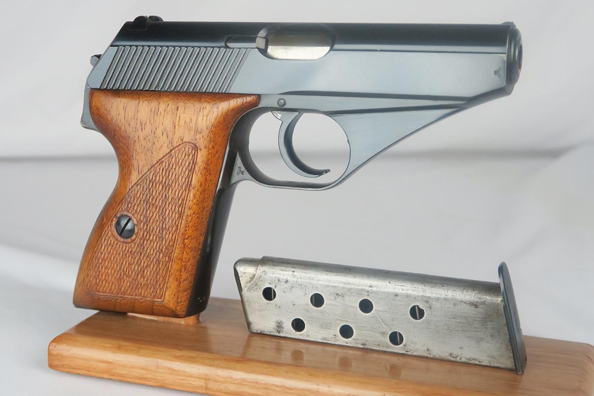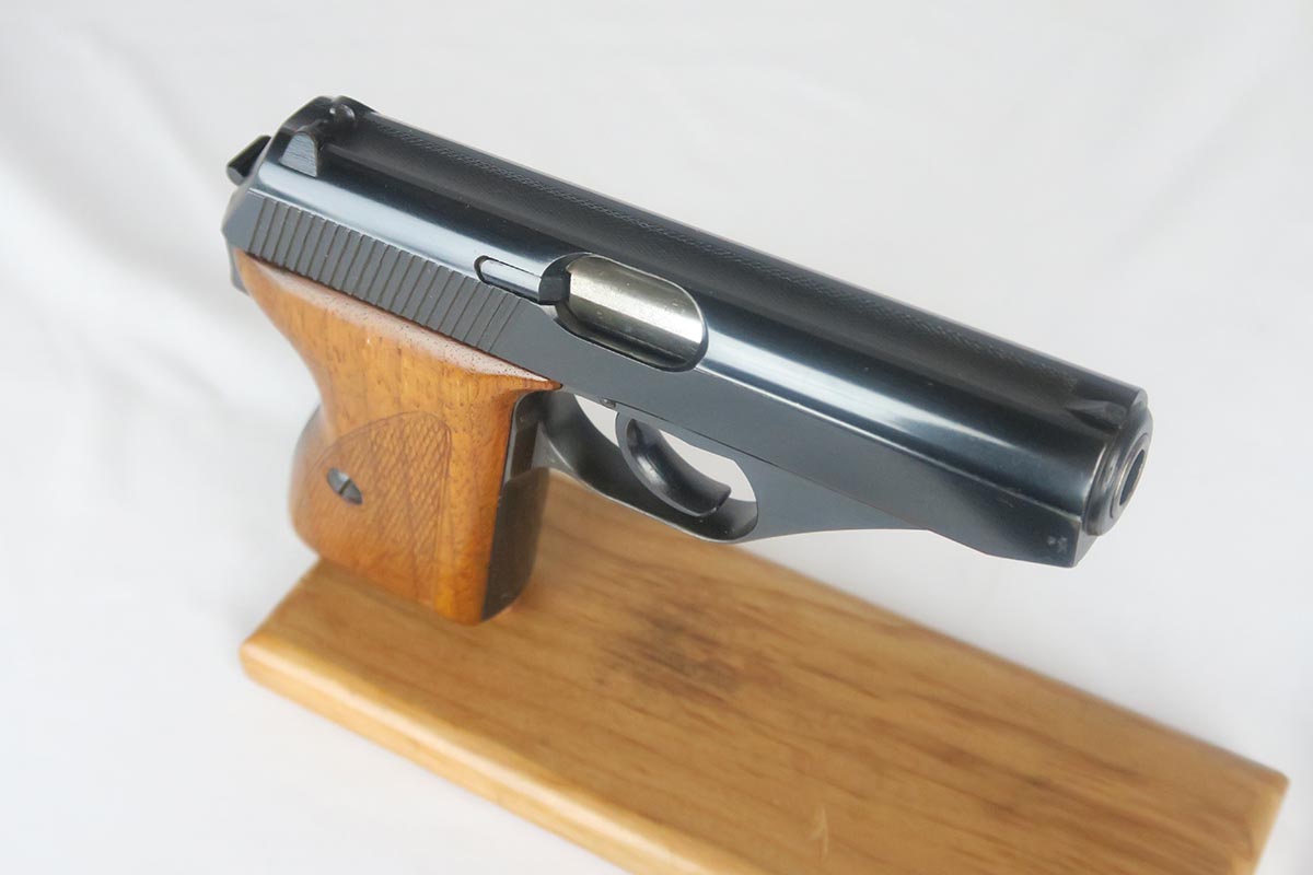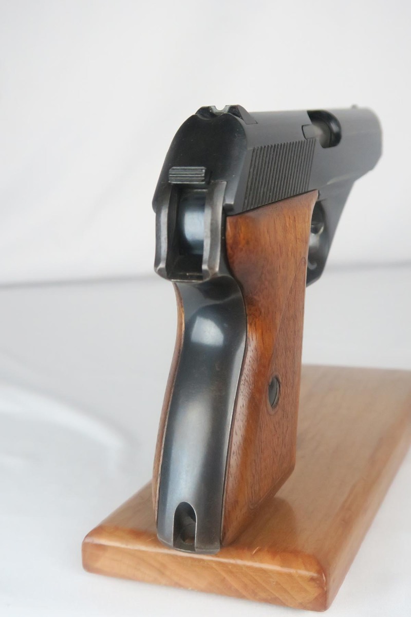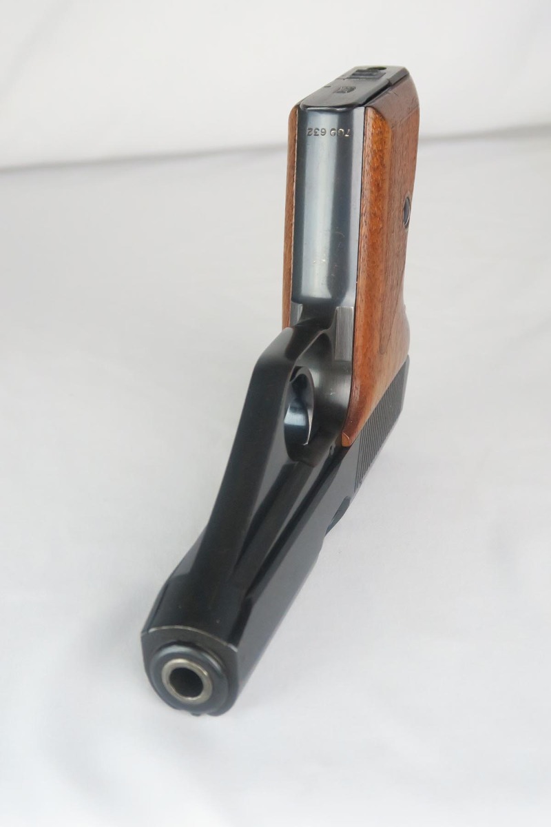 1/24/18 – This is a scarce and minty Police Mauser HSc – variation 1.  There were only ~10,000 of this variation produced, with Eagle/L proof on trigger guard and high-polish finish.  The bluing rates at 98+% with minor thinning on the straps.  The wood grips are minty and so is the Mauser banner magazine.  Excellent bore.