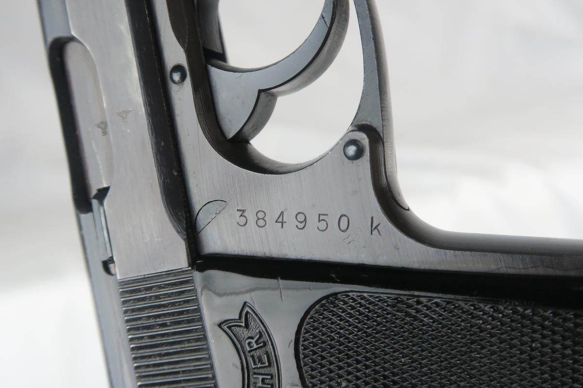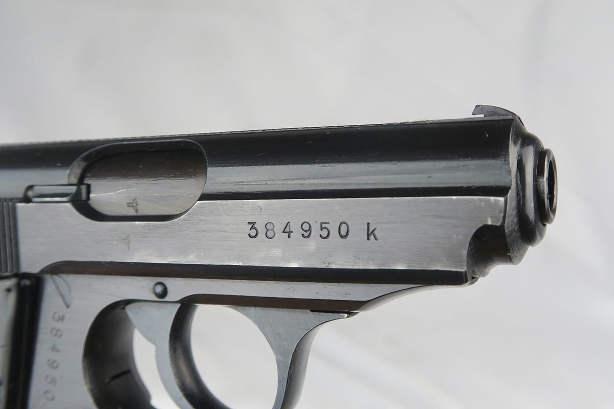 10/13/17 – This is a near-mint Police Walther PPK from 1942 in all original condition. The frame is Eagle/C proofed, and the finish rates at 99% with only minor muzzle wear and a spot of finish loss on the front strap. Excellent black grip gives this pistol a very cool look to it. Wartime magazine and excellent bore.