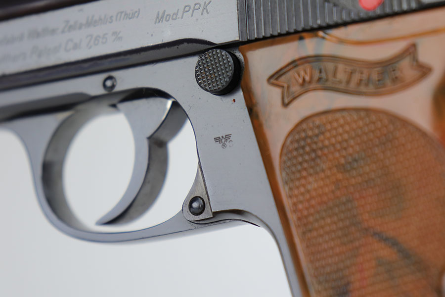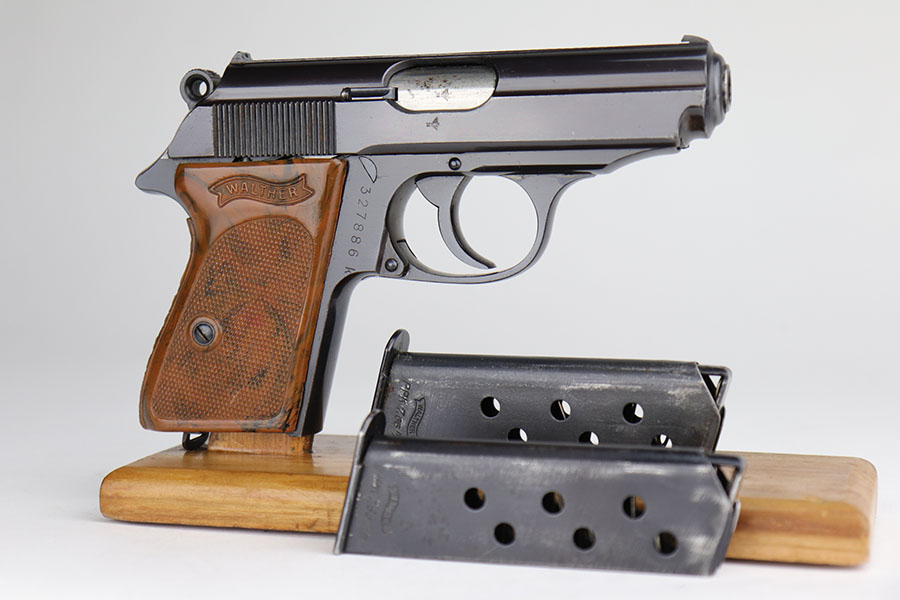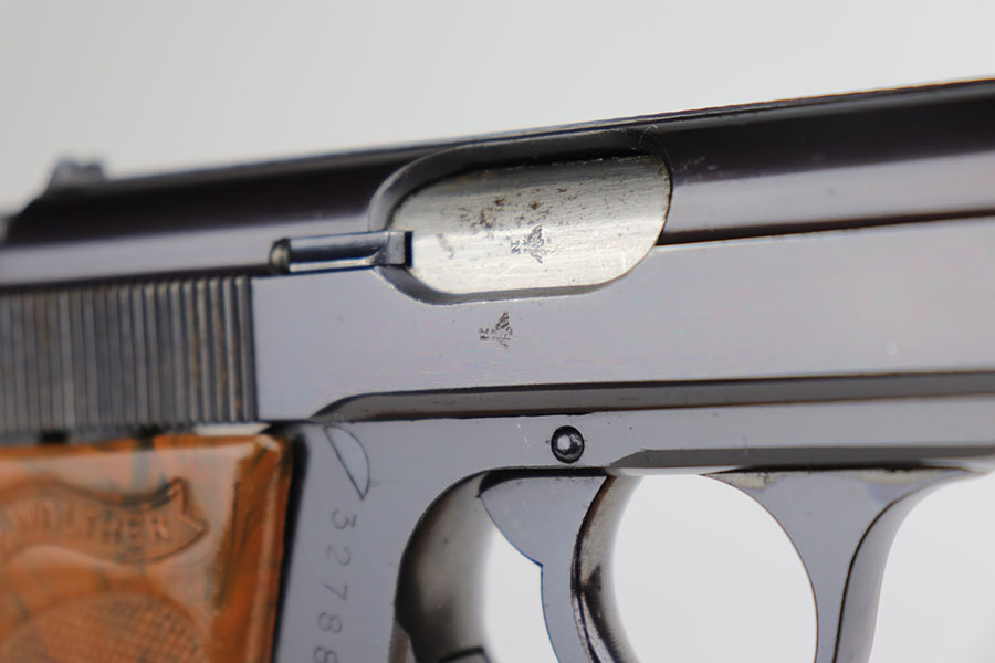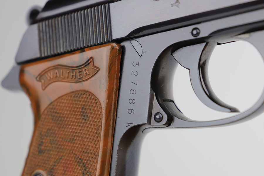 8/9/22 – This is a near-mint Police Walther PPK from 1941. It is high-polish blued with 99% of the original finish remaining. While there’s hardly any bluing loss, there is a little bit of freckling on the left side of the slide. Mint bore and very nice grip aside from the common crack in the spine. NOTE: Two magazines are shown but the listing only comes with ONE.