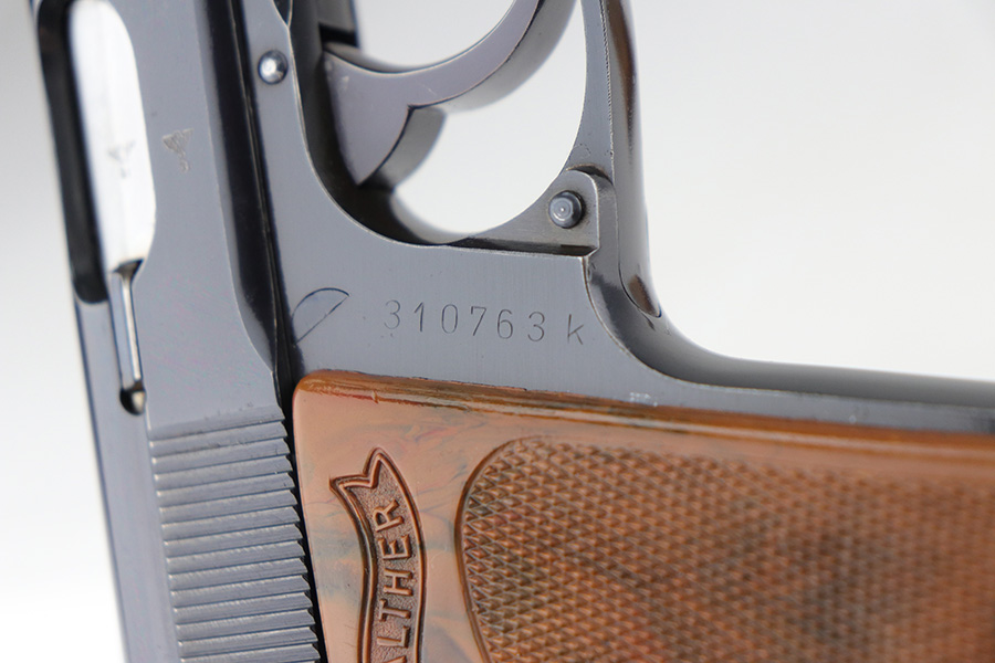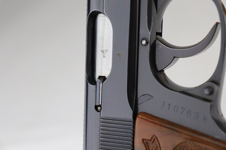 11/2/21 – This is a minty and original Walther PPK that was issued to the German police in 1941. It comes straight out of Tom’s personal collection, and retains 99+% of the original, high-polish bluing. Just a little muzzle wear on left side of the slide, but otherwise mint condition. Mint bore, looks nearly unfired. Excellent grip with no cracks or chips. Original wartime magazine.