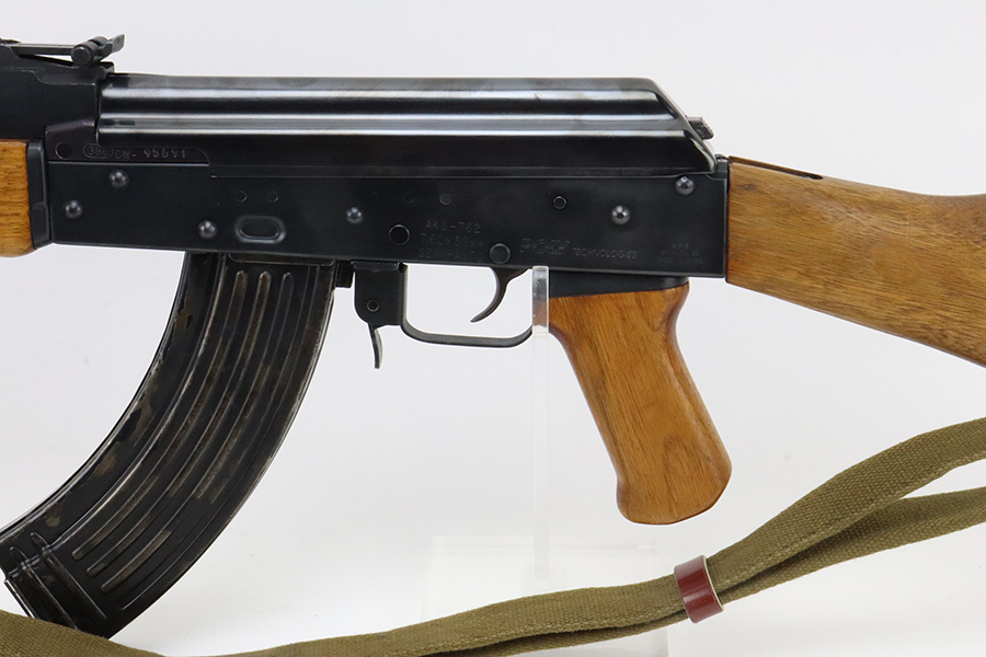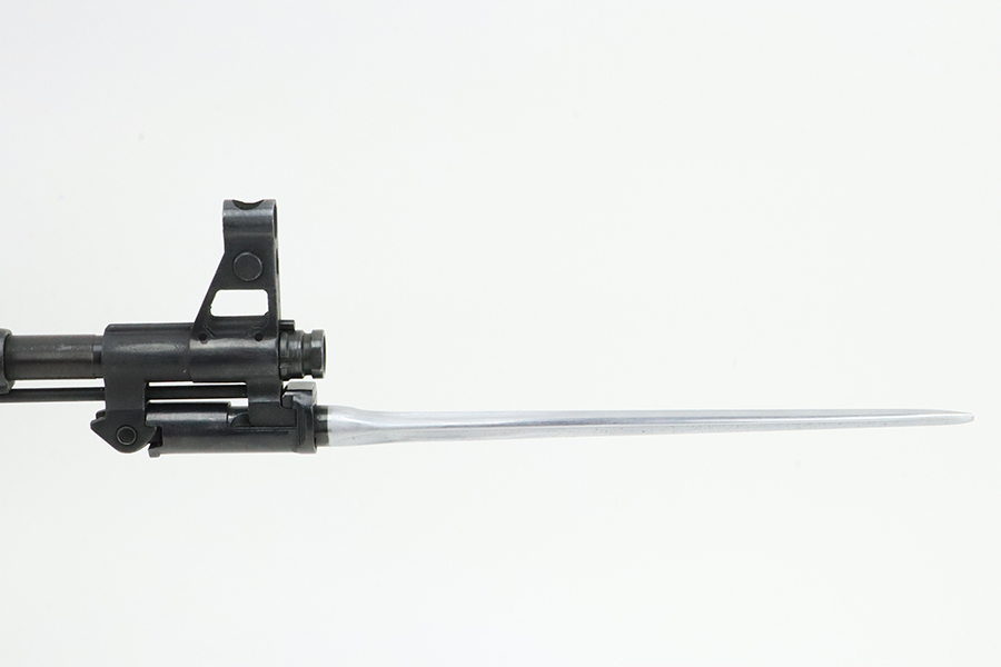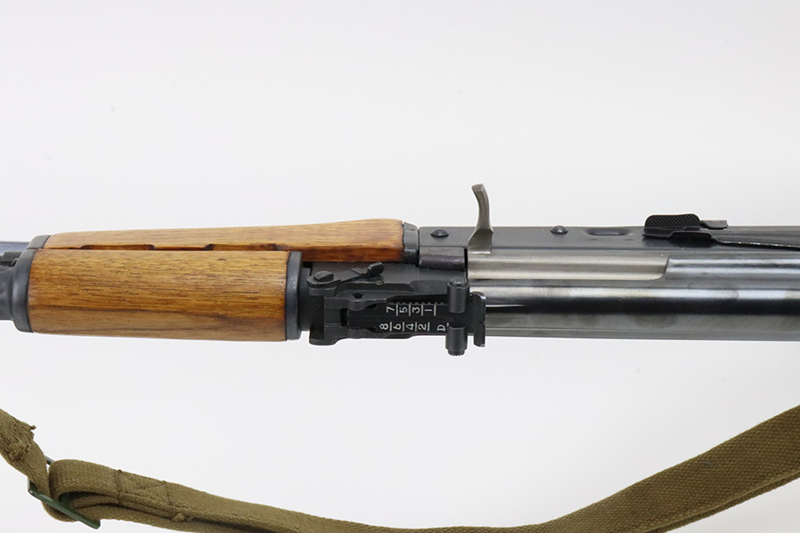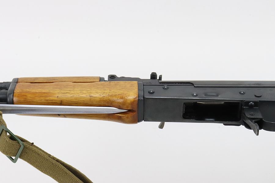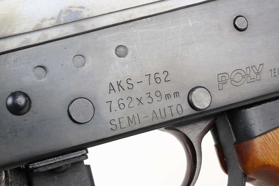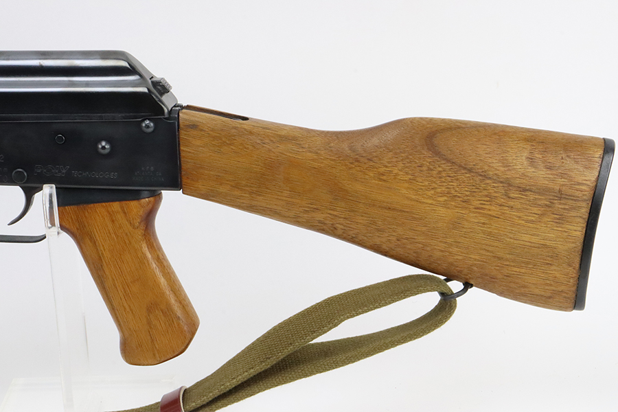 2/7/24 – This is a scarce, minty Polytech Spiker AKS-762 in original condition. It appears to be in nearly unfired condition with a mint bore and hardly any wear to speak of – just some tiny scratches and handling marks here and there. Fixed wooden buttstock and pistol grip, excellent condition with just some tiny handling marks. Comes with canvas sling and underfolding bayonet. Chinese magazine but not a Poly-Tech mag. Import mark on receiver but made in China. Pre-Ban AKS assault rifle.
