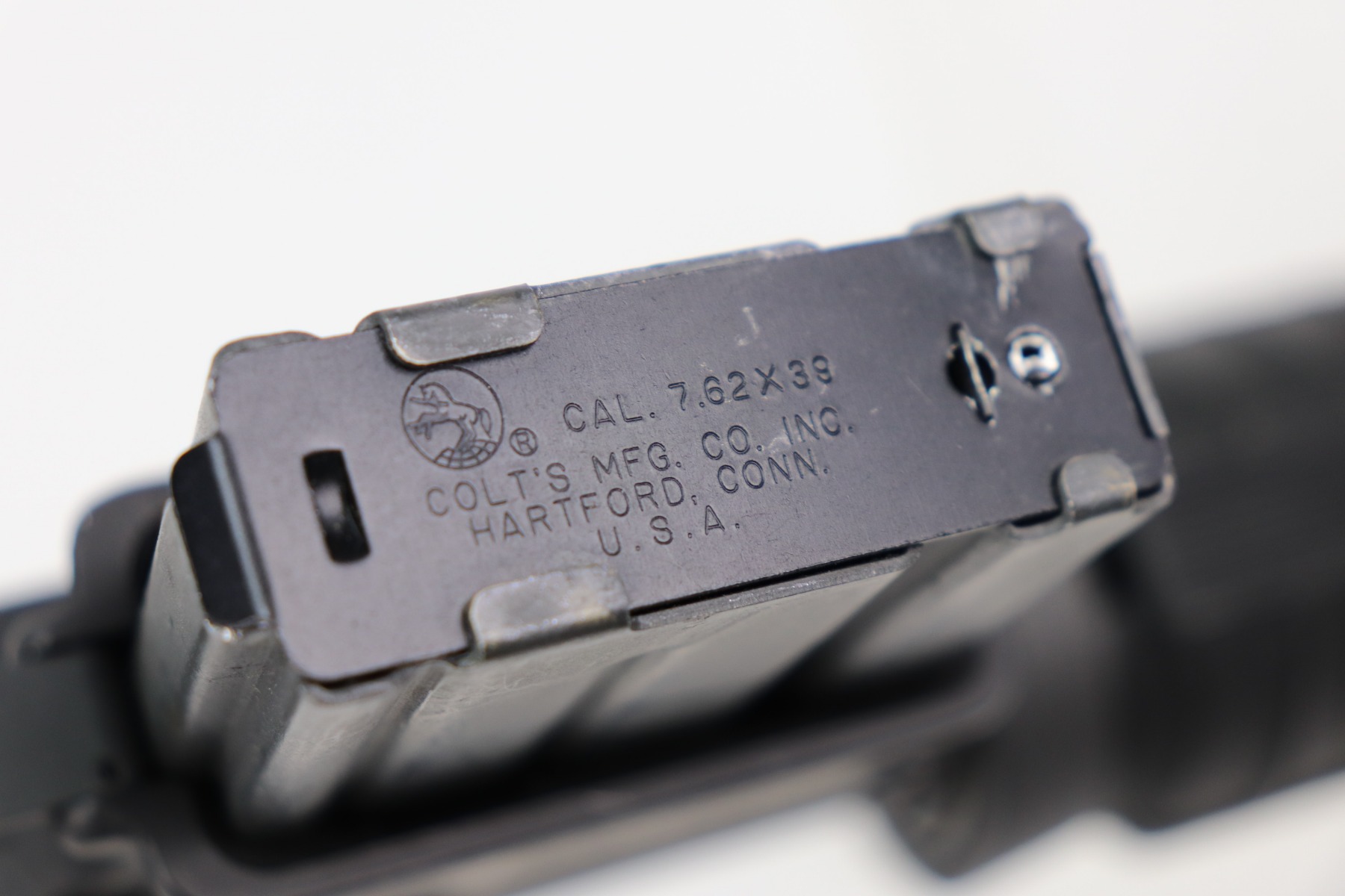 3/10/21 – This is a minty example of a Pre-Ban Colt Sporter Lightweight AR-15, chambered in 7.62x39mm or 7.62 Russian. This particular model and caliber are scarce as only about 11,000 were made. The gun is fully functional and in minty condition with only very minor handling marks here and there. The bore is excellent – shiny with strong rifling and some minor freckling near the muzzle. Comes with one 15-rd Colt magazine.